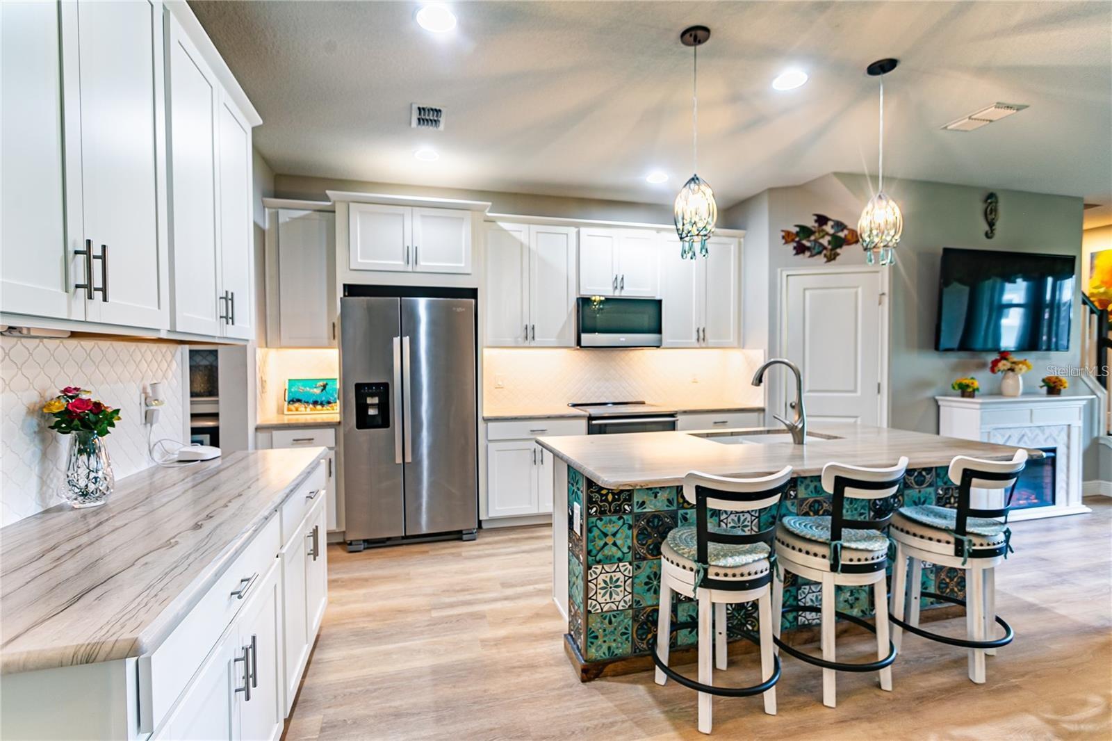 Bem -vindo a esta linda recentemente atualizada quase nova casa de 2018, com todos os tipos de comodidades na comunidade fechada de Bayside. Esta casa tem 3 quartos e 2,5 banheiros com uma área de loft de bom tamanho no andar de cima, que pode ser usada como um escritório ou segunda sala da família. A cozinha do piso plano aberto é impressionante, enorme ilha de cozinha com barra de café da manhã, tetos de 10 ', armários atualizados de 42 "e utensílios de aço inoxidável, incluindo um forno duplo e uma enorme despensa. Suite, novo chuveiro enorme de vidro com pias duplas e 3 armários! A política de inundação atual é paga até 21/10/2024.