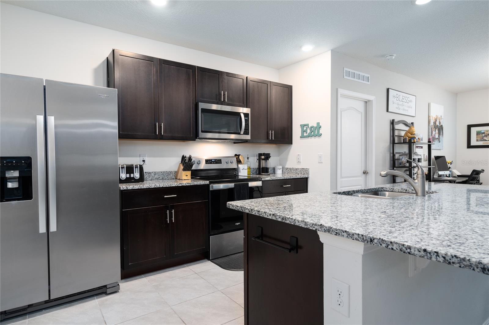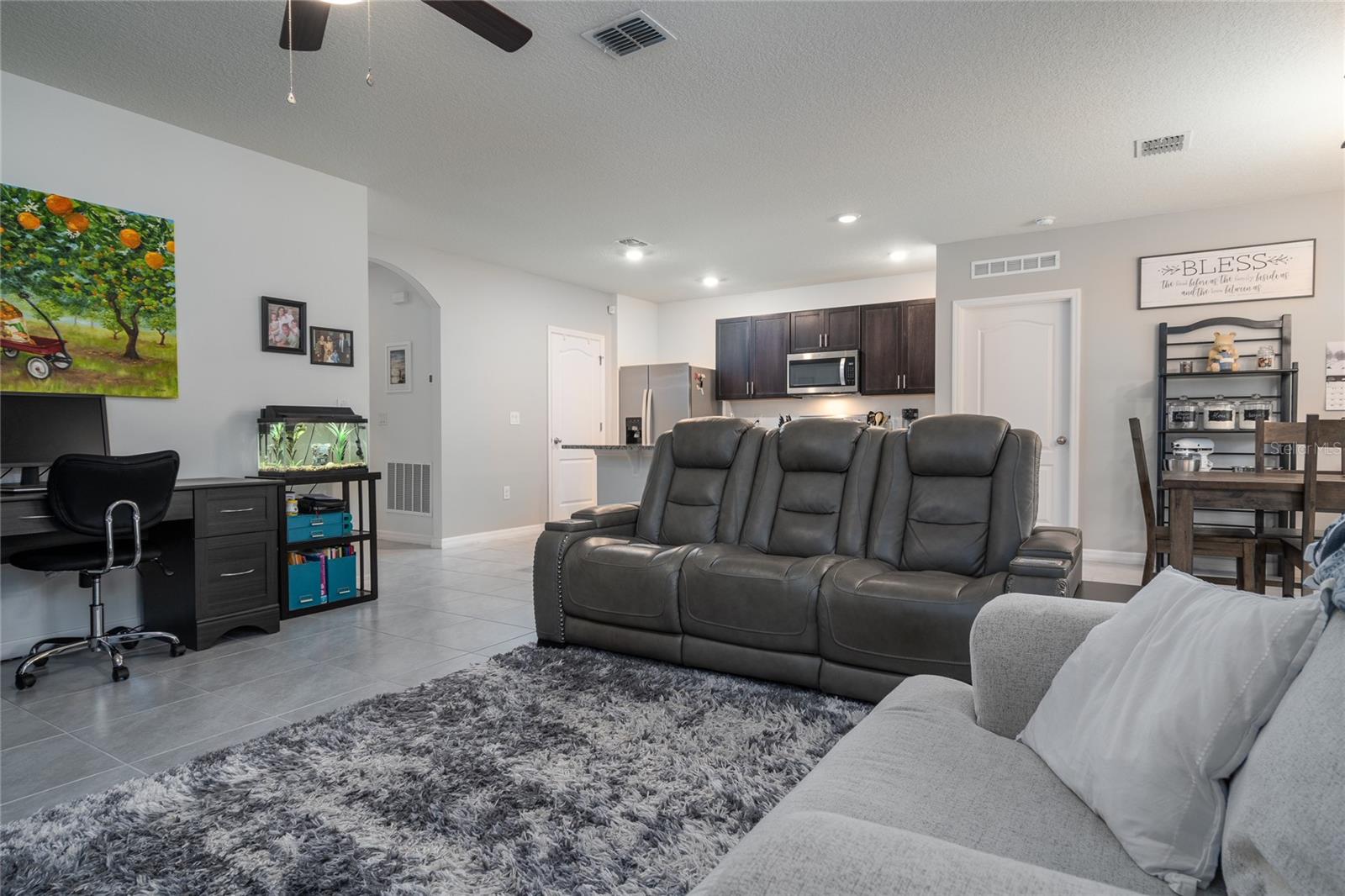 Uma ou mais fotos foram virtualmente encenadas. Este modelo Aria com belo paisagismo, 3 quartos, 2 banheiros, meticulosamente mantido e um grande quintal cercado é o seu refúgio da agitação da vida! A espaçosa cozinha é aberta para as principais áreas de estar e jantar e possui uma linda ilha com tampo de granito, eletrodomésticos de aço inoxidável, iluminação embutida, despensa e muita iluminação natural. A área de estar principal tem vista através da varanda coberta de 12' X 8' para o quintal cercado de vinil com lindas árvores frutíferas e arbustos floridos. A suíte principal de 14 'X 13' possui armários duplos, um dos quais é um closet e um banheiro privativo com pias duplas embutidas na grande penteadeira com tampo de granito, um vaso sanitário e um box amplo. O condomínio Cadence at Parc Hill apresenta um condomínio HOA de preço moderado com piscina e clubhouse, playground, serviços subterrâneos e está localizado muito perto de todos os tipos de lojas e restaurantes, escolas e instalações médicas, e a I-4 fica logo abaixo. rua, então Orlando e as praias ficam a uma curta distância de carro. Todas as medições são aproximadas e devem ser verificadas de forma independente.