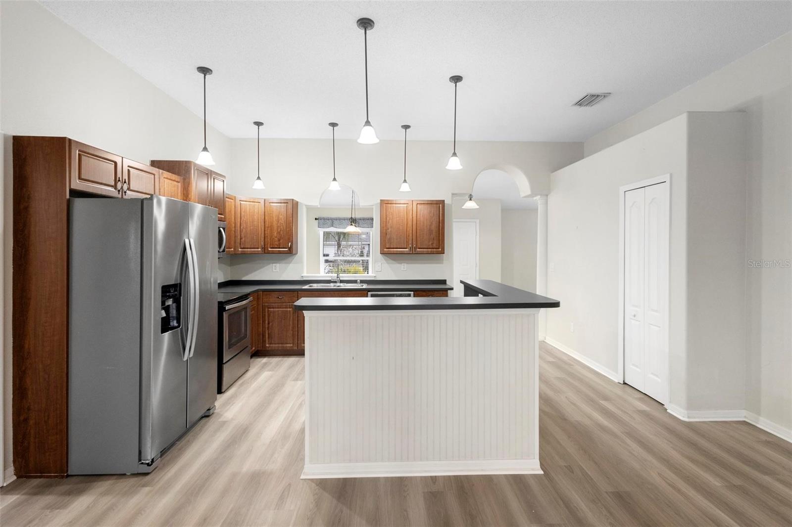 Bem-vindo a esta casa lindamente mantida e pronta para 3 quartos e 2 banheiros, perfeitamente situada em um lote espaçoso. Aninhado em uma rua tranquila e não pavimentada perto do rio St. Johns e, perto da W. Blue Springs Ave, esta propriedade oferece o charme do país que vive com privacidade adicional - mas permanece a poucos minutos de restaurantes, compras, parques estaduais, trilhas de bicicleta e trilhas e I-4 Acesso-tudo sem HOA! Isso cuidadosamente para o lar irradia orgulho de propriedade. Do lado de fora, o paisagismo maduro cria um refúgio de borboleta, enquanto dentro, a planta aberta é convidativa e ideal para entretenimento. O layout de quartos divididos fornece privacidade, com a suíte master com um grande armário, uma banheira de tamanho normal e um chuveiro. Há muito espaço para um escritório em casa, junto com uma conveniente lavanderia interna. Aparelhos com eficiência energética facilitam a vida diária. Novo telhado e calhas adicionados em abril de 2021, esta casa está pronta para receber seus novos proprietários. Não perca a chance de fazer disso a casa dos seus sonhos!