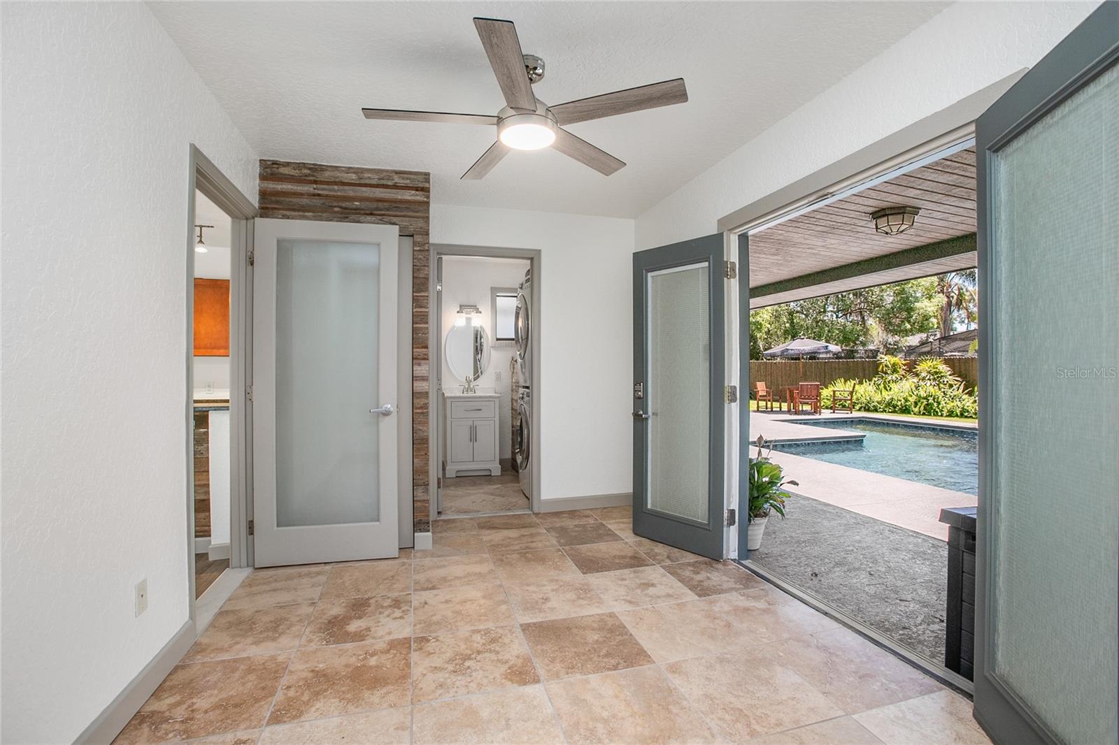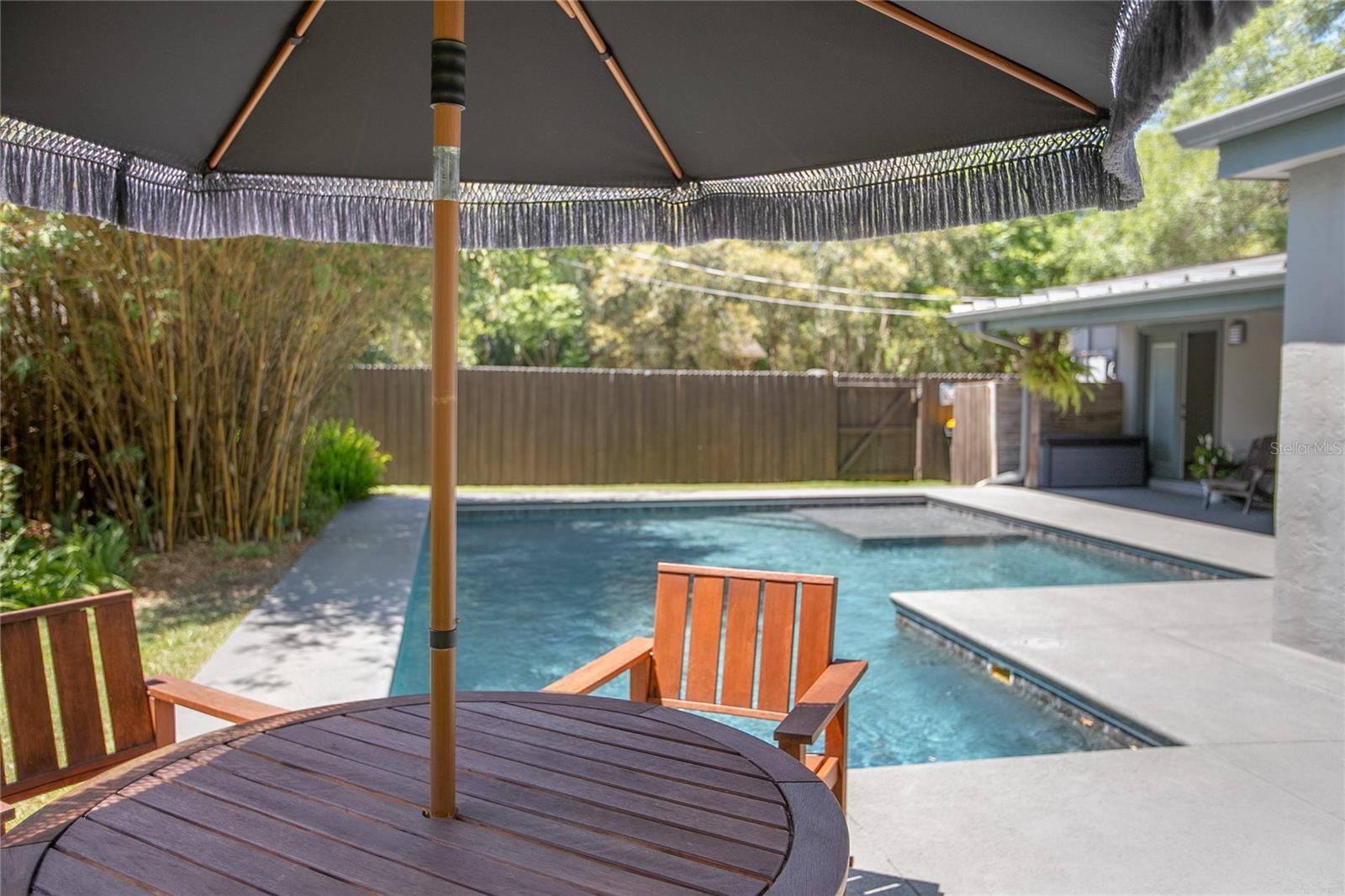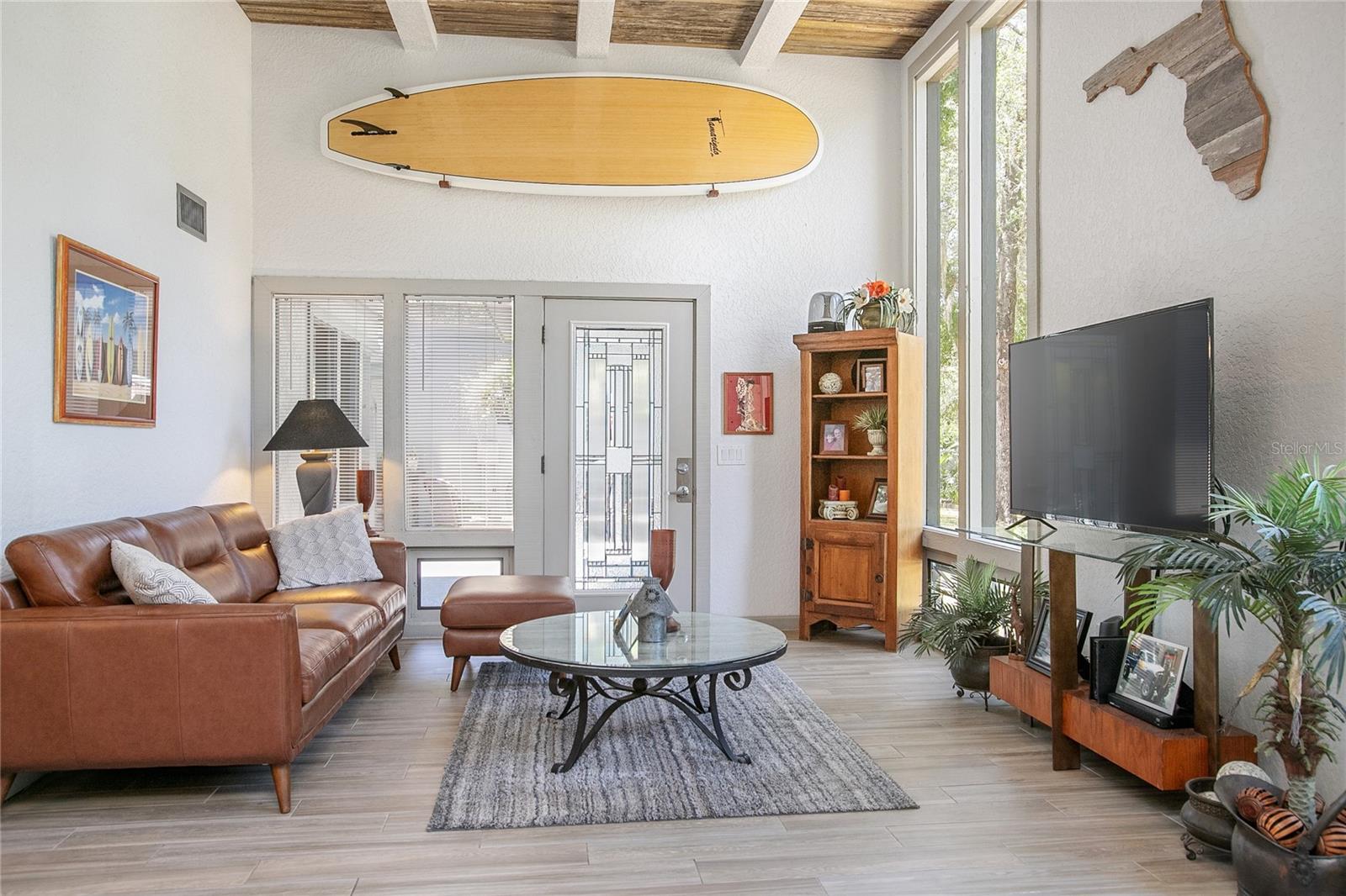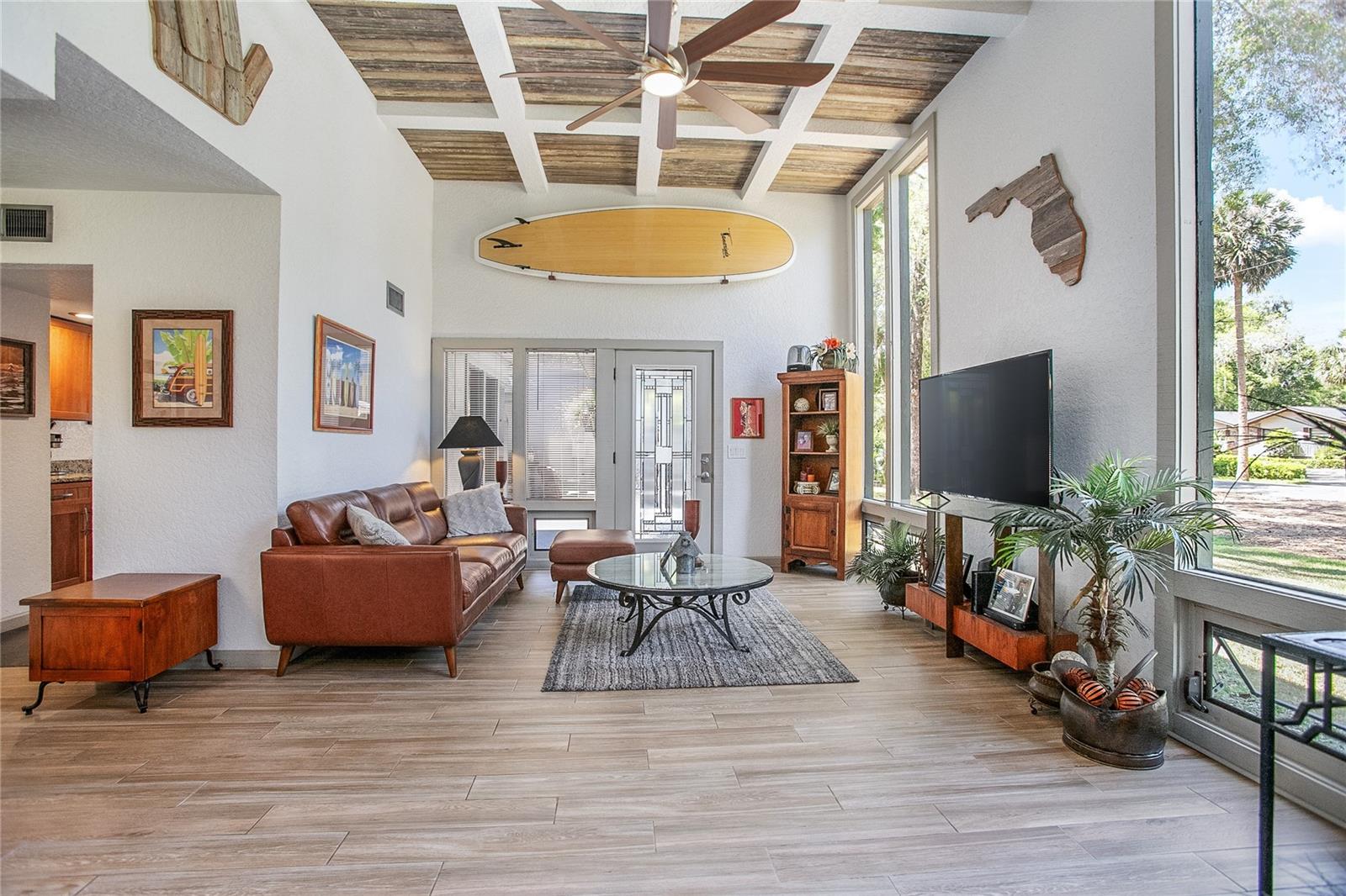 A experiência inspirou a vida nesta casa contemporânea de Frank Lloyd Wright, com uma suíte separada. Ao caminhar pelas portas duplas da frente, você é recebido no coração da propriedade, um impressionante oásis do pátio que cria o cenário ideal para entretenimento durante todo o ano com uma piscina de água salgada e uma estação de grelha. O pátio totalmente cercado fornece privacidade com bambu maduro e inclui dois galpões de armazenamento, uma fogueira e um chuveiro ao ar livre. A casa principal oferece 2 quartos e 2 banheiros, destacados por janelas expansivas, bandeja de sotaque de madeira de cedro e tetos de alojamento e piso de azulejos por toda parte. Uma lareira a lenha acrescenta calor ao espaço de vida, enquanto o quarto principal inclui um banho de suíte com pias de vidro duplo, armários duplos e portas francesas que se abrem diretamente para a área de piscina privada. A cozinha no estilo da cozinha é elegante e funcional, com bancadas em granito, armários de bordo e um convidativo espaço para refeições casuais. Os pisos de azulejos de ardósia adicionam um toque de elegância e durabilidade naturais, complementando os tons de madeira quentes e o layout elegante. A suíte de sogro separada, com entrada privada, possui 1 quarto, 1 banheiro, cozinha completa, sala de estar confortável e uma mistura de ladrilhos e piso de tábua de vinil de luxo-perfeita para a vida multigeracional, uma casa de hóspedes ou uma potencial renda de aluguel. As características adicionais incluem um telhado de 2022 e HVAC de 6 anos na casa principal e um novíssimo telhado de 2025 na suíte do sogro. Experimente a economia de energia o ano todo com painéis solares de última geração. Esta propriedade única combina a arquitetura atemporal com eficiência e versatilidade modernas. Convenientemente localizado a poucos minutos da I-4, o premiado no centro de Deland, a Universidade Stetson, Parques Estaduais, Lojas e Restaurantes. Esta casa também fica a apenas 30 minutos de carro das praias da Costa Leste. Não perca a oportunidade de tornar esta casa incrível a sua - faça o seu show hoje!