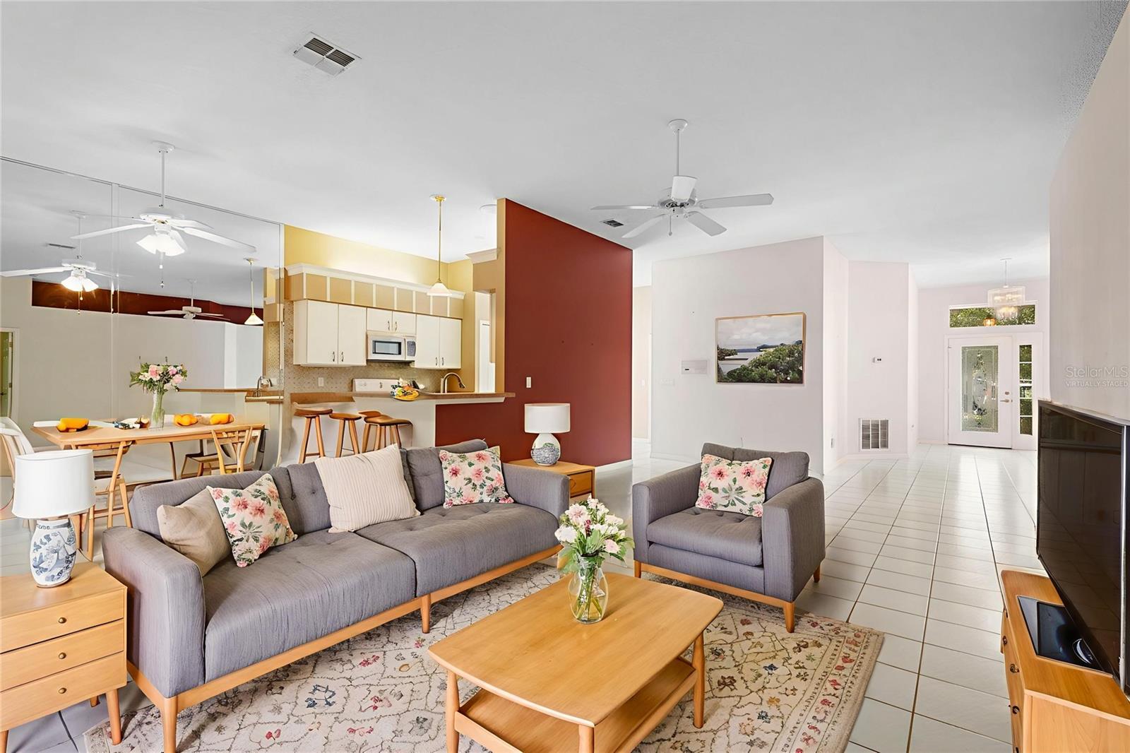 Uma ou mais fotos foram virtualmente encenadas. CIDADE LARANJA: Bem-vindo a esta casa de 3 quartos e 2 casas de banho com mais de 1600 pés quadrados. Ao entrar na casa notará imediatamente os tectos altos, o piso em azulejo de fácil manutenção e toda a luz natural que inunda a casa. A sala é muito espaçosa e tem muito espaço para entretenimento e portas de correr que dão acesso ao alpendre. A cozinha apresenta um backsplash decorativo e tem bastante balcão e espaço de arrumação. Adicione alguns bancos de bar para assentos extras! Fora da cozinha fica a área de jantar - o local perfeito para desfrutar de refeições em família. A suíte Primária possui ventilador de teto, portas de correr para a varanda dos fundos e banheiro privativo com closet e banheira de jardim e box amplo. Os quartos adicionais são espaçosos e há um banheiro completo. Despensa interna com prateleiras e armários extras - facilita a lavagem da roupa! A grande varanda será o seu local favorito para desfrutar do seu café da manhã ou relaxar após um longo dia de trabalho. O quintal tem vistas privadas e você pode desfrutar da natureza o ano todo! Taxa HOA baixa! Perto de lojas, restaurantes e fácil deslocamento para a I-4. Não espere! Marque hoje mesmo a sua visita para ver tudo o que esta casa tem para lhe oferecer!
