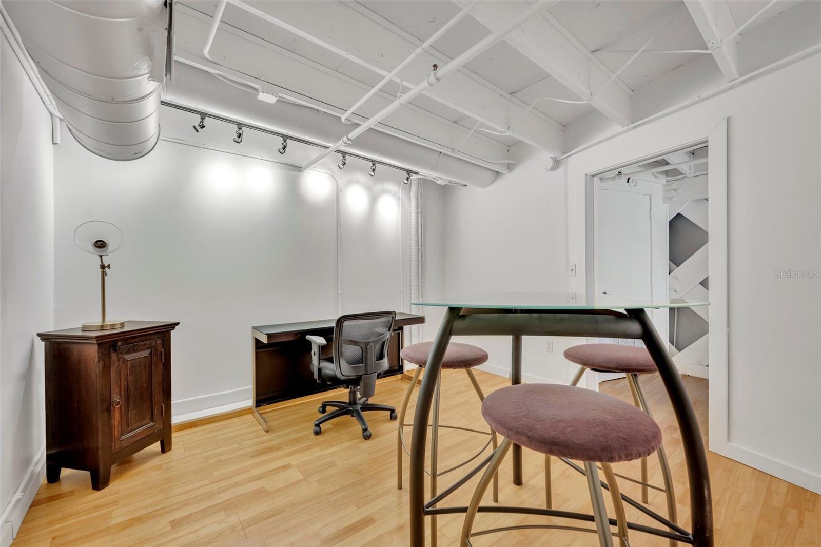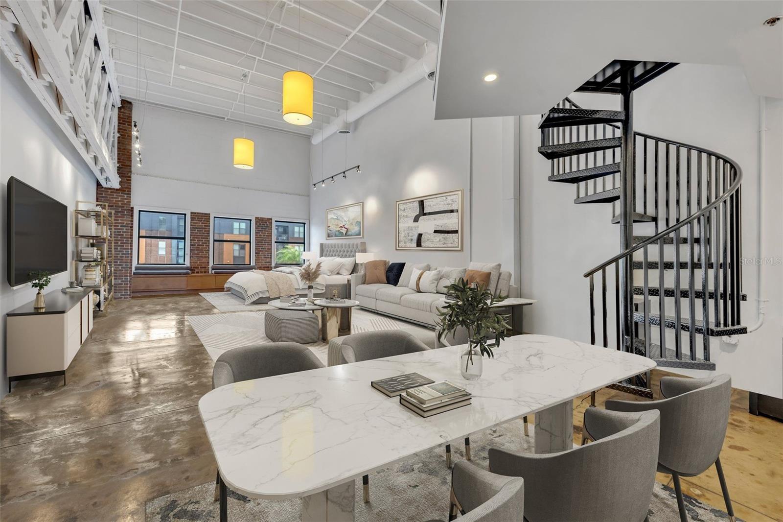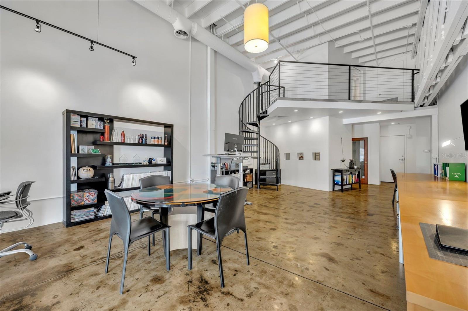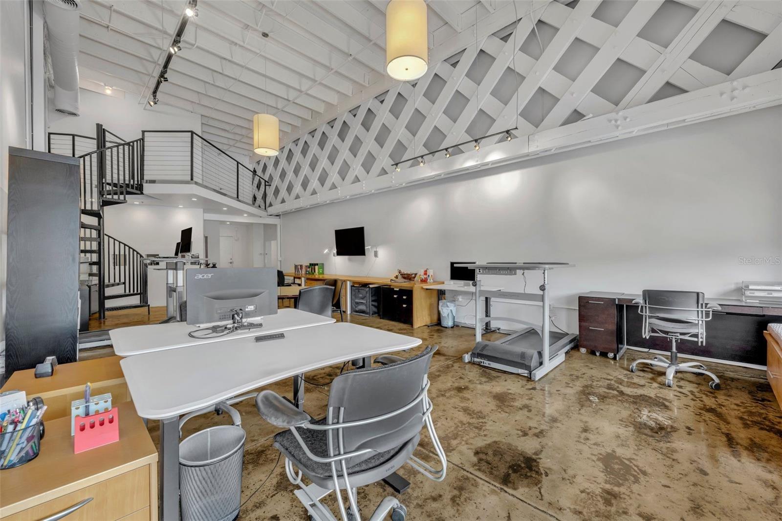 Experimente o auge do cosmopolita Prepare-se para se impressionar com este impressionante loft industrial inspirado em Nova York, com localização central no coração do centro de Orlando. Posicionada dentro dos históricos China Glass Warehouse Lofts, esta unidade excepcional oferece versatilidade incomparável para uso comercial e residencial. Originalmente construído em 1930 e cuidadosamente convertido em lofts modernos no início dos anos 2000, este espaço combina charme histórico com elegância contemporânea. O amplo layout de conceito aberto cativa imediatamente com seus pisos de concreto polido, tetos altos e características arquitetônicas originais, incluindo paredes de tijolos expostos, treliças de madeira, vigas de aço e dutos. A sala principal é banhada pela luz natural proveniente de três grandes janelas, criando um ambiente luminoso e convidativo, perfeito para trabalhar e relaxar. A arejada área do loft no segundo andar e o escritório/escritório privativo, acessíveis por meio de uma elegante escada de metal, oferecem espaço adicional flexível para seus negócios ou empreendimentos criativos. A cozinha foi projetada com uma estética clean e moderna, com bancadas de aço inoxidável, prateleiras abertas e amplo armazenamento. O banheiro completo acrescenta um toque lúdico com azulejos vermelhos retrô, proporcionando um toque de cor a este retiro cosmopolita. Os residentes se beneficiam de recursos de segurança aprimorados, incluindo uma garagem segura com uma vaga de estacionamento atribuída, espaço de armazenamento, câmeras de segurança e entradas codificadas. Além disso, o edifício oferece dois passes de estacionamento para hóspedes para maior comodidade. Descubra este loft único que combina estilo e funcionalidade, oferecendo o ambiente perfeito para o seu negócio e necessidades pessoais. Agende hoje mesmo a sua visita para explorar as possibilidades deste excepcional espaço urbano!