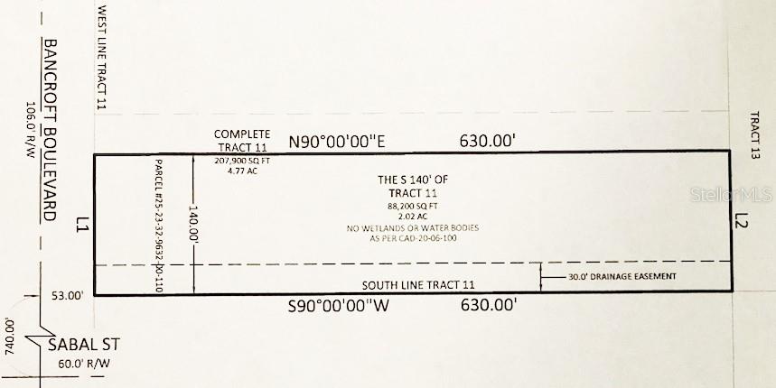 Vende-se terreno localizado entre Reynolds e Sabal. O lote mede 140' x 630'. Este terreno está classificado e oficialmente registado como terra seca. Depois de limpo, ele estará pronto para uso.