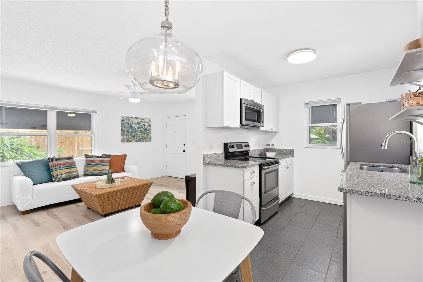 Descubra uma OPORTUNIDADE DE INVESTIMENTO DE RENDA verdadeiramente ELEVADA no muito procurado Lake Eola Heights, oferecendo uma vida melhorada para inquilinos exigentes! Esta propriedade duplex meticulosamente renovada combina apresentação premium com alto potencial de rendimento, tornando-a um achado raro. Ambas as unidades de tamanho generoso, construídas com construção em bloco, apresentam pintura interna e externa fresca, garagem e garagem recapeadas, garagem para dois carros com carregador EV, jardins e pátios paisagísticos, bem como inúmeras atualizações por toda parte. Lindo novo piso de vinil de luxo, janelas de vidro duplo, iluminação moderna e ventiladores de teto, portas e ferragens atualizadas, conexão de fibra óptica, sistemas de alarme circular com câmeras e telhado, encanamento, eletricidade, sistemas HVAC, aquecedores de água recentemente atualizados e muito mais. A Unidade 530 oferece um retiro isolado com 2 quartos e 1,5 banheiros com 1.112 pés quadrados. Sua planta aberta cria uma área de estar ampla e luminosa, acentuada por uma claraboia deslumbrante que banha o espaço com luz natural. O luxuoso piso de vinil flui perfeitamente, complementado por paredes recém-pintadas que melhoram a sensação arejada da casa. A cozinha é um sonho, com armários shaker brancos com despensa embutida, bancadas de quartzo, prateleiras abertas personalizadas, torneira estilo profissional em preto fosco e eletrodomésticos de aço inoxidável de última geração, incluindo micro-ondas discreto e porta francesa geladeira com água e dispensador de cubos de gelo especiais. A suíte do proprietário é de tamanho generoso, completa com closet e lavabo privativo com pia nova, torneira elegante, iluminação LED e espelho. O quarto adicional é igualmente espaçoso, e o banheiro principal do banheiro principal encanta com um estilo inspirado em art déco, com piso de ladrilho hexagonal, além de nova penteadeira de 36,5 ”, nova torneira elegante, iluminação LED e espelho. Saia através de portas deslizantes de painel duplo para um quintal privado fechado com pátio e deck, perfeito para uma vida interna/externa perfeita. A unidade também inclui lavanderia com lavadora e secadora e fácil acesso ao quintal lateral. A unidade 528, igualmente imaculada e espaçosa, possui 2 quartos e 1 banheiro com 950 pés quadrados. O layout de conceito aberto oferece amplo espaço de estar e jantar, enquanto a cozinha renovada brilha com armários shaker brancos, bancadas de quartzo, prateleiras abertas, pia funda de aço inoxidável com pulverizador pull-down e eletrodomésticos de aço inoxidável de qualidade, todos complementados por porcelanato 12x24 piso. O quarto principal inclui um grande closet e o banheiro lindamente atualizado possui uma penteadeira de 48 polegadas, acessórios elegantes, iluminação LED e um chuveiro duplo com pulverizador portátil. Esta unidade também possui lavanderia própria com lavadora, secadora e prateleiras abertas. Completando o charme da Unidade 528 está um pátio frontal privativo e jardim, perfeito para relaxar e desfrutar ao ar livre. Com a sua combinação perfeita de luxo moderno e apelo intemporal, esta propriedade versátil oferece espaços excepcionais e infinitas possibilidades, quer pretenda maximizar o rendimento do arrendamento ou proporcionar um estilo de vida elevado aos inquilinos. Situada no cobiçado Lake Eola Heights, a poucos passos dos festivais, restaurantes e entretenimento do centro de Orlando, esta propriedade é uma joia rara em um bairro histórico próspero.