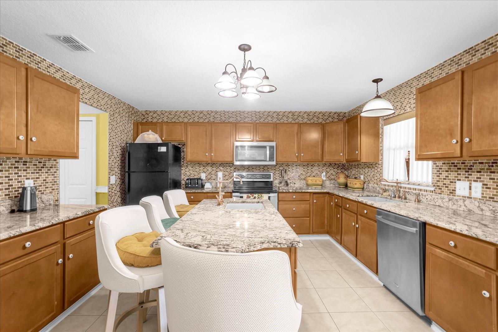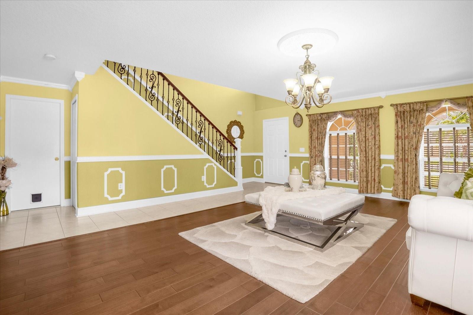 Casa de dois andares bem conservada, área útil de 3.009 pés quadrados, garagem espaçosa com tanque de água quente new energy star, cozinha grande com bancadas de granito, sala de família e área de jantar separada, despensa, área de lavadora e secadora. Exibido no pátio dos fundos medindo 30 pés por 10 pés com piso frio. A sala familiar e a área de jantar têm tetos moldados em coroa e decorações em sancas nas paredes. A escada que leva ao segundo andar também tem decoração em sancas. A escada possui grades ornamentais de ferro que se estendem até a área do sótão. piso de madeira dura nas escadas e em toda a casa. Enorme quarto principal com dois grandes closets e chuveiro recém-convertido. Quarto de hóspedes com banheiro privativo. Telhado novo, substituído em 2019. Painéis solares no telhado que serão quitados após. O lado externo possui garagem para quatro carros. A casa é ideal para família grande. A área é ótima, tem todas as comodidades a 20 minutos de carro do Aeroporto de Orlando, 20 minutos de carro do Florida Mall, 10 minutos de carro do Esporta Gym, área fantástica para morar. Novo AC Unite com 10 anos de garantia