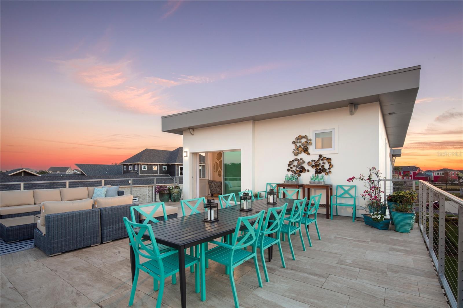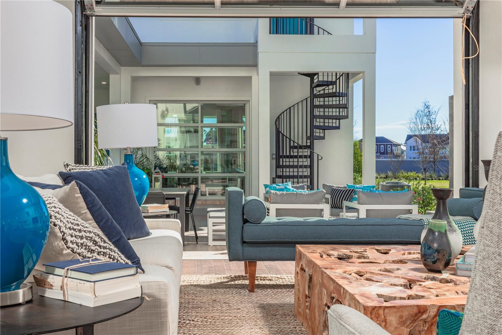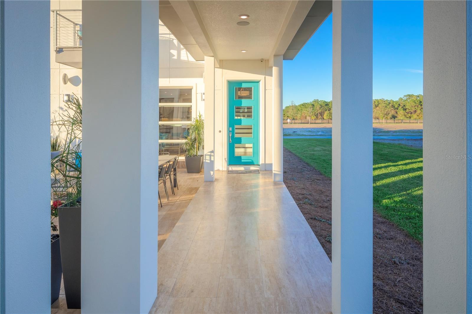 Varanda, calhas de chuva, calçada, sprinkler medido