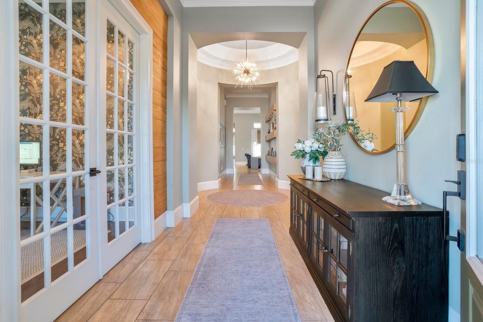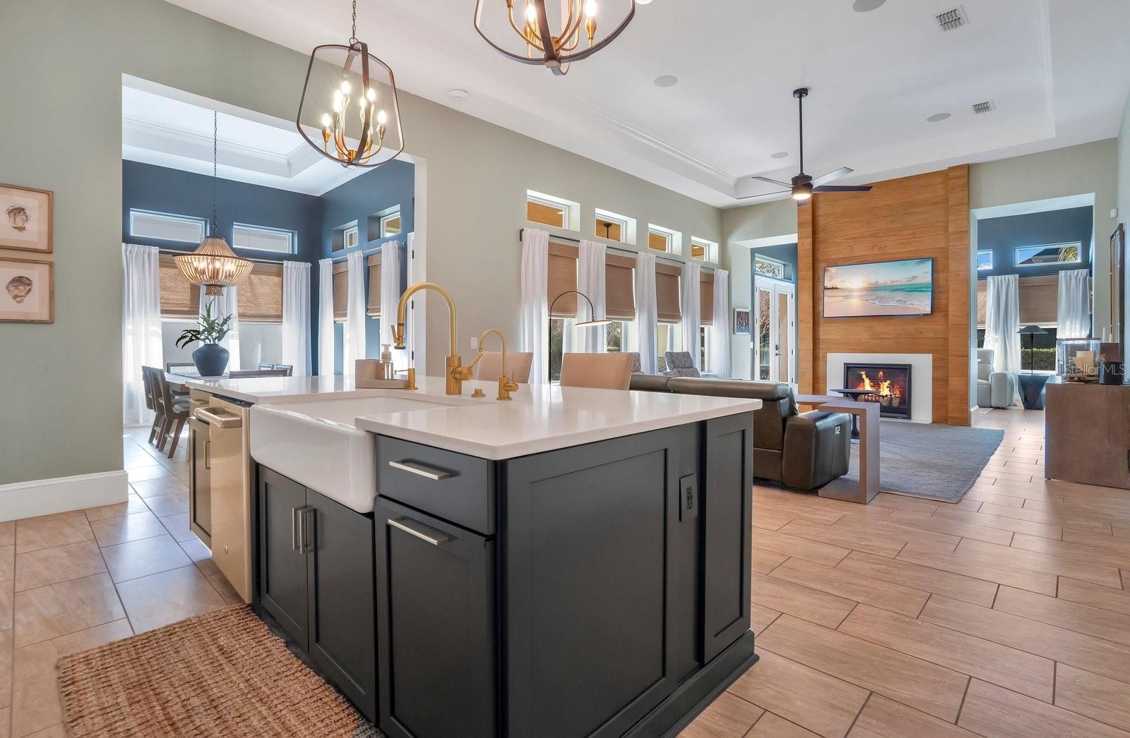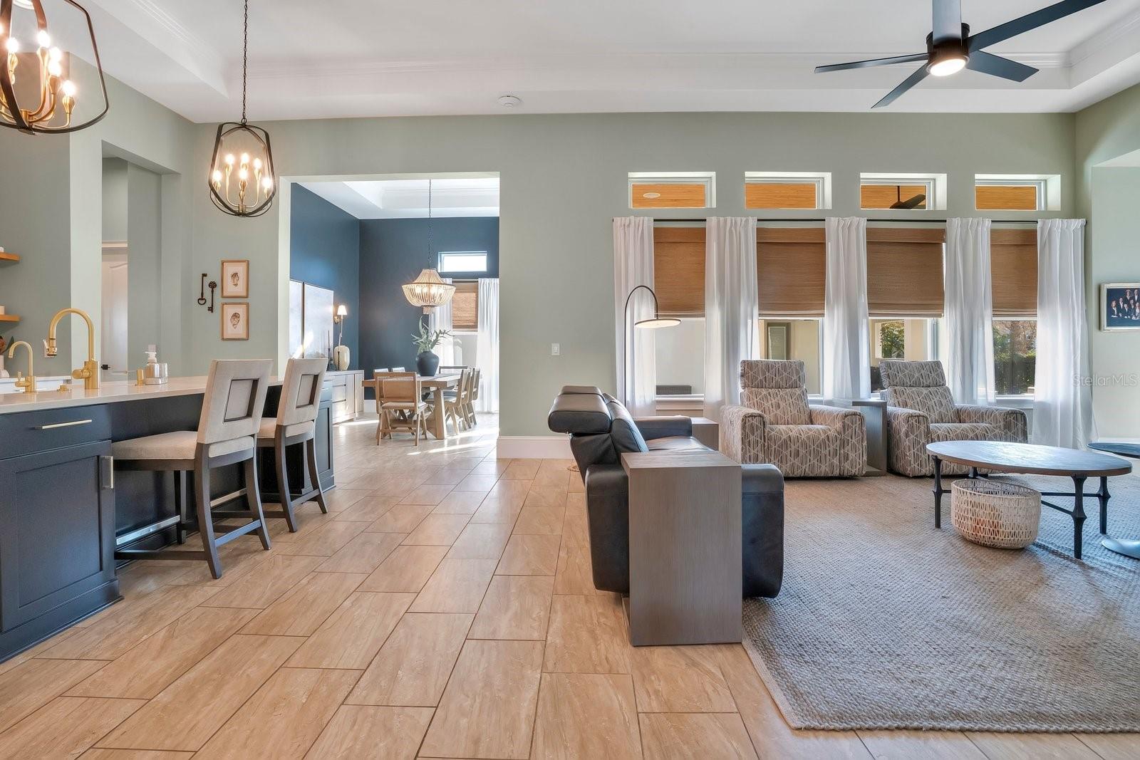 Aninhada em uma paisagem de vegetação bem cuidada, esta propriedade de 4.275 pés quadrados oferece uma sensação imediata de chegada. A ampla varanda frontal serve como uma introdução serena ao interior da casa, onde tetos de 14 pés criam uma impressionante sensação de volume e luz. Este ambiente arejado flui através de cinco quartos espaçosos e quatro banheiros e meio, incluindo um home office dedicado, diferenciado por papel de parede texturizado e conectividade integrada de casa inteligente. A suíte master funciona como um santuário privado, com detalhes no teto e uma área de estar repleta de luz. Seu banheiro privativo é um estudo de luxo moderno, centrado em um chuveiro spa de azulejos com vários chuveiros e um guarda-roupa personalizado equipado com armazenamento do chão ao teto e uma escada rolante para biblioteca. O núcleo social da casa é uma cozinha de chef que prioriza a utilidade e a estética, com bancada de quartzo, fogão a gás e gaveta de aquecimento. Este espaço transita perfeitamente para as salas de jantar e familiares, que são elegantemente divididas por uma lareira a gás de dupla face. Para o anfitrião, um bar embutido e portas francesas que levam à varanda coberta proporcionam um ambiente refinado para entretenimento. Além da residência principal, um elegante apartamento de dois quartos oferece uma solução versátil para hóspedes ou renda de aluguel, complementado por garagem para três carros e estacionamento adicional para frota completa. A segurança e a conveniência moderna estão integradas na infraestrutura da casa, desde o closet de segurança até as portas de dados cabeadas em todos os cômodos. A experiência ao ar livre é definida por um amplo pátio pavimentado e um pátio totalmente cercado que oferece amplo espaço para uma piscina. Localizada no coração do Lago Nona, a poucos passos das principais escolas e restaurantes da região, esta propriedade é um casamento raro entre sofisticação tecnológica e conforto atemporal.