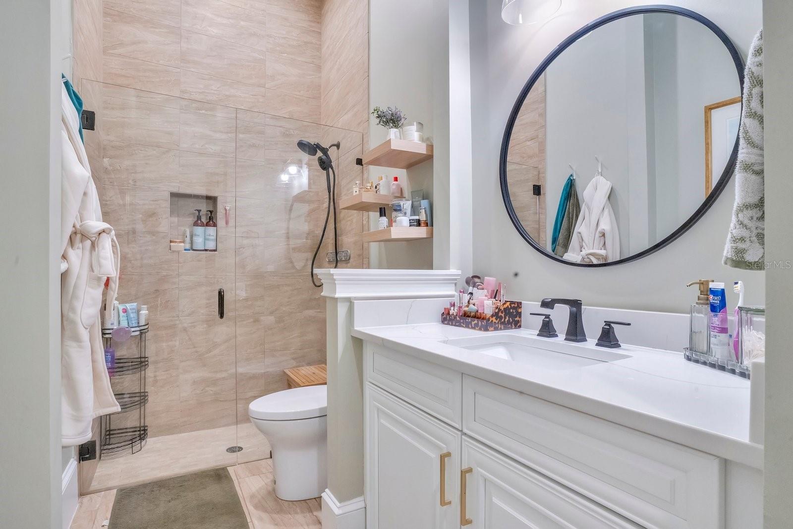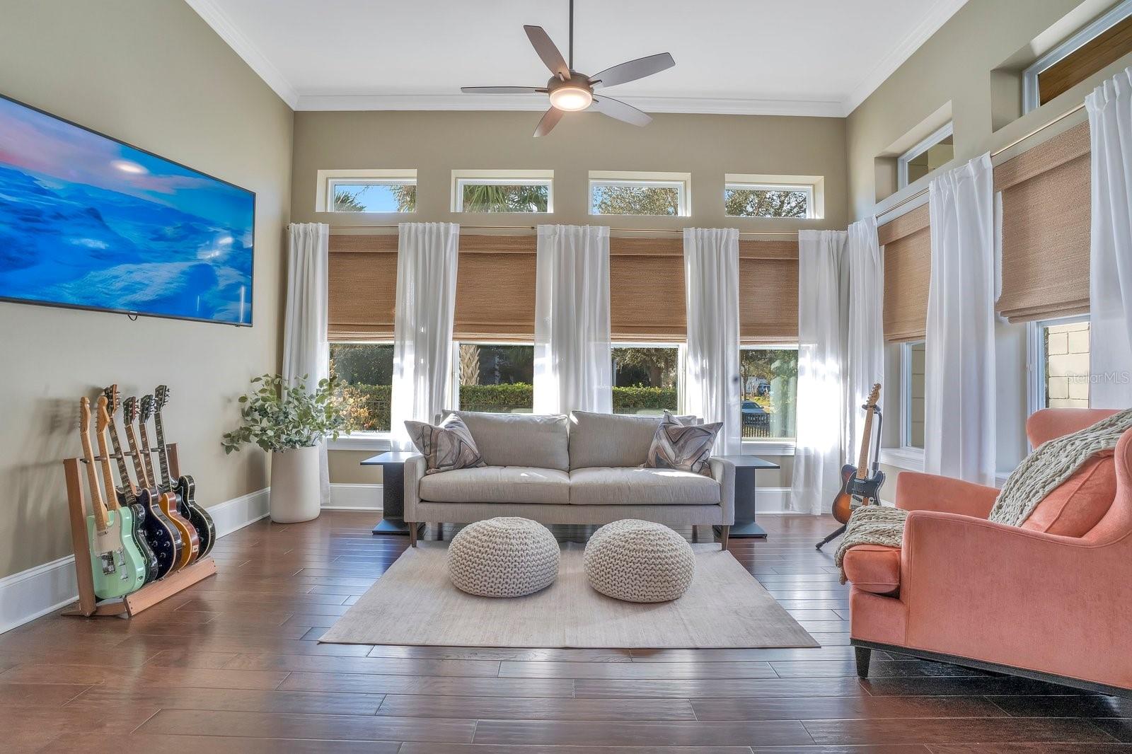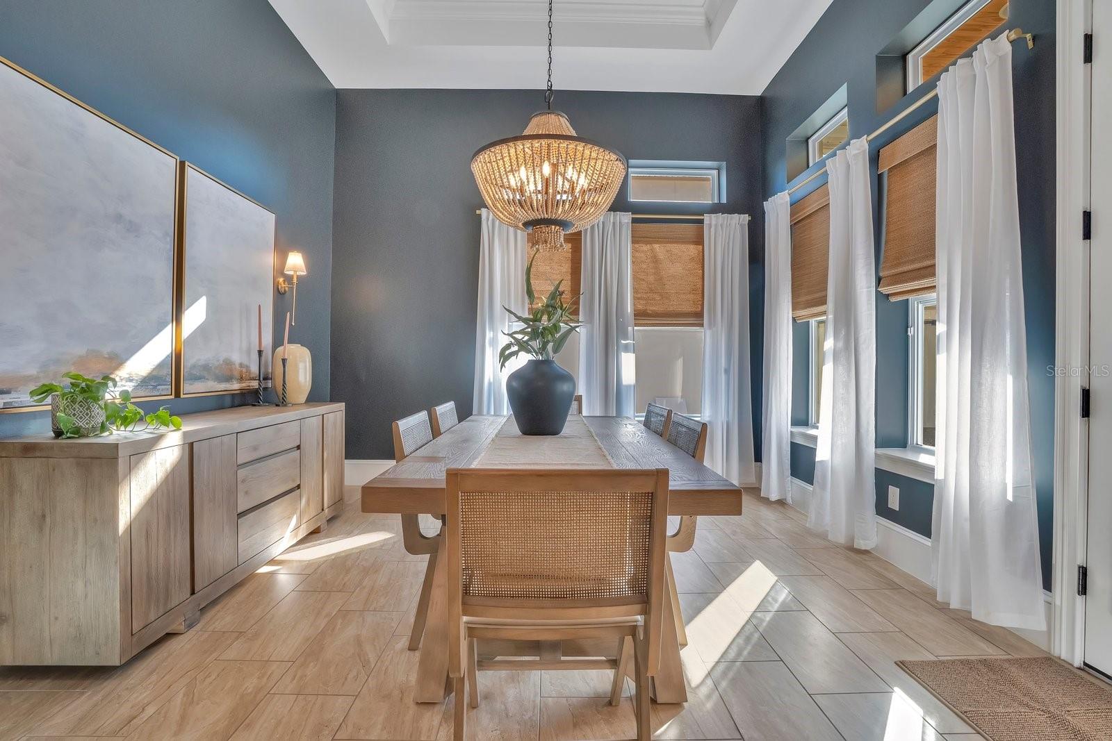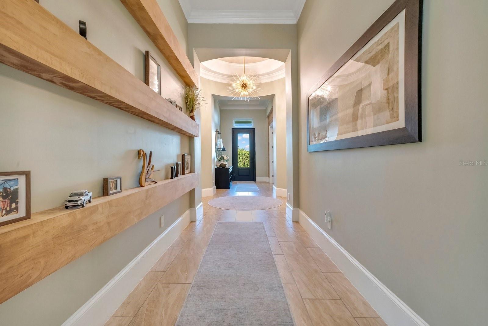 Aninhada em uma paisagem de vegetação bem cuidada, esta propriedade de 4.275 pés quadrados oferece uma sensação imediata de chegada. A ampla varanda frontal serve como uma introdução serena ao interior da casa, onde tetos de 14 pés criam uma impressionante sensação de volume e luz. Este ambiente arejado flui através de cinco quartos espaçosos e quatro banheiros e meio, incluindo um home office dedicado, diferenciado por papel de parede texturizado e conectividade integrada de casa inteligente. A suíte master funciona como um santuário privado, com detalhes no teto e uma área de estar repleta de luz. Seu banheiro privativo é um estudo de luxo moderno, centrado em um chuveiro spa de azulejos com vários chuveiros e um guarda-roupa personalizado equipado com armazenamento do chão ao teto e uma escada rolante para biblioteca. O núcleo social da casa é uma cozinha de chef que prioriza a utilidade e a estética, com bancada de quartzo, fogão a gás e gaveta de aquecimento. Este espaço transita perfeitamente para as salas de jantar e familiares, que são elegantemente divididas por uma lareira a gás de dupla face. Para o anfitrião, um bar embutido e portas francesas que levam à varanda coberta proporcionam um ambiente refinado para entretenimento. Além da residência principal, um elegante apartamento de dois quartos oferece uma solução versátil para hóspedes ou renda de aluguel, complementado por garagem para três carros e estacionamento adicional para frota completa. A segurança e a conveniência moderna estão integradas na infraestrutura da casa, desde o closet de segurança até as portas de dados cabeadas em todos os cômodos. A experiência ao ar livre é definida por um amplo pátio pavimentado e um pátio totalmente cercado que oferece amplo espaço para uma piscina. Localizada no coração do Lago Nona, a poucos passos das principais escolas e restaurantes da região, esta propriedade é um casamento raro entre sofisticação tecnológica e conforto atemporal.