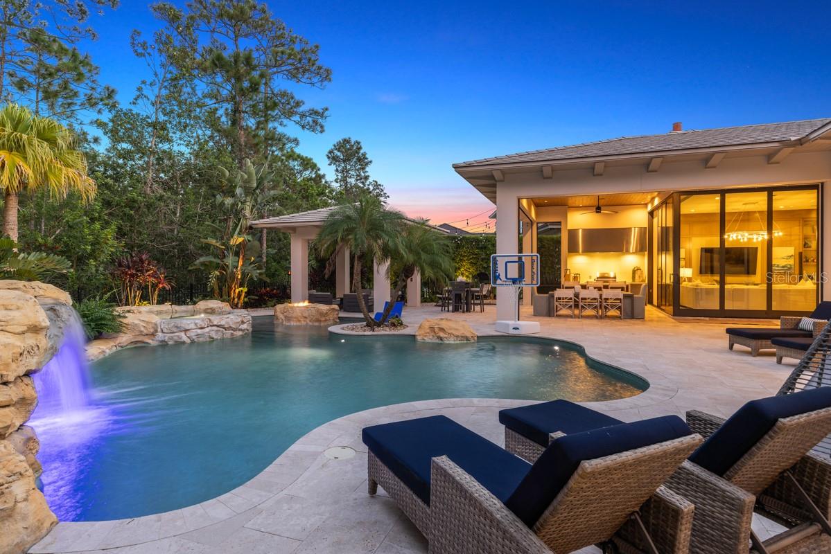 Bem-vindo a um estilo de vida verdadeiramente encantador nesta impressionante obra-prima de luxo moderno, Once Upon A Dream, localizada no popular bairro Four Seasons Private Residences. Cuidadosamente posicionada em um cobiçado terreno de esquina, esta joia arquitetônica moderna apresenta uma elegante entrada circular com vista para a elegante escadaria que dá o tom de grandeza e sofisticação. No interior, a galeria principal e a sala de jantar de dois andares banham a casa com luz natural através de janelas do chão ao teto. A cozinha é um sonho culinário com ilhas duplas com tampo de mármore, amplo espaço para sentar, eletrodomésticos de última geração e acabamentos elegantes. Um oásis tropical aguarda do lado de fora com uma serena área de estar ao ar livre completa com cozinha de verão, fogueira, um gazebo espaçoso, sistema de nebulização fresca e piscina cintilante com cascata em forma de gruta. A luxuosa suíte principal exala sofisticação com seu bar matinal e lareira linear na banheira estilo spa. Outros destaques incluem a casita privada para hóspedes, a espetacular sala de vinhos e a cozinha separada, toques da Disney, além de vistas tranquilas da reserva natural vizinha. Construída sob medida pela Jones Clayton Construction combinada com acabamentos interiores do renomado Marc-Michaels Interior Design, esta casa incomparável foi projetada com atenção meticulosa aos detalhes e um artesanato incomparável. Descontraia-se e relaxe com estilo ou organize reuniões agradáveis enquanto aproveita o sol da Flórida com luxo absoluto. Golden Oak no Walt Disney World Resort(R) é um resort residencial onde as famílias podem viver abraçadas ao luxo, à privacidade e à magia da Disney. Este condomínio fechado apresenta bairros distintos de casas magníficas, amplas reservas naturais e comodidades convidativas - incluindo acesso ao clube privado do Golden Oak, Summerhouse, com excelentes ofertas de comida servidas em uma sala de jantar casualmente elegante, pátios, área de piscina, instalações de fitness e ambiente familiar. sala. Além disso, os residentes têm acesso ao Club Life, Your Special Connection to the Magic, incluindo acesso à equipe de serviços para membros do Golden Oak, transporte para o parque, eventos exclusivos do clube, experiências em parques temáticos e muito, muito mais. Também no Golden Oak está o Four Seasons Resort Orlando no Walt Disney World Resort, que abriga um campo de golfe Tranquilo de 18 buracos, spa de serviço completo, instalações para reuniões e restaurantes superlativos. Benefícios e requisitos adicionais vêm com a aquisição de casa própria no FOUR SEASONS PRIVATE RESIDENCES ORLANDO.