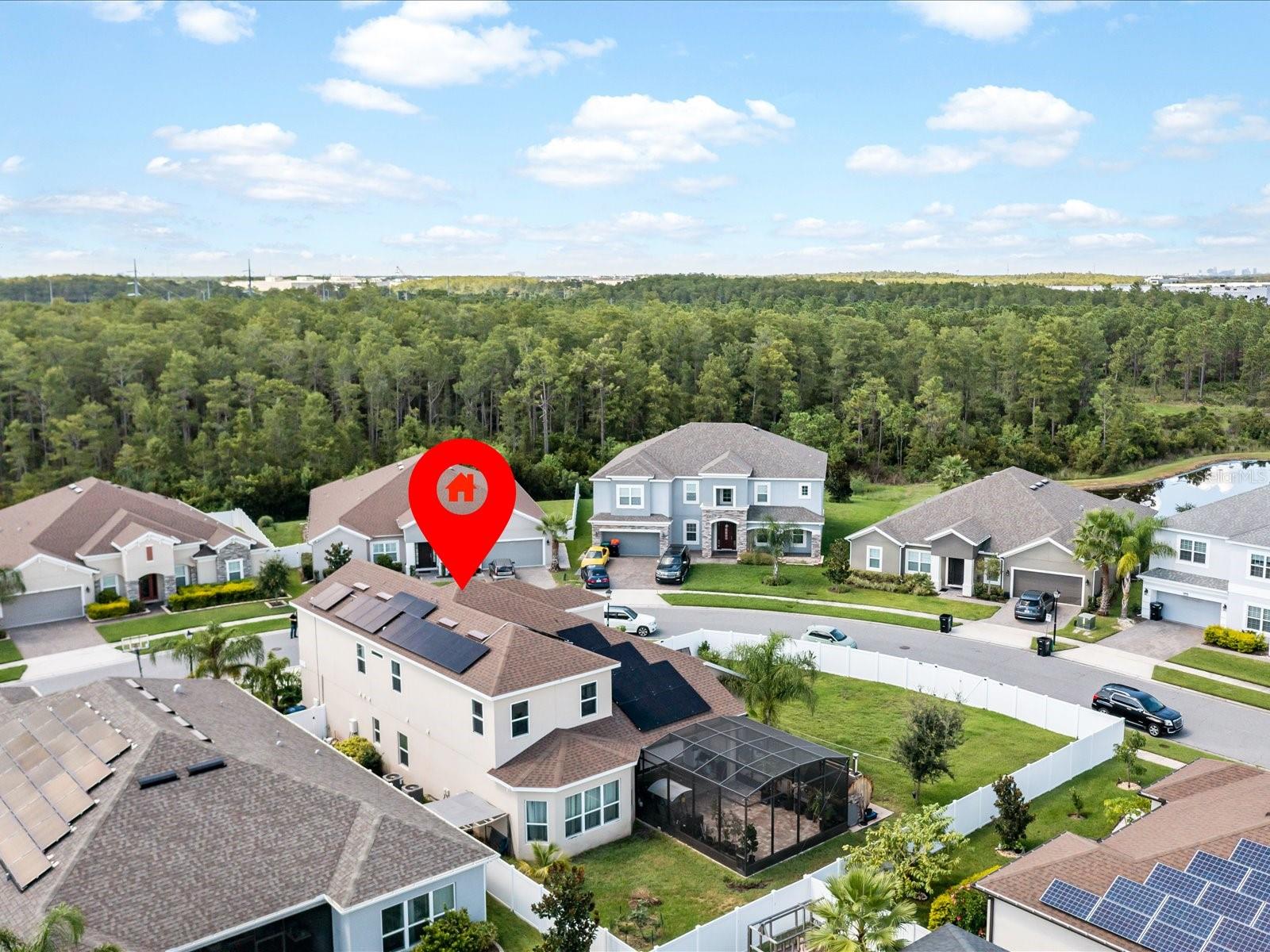 Bem-vindo ao lar! O modelo Caroline de dois andares cuidadosamente projetado cria uma atmosfera calorosa e confortável com sua planta aberta. Situada em um amplo terreno de esquina totalmente cercado na encantadora comunidade de Woodland Park, esta residência possui 4 quartos, 3,5 banheiros e generosos 3.282 pés quadrados sob ar, além de amplo espaço ao ar livre para entretenimento. Numerosas atualizações aumentam o apelo desta casa, incluindo painéis solares que não só contribuem para a sustentabilidade, mas também reduzem substancialmente a sua conta de luz. Os painéis solares estão totalmente quitados, proporcionando um benefício financeiro adicional. Ao entrar, um corredor impressionante leva a uma cozinha bem posicionada, promovendo um fluxo natural para a espaçosa sala de reunião/família. A cozinha em si é um destaque, com armários de café expresso de 42", eletrodomésticos de aço inoxidável, bancadas de quartzo e uma ilha grande com espaço adicional para refeições casuais. O balcão de café da manhã oferece assentos confortáveis para 4 a 6 bancos. Portas deslizantes de vidro inundam o interior com luz natural, proporcionando uma vista pitoresca e fácil acesso à varanda. Woodland Park oferece acesso conveniente a empresas locais, instalações médicas, compras e entretenimento, próximo a SR 528, SR 417 e SR 408. A localização fica a poucos minutos do aeroporto e da cidade médica de Lake Nona. Este condomínio é caracterizado por sua baixa taxa HOA de US$ 52/mês e oferece comodidades como piscina comunitária, playground, calçadas e parque. Com seu ambiente familiar e excelentes escolas, Woodland Park é um lugar ideal para criar e desenvolver uma família.