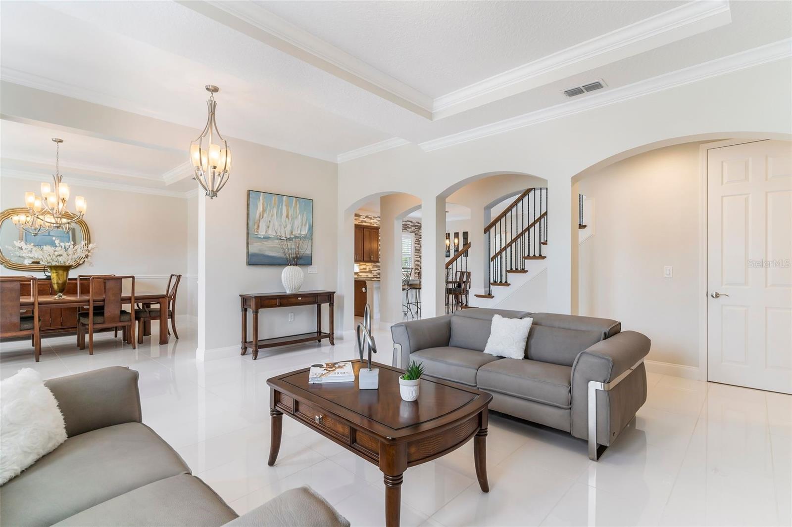 Bem-vindo ao 18318 Belleza Drive, onde o luxo encontra a praticidade na vida moderna. Entre em um hall de entrada espaçoso e bem iluminado com piso de cristal que leva à sala de jantar formal e à sala de estar com parede traseira em arco. área de estar confortável com tetos altos, portas de bolso personalizadas, sancas e caixilhos de janelas em toda a casa, oferecendo vistas serenas. A cozinha é perfeita para os entusiastas da culinária, apresentando uma ilha central, uma área de café da manhã adjacente, backsplash de azulejos grandes e personalizados e eletrodomésticos modernos, perfeitamente conectados a uma aconchegante sala familiar. Relaxe na suíte master com suas comodidades confortáveis, incluindo tetos em caixotões, closets e banheiro privativo com banheira vitoriana, pias duplas, chuveiro separado com box de vidro, azulejos atualizados até o teto e um toalete privativo, além de um adicional suíte de hóspedes com banheiro completo no térreo, o que é uma suíte perfeita para sogra! No andar de cima, mais três quartos, todos com piso de madeira projetada, banheiros Jack e Jill com piso de cristal e um banheiro extra completo, que proporciona privacidade e uma bela vista para a sala familiar. No exterior, paisagismo atualizado, cerca de alumínio totalmente instalada e lindos poducarpus, árvores frutíferas para agregar privacidade e beleza, desfrutar do pátio ampliado e piscina aquecida com jacuzzi para confraternizações ao ar livre, além de área de churrasqueira. Com um gerador de reserva para toda a casa, você terá tranquilidade mesmo durante quedas de energia, além de uma garagem para três carros com piso de epóxi e racks suspensos para armazenamento extra. Localizado no condomínio fechado Fontana Estates com um lindo pavilhão coberto próximo a um playground com vista para vários lagos. Desfrute de privacidade e relaxe enquanto a via expressa SR-408 e SR-417, convenientemente localizadas, permitem fácil acesso ao centro de Orlando, UCF, Waterford Lakes, NASA Space Coast e às praias. vida cotidiana Bem-vindo à sua nova casa.