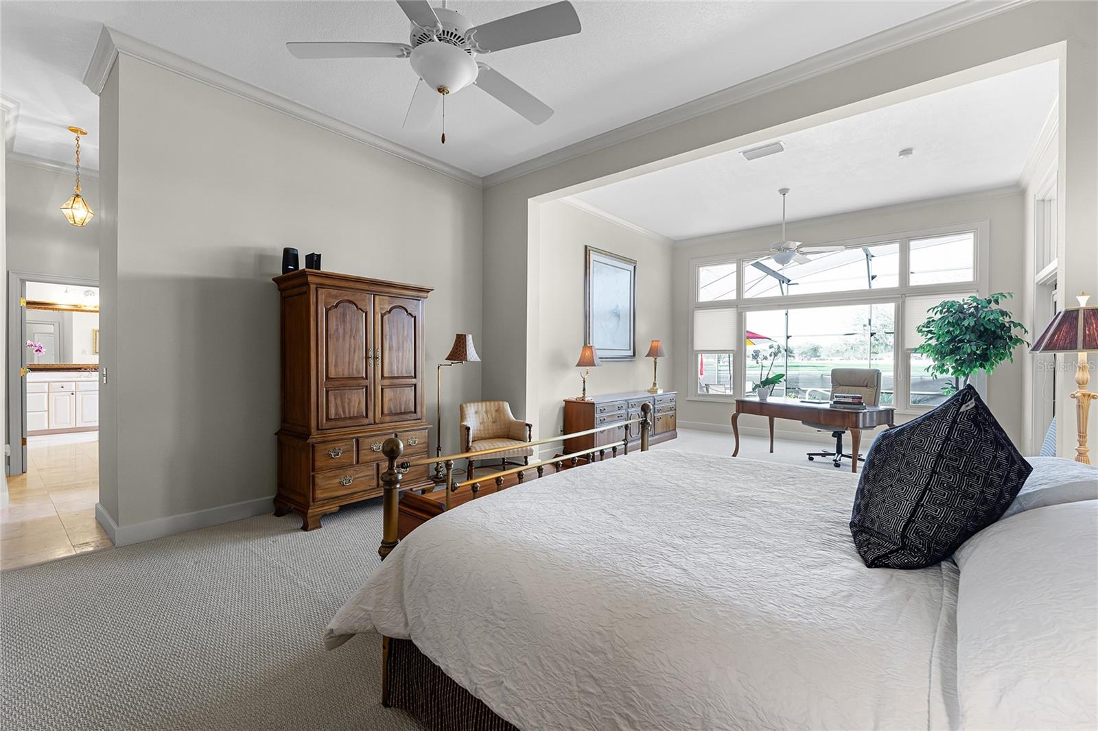 Bem-vindo a uma das vistas mais espetaculares do Bay Hill Championship Golf Course de Arnold Palmer, disponível pela primeira vez em 25 anos. Esta linda casa construída sob medida está situada no fairway do 11º buraco, com vista para a água e amplas vistas de vários fairways e greens exuberantes. Suba pela enorme calçada circular pavimentada e entre pelas portas frontais de vidro com chumbo personalizadas para ser recebido por vistas elevadas e deslumbrantes deste renomado campo de golfe do PGA Tour Championship. Da varanda e do pátio da piscina, o cenário estratégico norte/sul oferece tons pitorescos e indiretos do pôr do sol em vários buracos do campo até a colorida copa das árvores além. Lindamente mantida e construída para durar, esta casa personalizada de 1 andar oferece grande utilidade, espaço e tamanho com 4 quartos, 3 banheiros completos e 2 lavabos e mais de 3.400 pés quadrados nesta propriedade charmosa e tradicional. Ricos pisos de carvalho maciço, com acabamento no local, estão espalhados pelo hall de entrada, corredores, sala de jantar e cozinha, com lambris e corrimãos de madeira. Sancas em múltiplas camadas, portas de madeira maciça, iluminação embutida, tetos “desmontáveis” de 10' a 12' por toda parte, vários armários, uma sala de estar de grandes dimensões e quartos familiares com carpete berbere, lareira a lenha com lareira de mármore, manto, estantes, travessas e muito mais! Um lugar maravilhoso para se reunir, a espaçosa cozinha com sala de café da manhã, janela saliente, uma enorme ilha com cooktop, banqueta, balcões de granito, lindos franceses com acabamento antigo, armários em tons claros, todos os eletrodomésticos incluindo forno de convecção, garagem de eletrodomésticos, grande despensa, pia dupla e muito mais! A suíte Primária é impressionantemente grande e inclui tetos de 11 pés, uma extensão de escritório/sala de leitura, travessas e vistas espetaculares do campo de golfe com portas francesas que levam a uma varanda coberta e ao deck da piscina. O banheiro principal da suíte parece um spa sereno com pias duplas personalizadas independentes com embutidos úteis, piso de travertino, banheira de hidromassagem, vitral e um enorme sistema de closet! Os espaçosos quartos de hóspedes possuem banheira Jack e Jill, além de banheiro privativo com banheiro completo recém-revestido. Uma varanda coberta de 38 pés inclui um bar molhado, lavabo privativo, chuveiro externo, três conjuntos de portas francesas, tetos de 11 pés, uma piscina com tela de 36 pés, quatro canteiros e muito mais! Uma incrível garagem enorme de 29 pés com entrada lateral para 2 carros, ALÉM de uma garagem separada para carrinhos de golfe com acesso traseiro e várias paredes de pegboard. Ideal para entretenimento, especialmente para fãs de golfe, e a uma curta viagem de carrinho de golfe até o Bay Hill Club & Lodge, Marina, quadras de tênis e pickleball. Escolas Dr. Phillips com classificação A, restaurantes em Sand Lake Road e muito mais ~ Aproveite esta maravilhosa casa em Bay Hill e o estilo de vida que vem com ela!