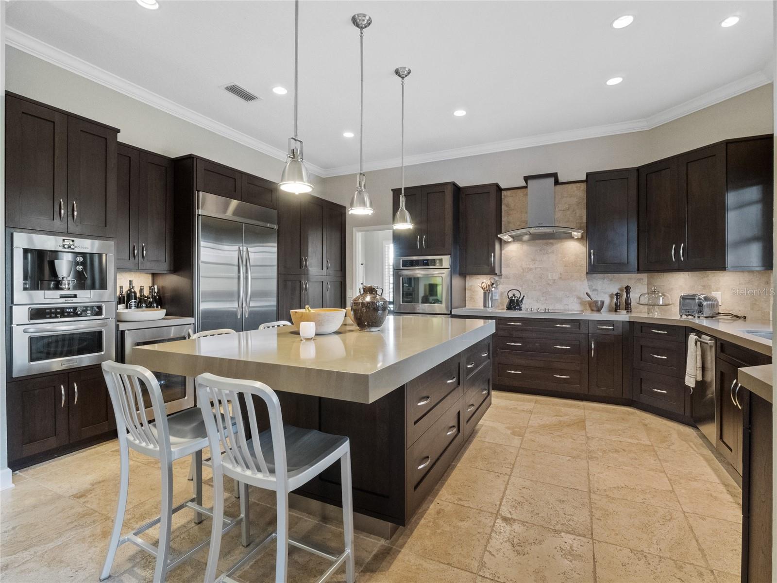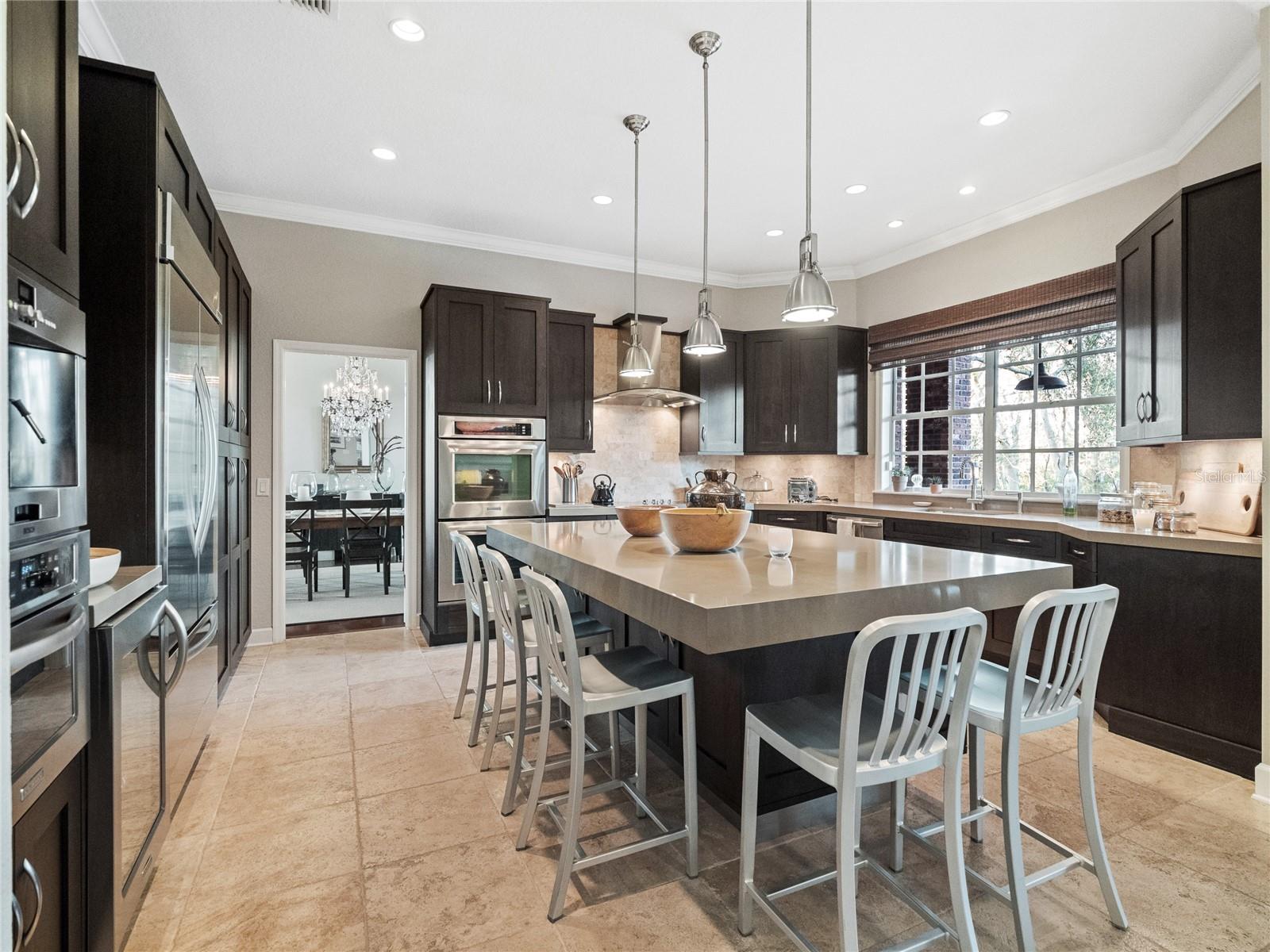 Arquitetura elegante e clássica no coração do Dr. Phillips! Esta casa extremamente rara, toda de tijolos, construída por Ray Coudriet na comunidade de Bay Hill-South Bay, fica em um terreno enorme com vista para uma área de Greenbelt. Construído para durar com suas características e estilo atemporais, além de uma planta baixa voltada para a família! Os tetos altos no hall de entrada incluem uma bela escadaria em caracol, nova iluminação e vários armários; continue pelo nível principal até uma ampla e iluminada sala de estar e sala de jantar separada com molduras, venezianas, piso de madeira e grades para cadeiras. Porta de vidro para uma LINDA cozinha remodelada pela Signature Kitchens que inclui piso de travertino, armários de madeira maciça de nogueira com sombra de café expresso personalizado, uma imensa ilha de quartzo "Caesarstone" de uma só peça, máquina de café expresso embutida, eletrodomésticos de aço inoxidável, luminárias de hardware de restauração. A sala central adjacente 'Bom Dia' se conecta à grande e aconchegante sala familiar com lareira a gás, tetos altos, janelas grandes, piso de madeira, todos com vista para a piscina, varanda coberta e Greenbelt! Também no piso principal encontra-se o 5º quarto, que pode funcionar como segundo escritório porque também existe um verdadeiro escritório no corredor. Suba ao segundo nível para encontrar a suíte primária de 22' x 20', banheiro moderno reformado em 2020, closet e portas francesas para uma varanda enorme com tela que oferece vistas deslumbrantes! Três quartos adicionais são grandes, suíte Jack n Jill remodelada, carpete novo, rampa de lavanderia e muito mais. Saia para a bela varanda de tijolos, coberta e protegida com cozinha de verão, uma grande piscina aberta com acabamento Pebble Tech, spa no solo e um grande quintal traseiro. Os destaques adicionais incluem uma garagem superdimensionada para 2 carros, telhado de telha original, AC's são novos de 2023 e 2017, fossa séptica substituída em 2014. Viveu com muita leveza nos últimos 5 anos, esta deslumbrante casa personalizada também tem os benefícios de um parque, tênis quadras, trilhas para corrida e cais de pesca, tudo em South Bay, além de fácil acesso ao Bay Hill Club por carrinho de golfe - associações baseadas na disponibilidade. Conveniente para lojas e restaurantes de Sand Lake Road, escolas A+, atrações e muito mais - não vai durar!