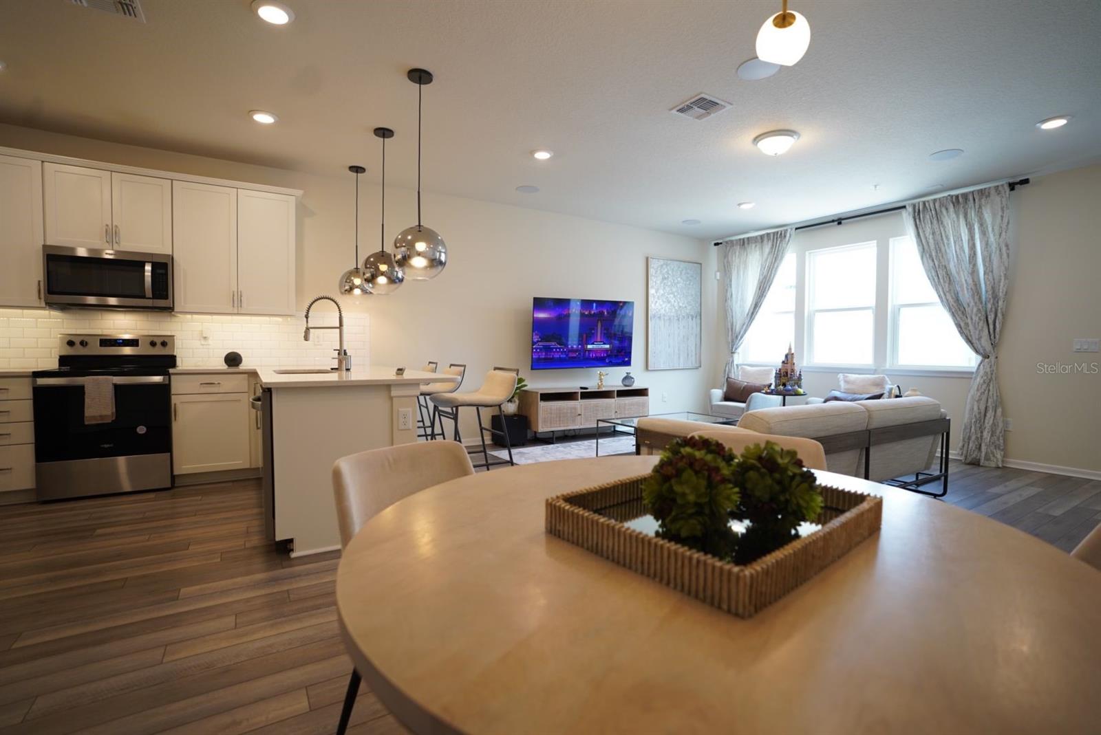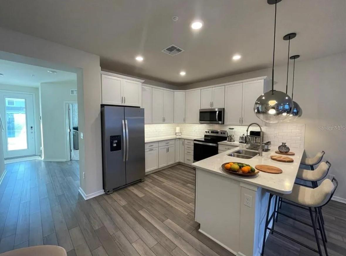 LINDA MORADIA na comunidade de Isles of Lake Nona, a poucos minutos do centro da cidade de Lake Nona e da cidade médica. Esta residência urbana de dois andares possui 4 quartos, 3 banheiros completos, lavabo, cozinha em conceito aberto, sala de jantar e reunião, pátio traseiro privativo cercado, garagem para 2 carros voltada para os fundos com piso atualizado e todos os eletrodomésticos. A cozinha foi atualizada com bancadas de quartzo e backsplash de azulejos de design. Todas as ferragens e torneira na cozinha com geladeira de aço inoxidável atualizada de última geração. Grande despensa e armário de arrumação. A Suíte do Proprietário possui um espaçoso closet com UPGRADE WOOD STORAGE SISTEM e banheiro da suíte final com pia dupla com bancada de quartzo, armários atualizados e backsplash de azulejos. Chuveiro enorme. Três quartos adicionais, o banheiro secundário e o armazenamento extra oferecido por um armário de linho ficam no segundo andar. As Ilhas do Lago Nona são um condomínio fechado em estilo resort. Aproveite o fácil acesso à 417, oferecendo um deslocamento rápido para o centro da cidade, a Disney ou as praias. O centro de comodidades é completo com piscina estilo Resort com splash pad e clubhouse, academia de ginástica com serviço completo, dois playgrounds e quadras esportivas de basquete, tênis e pickleball. HOA inclui paisagismo, internet, entrada fechada e acesso a todas as comodidades.