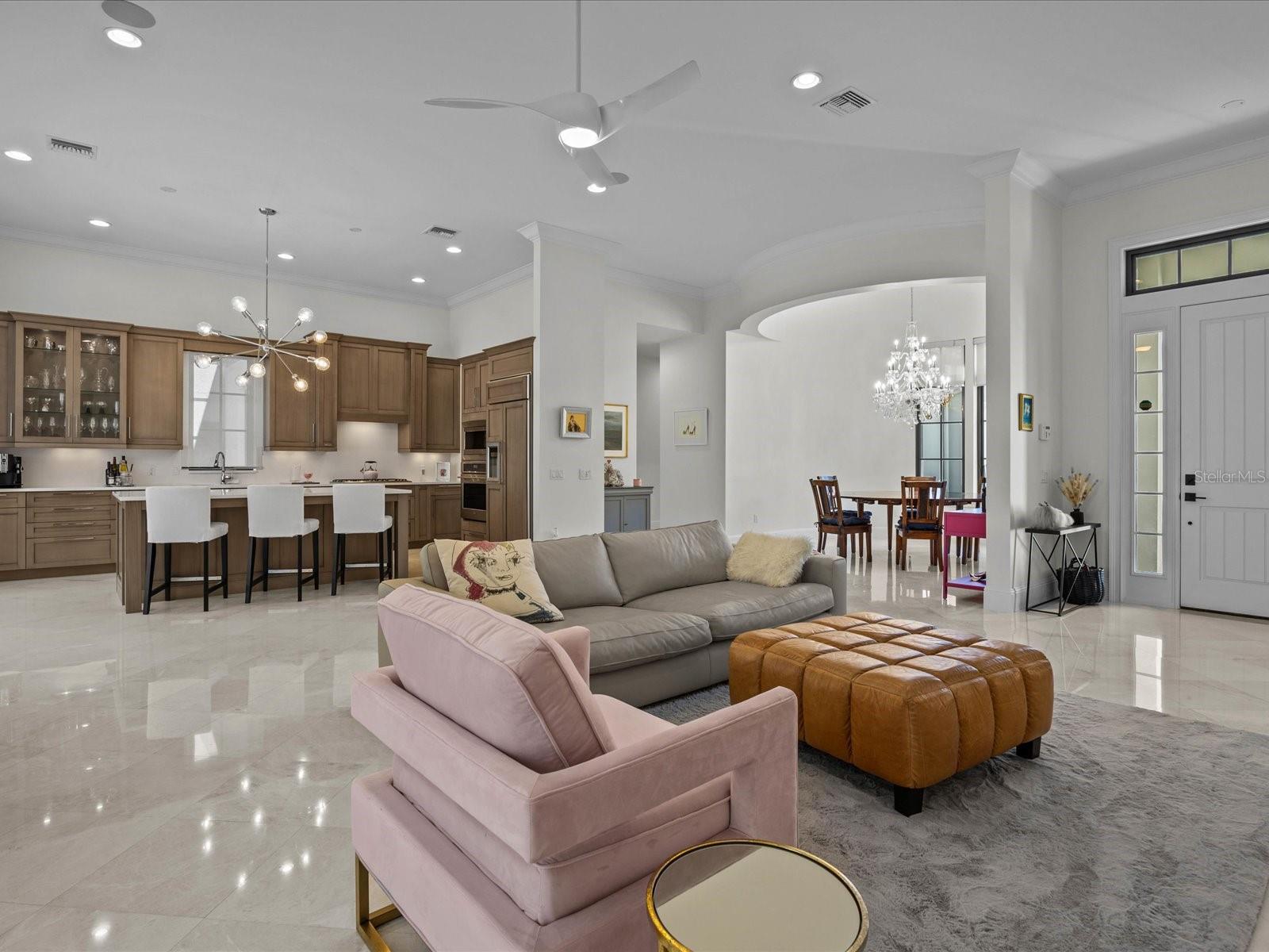 8622 Farthington Way é o tipo de casa de luxo que não chega ao mercado com frequência. É uma casa com piscina de 2.934 sf de tamanho certo situada em um lote generoso de 0,43 ACRES com vista para LAGOA PRIVADA e um excelente espaço de estar interno e externo e uma GARAGEM PARA QUATRO CARROS. A “localização localização” é uma rua lateral tranquila e a uma curta viagem de carrinho de golfe até as comodidades do clube de campo, que incluem centro de exercícios, quadras de tênis e pickleball, atividades aquáticas e comodidades do campo de golfe de classe mundial Lake Nona. Ao chegar à propriedade meticulosamente paisagística, você e seus convidados apreciarão a liberdade de manobrar pela espaçosa entrada CIRCULAR. A garagem para quatro carros (dois são grandes) pode acomodar facilmente vários carros, carrinhos de golfe, ferramentas e brinquedos ao ar livre! O interior exala uma sensação LIMPA e CONTEMPORÂNEA com pisos de mármore e acabamentos neutros de bom gosto, prontos para serem realçados por seus toques decorativos pessoais. Todos os quartos têm banheiro privativo e armários grandes. O quarto principal tem dois closets e acesso direto à varanda da piscina. Os chefs apreciarão o balcão da ilha de quartzo, o fogão a gás e a grande despensa com uma prática linha de água (para apoiar uma máquina de fazer gelo ou uma geladeira/máquina de lavar louça adicional). Abra as portas de correr e a churrasqueira externa se tornará uma extensão da sua cozinha. Quase todas as refeições podem ser apreciadas ao ar livre, no conforto sombreado de sua ampla varanda coberta e protegida. Comece suas manhãs tomando uma caneca de café quente e observe o nascer do sol sobre a piscina e o lago ondulante. Nas tardes preguiçosas, o confortável sofá do pátio é perfeito para ler um livro, assistir TV ou tirar uma soneca ao som da canção de ninar da fonte borbulhante do lago. Depois do jantar, ligue a música nos alto-falantes com fio, mergulhe na banheira de hidromassagem e sinta o estresse desaparecer… E nos raros dias frios da Flórida, aproveite sua piscina de sal aquecida e depois aconchegue-se ao lado de sua lareira a gás. Na verdade, a melhor vida espera por você em 8622 Farthington Way!
