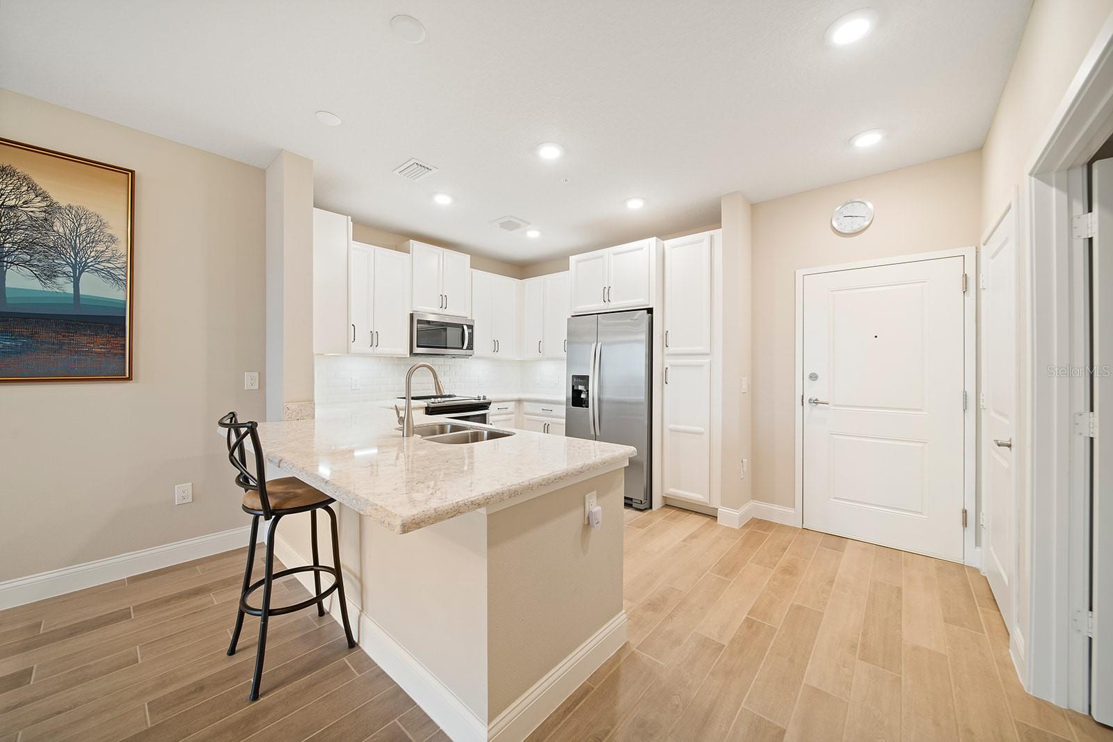 Bem-vindo à casa dos seus sonhos em 7517 Laureate Boulevard, Unidade 4205, um condomínio imaculado situado em uma comunidade vibrante com mais de 55 anos na cobiçada área de Lake Nona. Esta propriedade excepcional oferece uma combinação perfeita de luxo, conveniência e vida ativa, tudo ao alcance das melhores instalações médicas, destinos de compras, restaurantes e opções de entretenimento de Orlando. Ao entrar neste condomínio pronto para morar, você será recebido por um amplo layout de 1.486 pés quadrados que combina lindamente elegância moderna com conforto. O piso de tábuas de madeira de alta qualidade em todas as áreas principais dá um tom aconchegante e convidativo, enquanto o carpete macio nos dois quartos espaçosos garante um retiro aconchegante. O coração desta casa é, sem dúvida, a cozinha, com bancadas de granito, eletrodomésticos de aço inoxidável, backsplash de azulejos de metrô, iluminação sob o balcão e amplo espaço de armazenamento para todas as suas necessidades culinárias. Receba os hóspedes ou desfrute de manhãs tranquilas na sua varanda coberta, oferecendo vistas serenas e um ambiente tranquilo. O escritório/escritório próximo à entrada frontal oferece um espaço versátil para trabalho ou hobbies, complementado por uma planta dividida bem pensada que aumenta a privacidade. O fascínio deste condomínio é ampliado pelas extensas comodidades da comunidade: um clube, piscina estilo resort com cabanas, churrasqueira luxuosa ao lado da piscina, academia de última geração, sala de jogos/conferências, quadras de bocha, quadra de picles e mais. Com benefícios HOA, incluindo cabo, internet de alta velocidade, seguro residencial, entre outros, esta propriedade apresenta uma experiência de vida incomparável. Descubra a combinação perfeita de estilo de vida e localização na Unidade 4205 – um lugar onde cada dia parece férias.