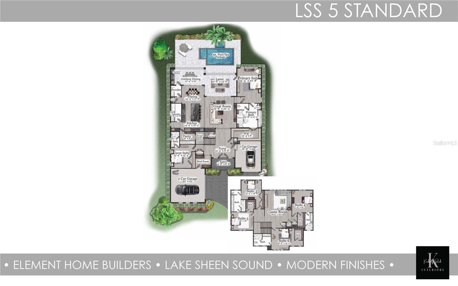 Em Construção. DATA DE CONCLUSÃO ABRIL 2025 - MODELO ABERTO DIARIAMENTE! Apresentando o Sunscape da Element Home Builders localizado na mais nova comunidade de luxo da área de Windermere, Lake Sheen Sound. O espaçoso layout de 5.232 pés quadrados desta deslumbrante casa personalizada acomoda perfeitamente seu design de 6 quartos e 5,5 banheiros. A entrada acolhedora oferece vistas imediatas da varanda considerável e da área da piscina. O plano aberto da casa apresenta uma cozinha gourmet com uma enorme ilha de cozinha e despensa com amplo armazenamento. Uma sala de jantar formal ao lado da cozinha é ideal para entretenimento, oferecendo amplo espaço para um grande grupo de convidados. Ao lado da grande sala fica a suíte principal com área de estar e luxuosa banheira tipo spa completa com banheira de imersão e chuveiro grande com azulejos lindos, perfeito para relaxar. O closet é extenso, com recursos personalizados integrados e oferece espaço suficiente para todas as suas roupas, além de espaço de armazenamento adicional. No andar de cima há quatro quartos espaçosos e adicionais com amplo armário e dois banheiros adicionais. Uma sala de jogos é o centro da área do andar de cima e oferece amplo espaço para as crianças se divertirem com os amigos, irem ao cinema ou à noite de jogos. Fora da varanda há uma incrível área de jantar ao ar livre com uma espetacular cozinha de verão, perfeita para entretenimento nas noites quentes de verão. Um lavabo para maior conforto também é acessível a partir da varanda. Para completar a bela área externa, uma cintilante piscina aquecida e deck pavimentado com vista desafogada. Esta requintada casa oferece duas garagens separadas, uma equipada para dois veículos e outra para um único veículo. Uma sala de lama ao lado da garagem para 2 carros é uma comodidade adicional. Lake Sheen Sound da Element Home Builders é um enclave meticulosamente planejado de 14 casas exclusivas, incluindo três casas de tamanho generoso de um acre à beira do lago e 11 lotes internos. A paisagem exuberante oferecerá um ambiente pitoresco e privado, projetado para o máximo luxo e conforto desejado por qualquer proprietário. A data estimada de conclusão é 04/2025.
