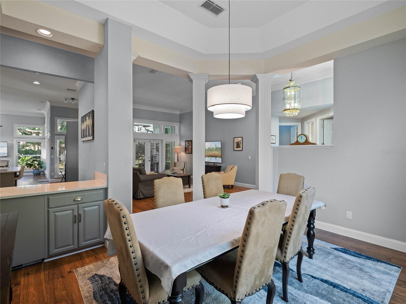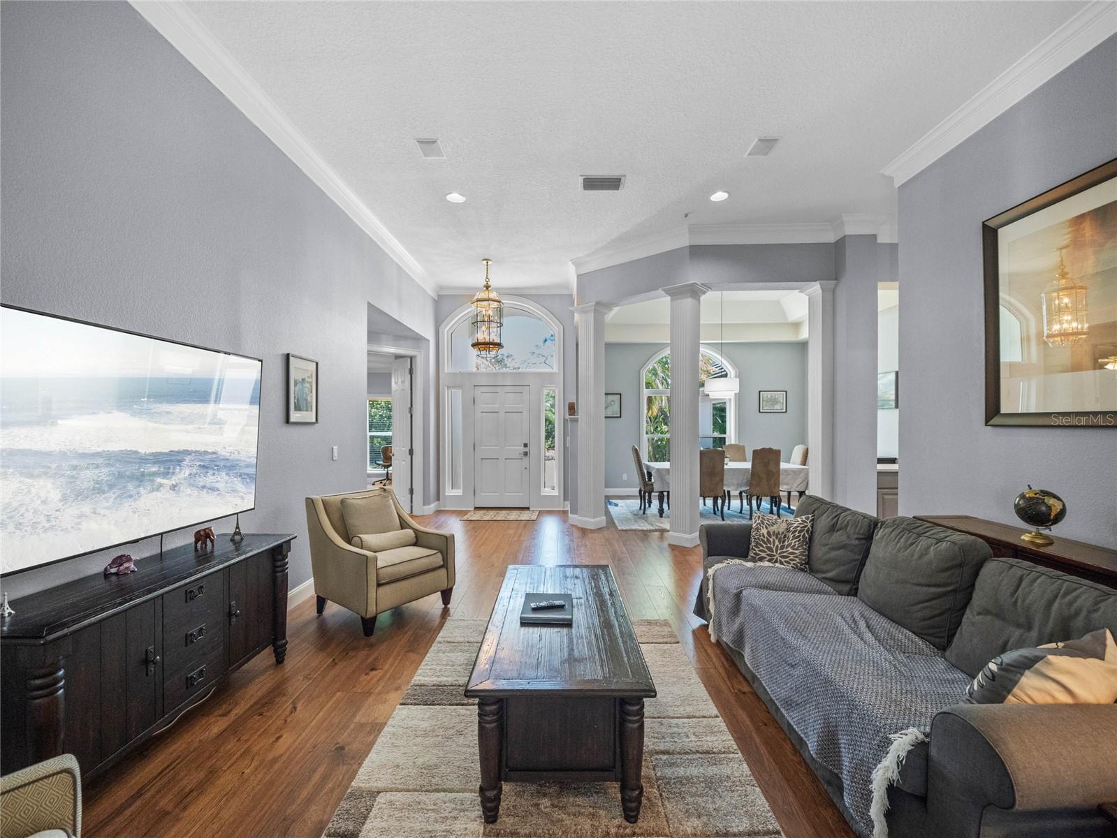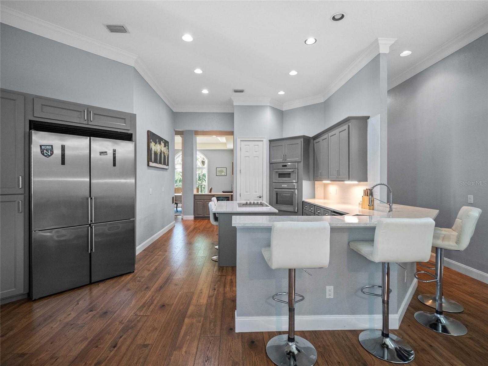 Localizada no Lake Nona Golf & Country Club, esta residência térrea recentemente remodelada está perfeitamente situada em uma rua privada sem saída, perto do Clubhouse e de todas as comodidades dos membros. Completo com um novo telhado de telha, novo piso, novas janelas, cozinha e banheiros reformados e tetos altos por toda parte, este retiro transitório está pronto para uso. Os hóspedes são recebidos com uma entrada espaçosa que se abre para as salas de jantar e de estar, com porta francesa que dá acesso à varanda traseira coberta e vistas serenas da paisagem madura, acentuadas por um majestoso carvalho. A cozinha tem vista conveniente para a sala da família e é inundada de luz natural através de todas as grandes janelas de popa. Ancorada por uma grande ilha e península de trabalho, a cozinha dispõe de despensa, acabamentos contemporâneos e eletrodomésticos novos em aço inoxidável. Situada entre a cozinha e a sala de jantar, uma despensa com geladeira embaixo do balcão cria um layout bonito e funcional para entretenimento em grande escala ou pequenas reuniões calorosas. A suíte do proprietário fica afastada da área de estar principal e oferece uma espaçosa área de estar, banheiro privativo remodelado, closet principal com embutidos personalizados e acesso privado à varanda. Os três quartos adicionais têm fácil acesso às casas de banho secundárias totalmente renovadas, tornando estes espaços perfeitos para hóspedes ou familiares." Características Adicionais: Lavabo com Acesso Exterior; Lavandaria/Zona de Depósito Espaçosa; Garagem para 2 carros e garagem para carrinhos de golfe.