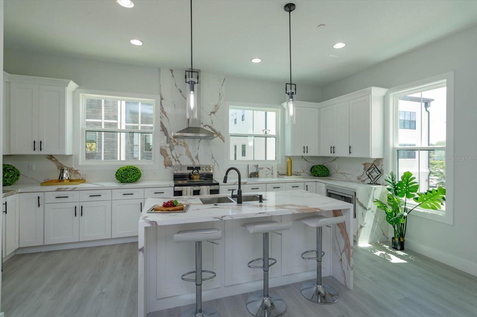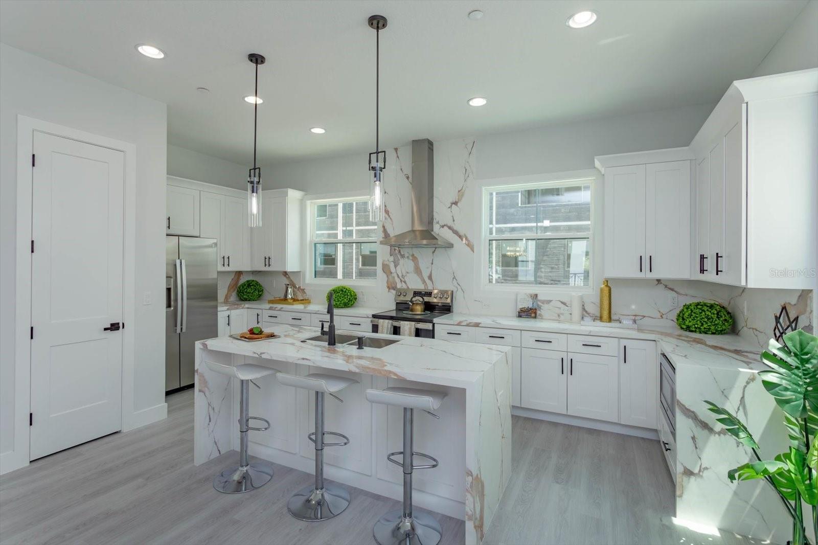 Nova Construção - Pronto para morar. Bem-vindo à sua luxuosa residência no coração de SODO Orlando! Esta deslumbrante propriedade de 3 quartos e 3,5 banheiros oferece o que há de melhor na vida moderna, perto de Target, LA Fitness, Chick-fil-A, ORMC e muito mais. Ao entrar, você será recebido por tetos de 3 metros de altura no 2º e 3º níveis, criando uma atmosfera espaçosa e arejada. A escada flutuante no segundo nível apresenta grades metálicas ultramodernas. A moradia dispõe de suítes master duplas, cada uma com banheiros luxuosos com armários personalizados premium, bancadas de quartzo e grandes chuveiros com box de vidro. A cozinha do chef é completa com uma grande ilha central para entretenimento, armários personalizados premium e bancadas de quartzo por toda parte. Janelas grandes na frente e atrás inundam o espaço com luz natural, criando um ambiente acolhedor e convidativo. O luxuoso piso de pranchas de vinil percorre toda a casa, juntamente com azulejos atualizados para todos os pisos do banheiro, chuveiros e varanda. Outros recursos incluem: * Portas lisas de 1 painel para todos os interiores, aumentando a estética moderna * Armários de lavadora e secadora convenientemente localizados no terceiro nível para maior comodidade * Janelas low-E de painel duplo para eficiência energética e redução de ruído * Pronto para casa inteligente, permitindo que você controle os recursos da sua casa com facilidade Esta é uma unidade modelo localizada em um terreno de esquina que oferece espaço adicional e privacidade. Com garagem para 2 carros e proximidade de todas as comodidades que a SODO Orlando tem a oferecer, este condomínio oferece a combinação perfeita de luxo, conveniência e vida moderna. Fotos usadas da unidade modelo anterior.
