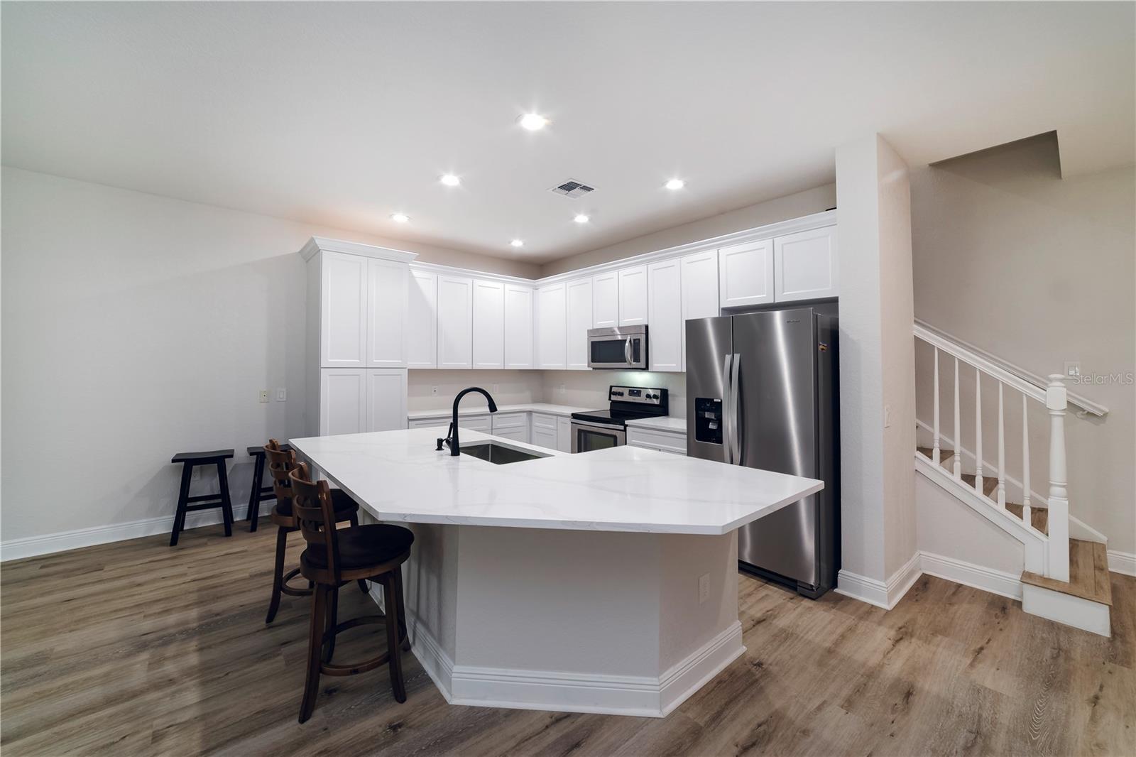 Moradia totalmente renovada com atualizações modernas no condomínio fechado Premier de Lake Nona. Descubra o luxo contemporâneo nesta moradia totalmente renovada localizada no condomínio fechado de Lake Nona. Meticulosamente atualizado com pintura nova, novo piso de vinil luxuoso, cozinha, banheiro no segundo andar, luzes embutidas no teto, escada e corrimão. Esta casa deslumbrante foi meticulosamente atualizada com uma série de recursos e acabamentos premium, tornando-a uma verdadeira joia neste bairro tão procurado. Quartos: 4 Banheiros: 3,5, Garagem: 2 carros anexos, Espaço externo: Pátio privativo Entre em um interior recém-pintado com uma atmosfera luminosa e convidativa, complementada por novas luzes embutidas no teto que iluminam o espaço. A nova cozinha apresenta armários elegantes reformados, bancadas de quartzo, eletrodomésticos de aço inoxidável e piso de vinil de luxo (LVP) totalmente novo que flui perfeitamente por toda a casa e sobe as escadas, criando uma aparência moderna e coesa. A suíte master no primeiro andar possui um banheiro privativo tipo spa com novas pias duplas adicionando um toque contemporâneo, enquanto os tampos de quartzo personalizados proporcionam uma sensação luxuosa ao espaço com banheira de imersão, chuveiro separado e closet . O banheiro do segundo andar foi lindamente reformado com acessórios e acabamentos modernos, proporcionando um retiro de relaxamento semelhante a um spa. Três quartos adicionais oferecem amplo espaço para hóspedes com banheiro Jack N Jill entre dois quartos, um escritório doméstico ou uma família em crescimento. Desfrute da vida ao ar livre no pátio privado, ideal para aproveitar o lindo clima da Flórida. Os moradores desta comunidade podem aproveitar as duas piscinas comunitárias cintilantes, perfeitas para relaxamento e recreação, clubhouse, quadras de tênis, playground e outras comodidades para um estilo de vida completo. Localizada no coração do Lago Nona, esta moradia oferece fácil acesso às melhores escolas, instalações médicas, centros comerciais e restaurantes. Experimente o melhor da vida moderna em uma localização privilegiada. Não perca a oportunidade de fazer desta moradia renovada o seu novo santuário. Agende uma exibição hoje e imagine-se vivendo com estilo na principal comunidade de Lake Nona!