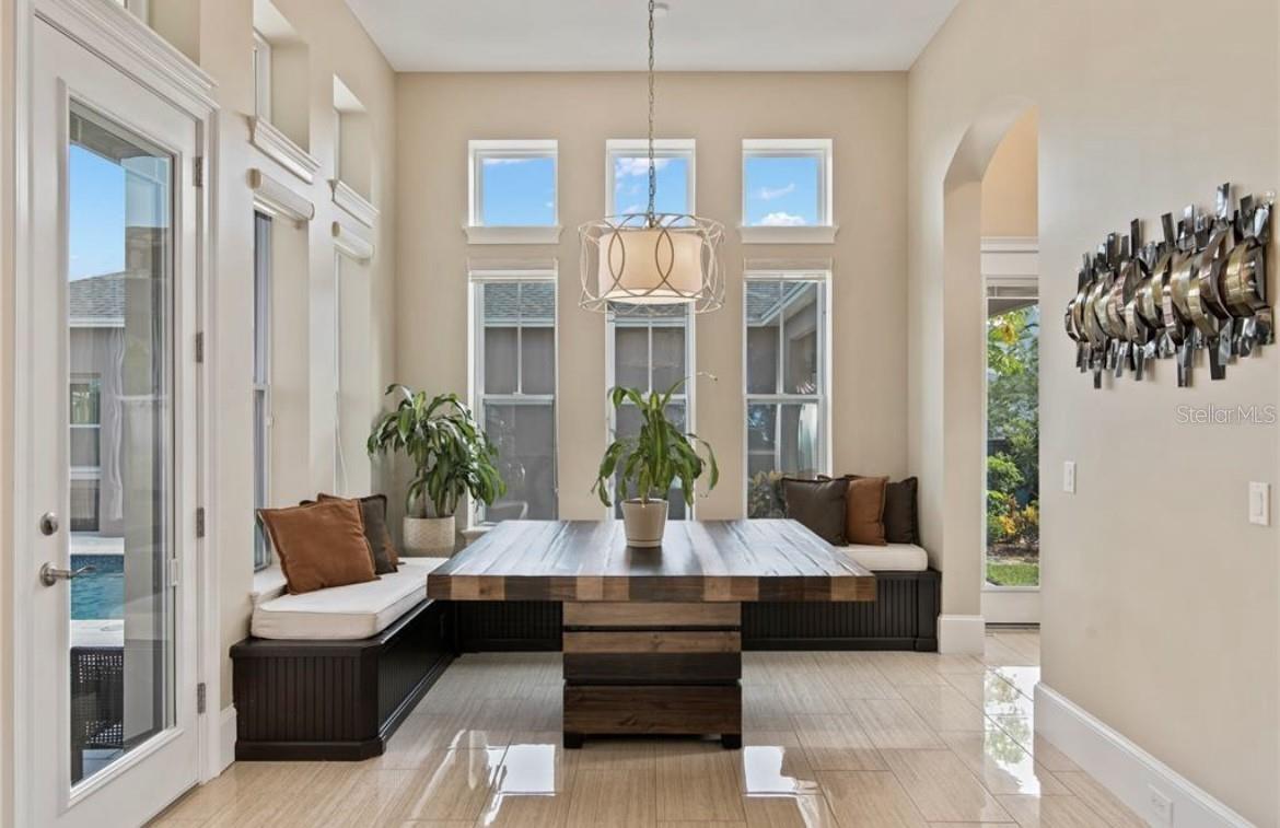 Esta luxuosa casa em Laureate Park/Lake Nona fica em um terreno de esquina enorme (77 pés de frente) em Square Lake. Aprecie as vistas fantásticas e o pôr do sol deslumbrante todos os dias em sua própria varanda coberta e estendida. Totalizando 4.650 pés quadrados com 5 quartos e 4,5 banheiros, esta casa impressionante apresenta tantas atualizações de alta qualidade que você se sente como se estivesse morando em uma casa modelo. Do lindo porcelanato do primeiro andar às extraordinárias vigas de madeira na Sala Formal, Sala Grande, Sala de Jantar e Marquise, você verá a dedicação e o amor colocados nesta casa. A cozinha gourmet possui duas ilhas personalizadas, armários de cozinha duplos, eletrodomésticos a gás, geladeira dupla embutida, despensa com refrigerador de vinho e uma grande despensa. Ao lado da cozinha há uma copa embutida e um mudroom embutido. Muitas áreas da casa foram pré-instaladas para alto-falantes e um sistema de segurança residencial Vivint. O segundo andar tem piso de madeira, lavanderia, 4 quartos e 3 banheiros no andar de cima. O espaçoso quarto principal possui um lindo banheiro principal e dois armários principais embutidos. Esta casa oferece múltiplas opções para entreter a família e amigos - desfrute das vistas do seu amplo terraço superior ou relaxe no seu oásis no quintal com cozinha de verão coberta e uma bela piscina de água salgada e banheira de hidromassagem, juntamente com uma casa com piscina/suíte para sogra com banheiro completo. Você também tem uma passagem coberta para uma espaçosa garagem individual para 3 carros. Aproveite os 71 quilômetros de trilhas para ciclismo, corrida e caminhada dentro da comunidade e todas as comodidades que o Laureate Park oferece - centro aquático, academia de ginástica, parque para cães, horta comunitária, muitos parques e espaços verdes, Internet de fibra óptica 1 GBPS e muito mais.