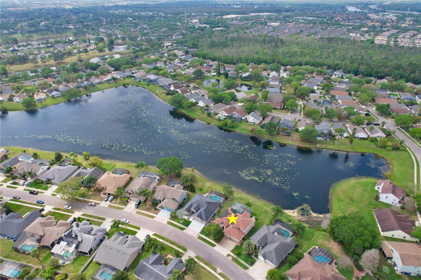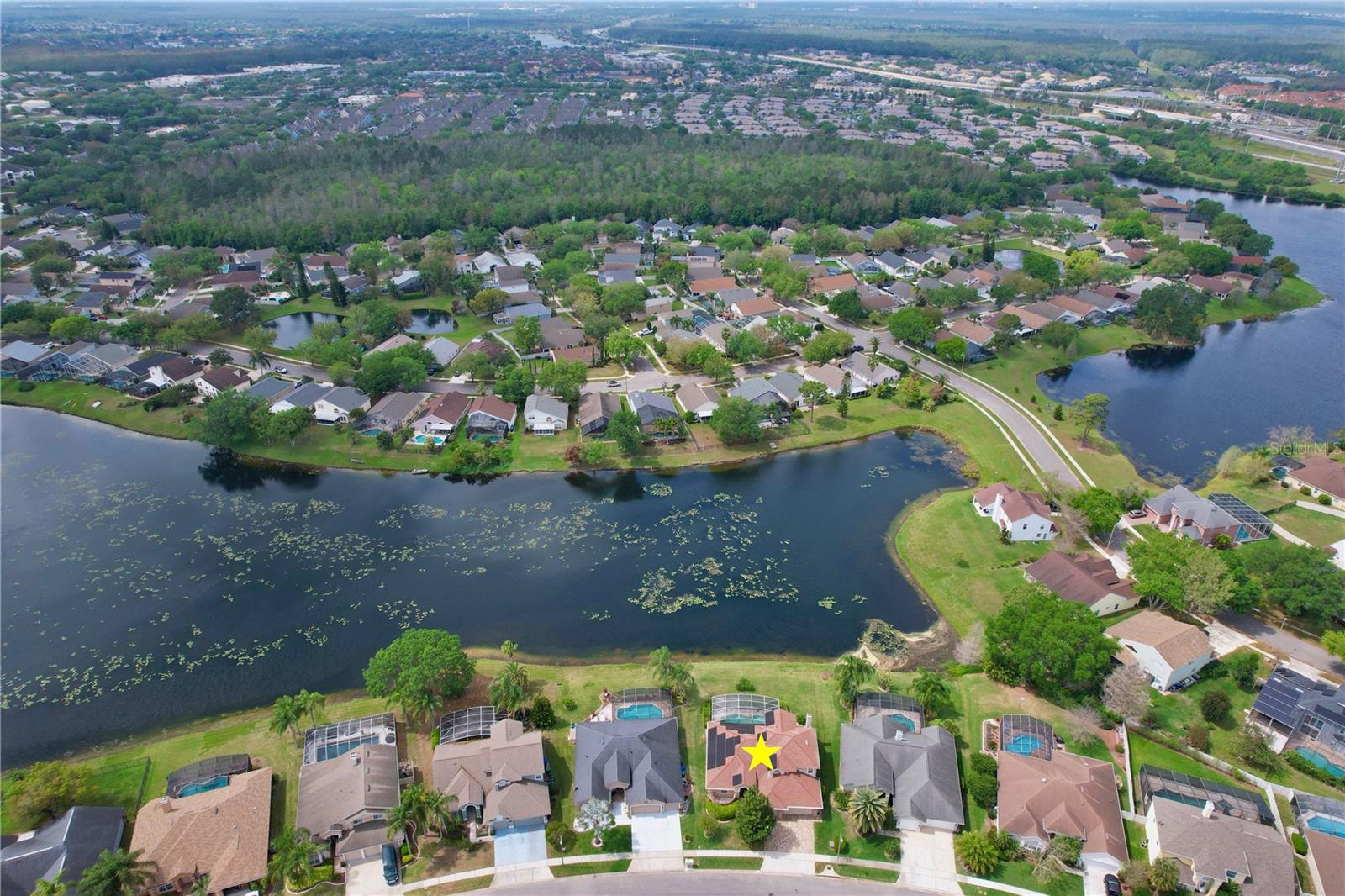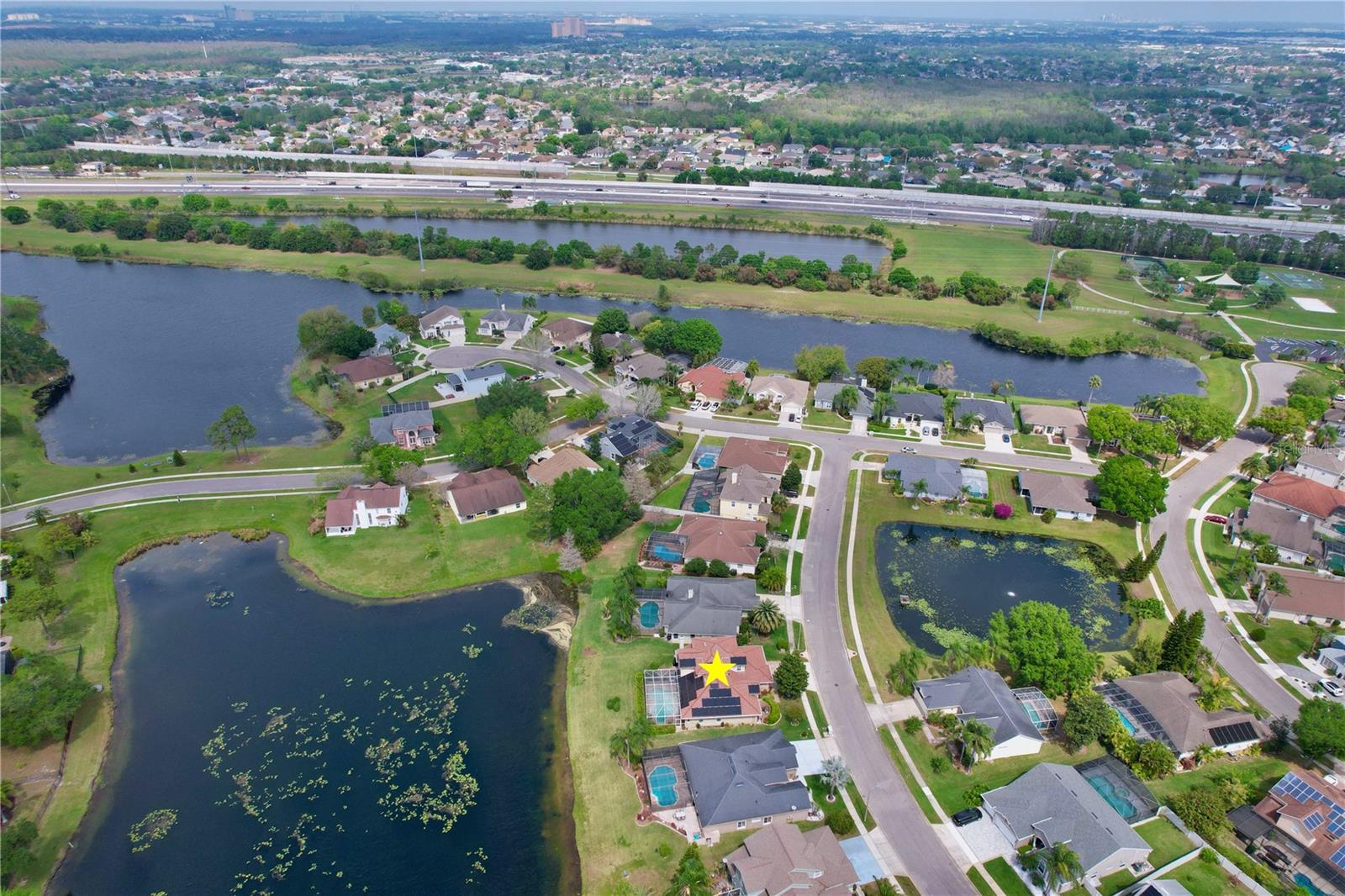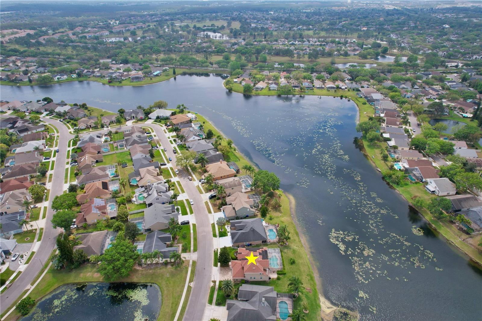 Uma ou mais fotos foram virtualmente encenadas. Esta requintada casa LAKEFRONT oferece uma mistura perfeita de luxo e conforto. Localizada em uma rua tranquila na idílica comunidade de FALCON POINTE em Hunters Creek, esta propriedade oferece vista para o lago, atualizações impressionantes e comodidades de alto nível. As características exclusivas desejáveis incluem: beira-mar, garagem para 3 carros, 5 quartos espaçosos, 3 banheiros completos, 2 lavabos, 2.759 pés quadrados htd., 3.754 pés quadrados no total, lote de 0,23 acres com 86 pés na costa. Esta casa com piscina imaculada apresenta apelo excepcional com sua fachada de tijolos, calçada de pavimentação e vegetação exuberante. O interior é igualmente impressionante, com tetos altos, venezianas personalizadas e vistas da piscina e do Lago Mallard quando você entra. A Sala Familiar é destacada por uma lareira de pedra com manto de madeira e iluminação de realce, criando um ambiente acolhedor e elegante. A Suite Primária no piso principal tem dimensões generosas e oferece acesso privado à área da piscina. No piso superior, 4 quartos/ 2 casas de banho, incluindo uma casa de banho Jack & Jill, e muito espaço de arrumação. A varanda coberta oferece o cenário perfeito para entretenimento ou relaxamento, aproveitando as manhãs tranquilas ou para capturar vistas do pôr do sol de cartão postal. Piscina aquecida estilo lagoa, pátio pavimentado e varanda coberta com lavabo externo. Arbustos exuberantes de privacidade com um quintal espaçoso que dá para o lago. Impecavelmente mantida e atualizada, esta casa possui portas resistentes a impactos de painel duplo e janelas economizadoras de energia com garantia vitalícia (2016), totalmente paga - painéis solares Green Energy (2020), proteção de calhas de filtro de folhas com garantia vitalícia transferível (2021), água LifeSource sistema de purificação e amaciador (2024), esquentador sem tanque (2020), canalização nova (2024) e nova pintura interior (2024). 2 sistemas AC zoneados substituídos em 2014. As pavimentações da entrada de automóveis e do deck da piscina foram instaladas em 2018. O MALLARD POINTE PARK fica ao virar da esquina, com quadras de basquete e tênis, vôlei de praia, playground, pavilhão de piquenique e pista de corrida. Zoneado para escolas de primeira linha e idealmente localizado a 20 minutos do Walt Disney World, do Aeroporto Internacional de Orlando, do Lake Nona Town Center e da Medical City. Perto das principais rodovias, incluindo 417, Florida Turnpike e 528. UMA OPORTUNIDADE RARA para o comprador seletivo ansioso por uma LOCALIZAÇÃO PRIVILEGIADA, um local premium à beira do lago e um lago do outro lado! Planta baixa disponível. Veja o TOUR 3D desta excepcional casa PRONTA PARA MOVER.