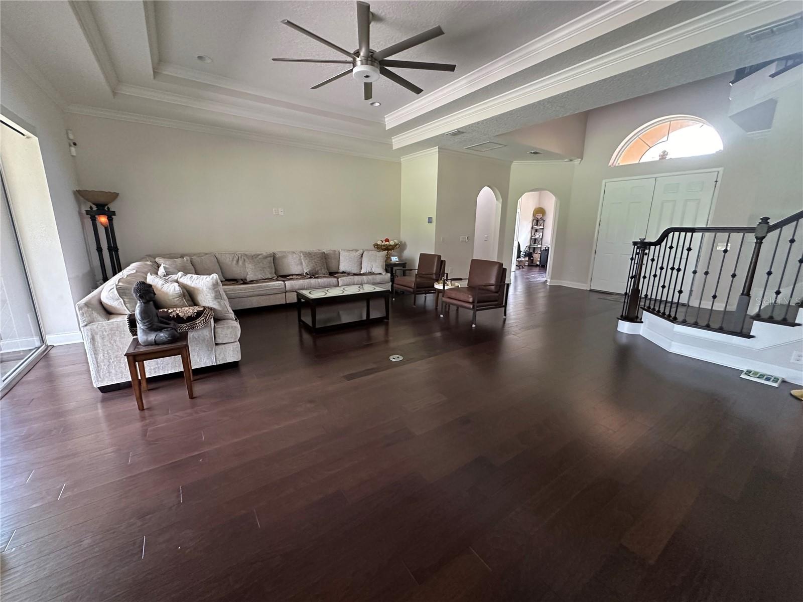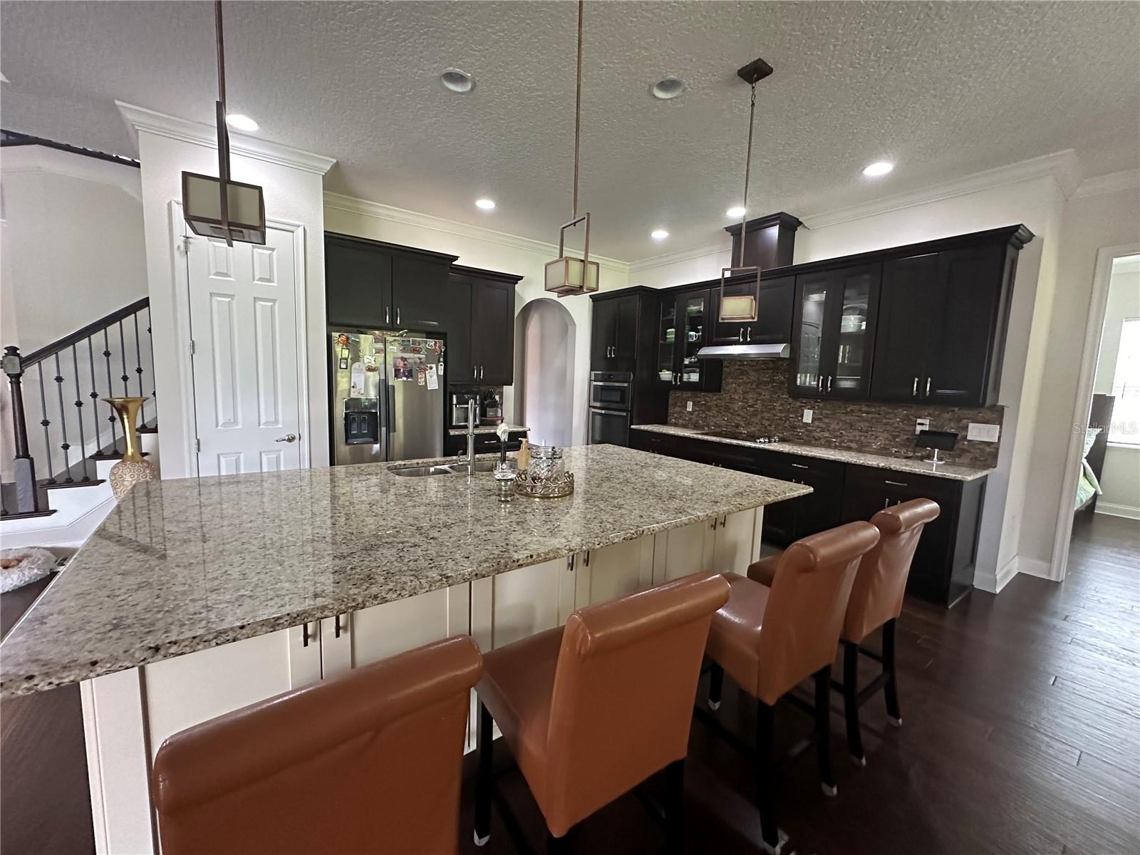 IMACULADO, COMO NOVO! Bem-vindo à elegante e bela casa construída pela Toll Brothers, localizada no desejável condomínio fechado de Fontana Estates. Esta casa de 2 andares bem projetada consiste em 4 quartos grandes, 4,5 banheiros, garagem para 3 carros, escritório, um loft espaçoso E sala bônus, todos com excelentes atualizações de design, ocupando um terreno de quase um acre. Ao entrar nesta casa aberta e espaçosa, o grande hall de entrada recebe você com abundância de luz natural, com vista para a ampla sala com belos pisos de madeira, teto duplo em caixotões e portas triplas de vidro deslizantes que fornecem acesso direto à varanda estendida de pavimentação de tijolos. , que é perfeito para relaxar e se divertir. Ao lado da grande sala fica a grande cozinha gourmet, rica em recursos, incluindo armários de cozinha em dois tons com bancada de granito, eletrodomésticos de aço inoxidável, forno duplo, uma ilha central de 2,7 metros de comprimento e uma espaçosa área de café da manhã adjacente. com vista para o amplo quintal com árvores de fruto e que lhe dá espaço para criar o seu próprio paraíso! Um hall comunicante da cozinha dá acesso a uma sala de jantar formal. Perto está a lavanderia interna com lavadora/secadora e banheira, uma suíte de hóspedes com closet para ele e ela e banheiro privativo, e voltando pela área de café da manhã há um quarto de hóspedes escondido, banheiro e porta de acesso à varanda. é ideal para viver em quartos divididos. Também localizada no primeiro andar está a impressionante suíte principal com closets duplos e um luxuoso banheiro privativo com pias duplas, banheira de hidromassagem e box de canto de vidro sem moldura, tornando-a uma área de retiro ideal. Perto de um escritório/escritório privado com entrada francesa e banheiro com pó. Seguindo para o piso secundário, a impecável escada em ferro com degraus em madeira tingida leva-o ao loft aberto com um quarto vizinho com casa de banho completa. Acompanhado por uma vasta sala de mídia com pré-instalação de teatro para suas necessidades de entretenimento. Esta casa possui rodapés de 5-1/4" e sancas, juntamente com tetos de 12' de altura, portas internas de 8' e iluminação enlatada adicional, tornando-a uma casa muito bem iluminada, dando-lhe os toques bem vestidos desta linda casa. Aprecie o sossego e a privacidade, mas aproveite o fácil acesso às vias expressas 408 e 417 para áreas centrais de Orlando. UCF, Valencia College, Waterford Lakes Town Center, restaurantes requintados e consultórios médicos ficam a poucos minutos de distância, com fácil acesso às praias da costa leste, NASA e Cabo Canaveral, entre outros! Esta fantástica casa de luxo mal habitada está esperando você ligar para casa, então não perca tempo para ver do que se trata!!!