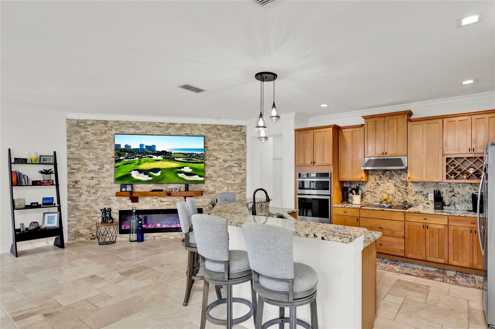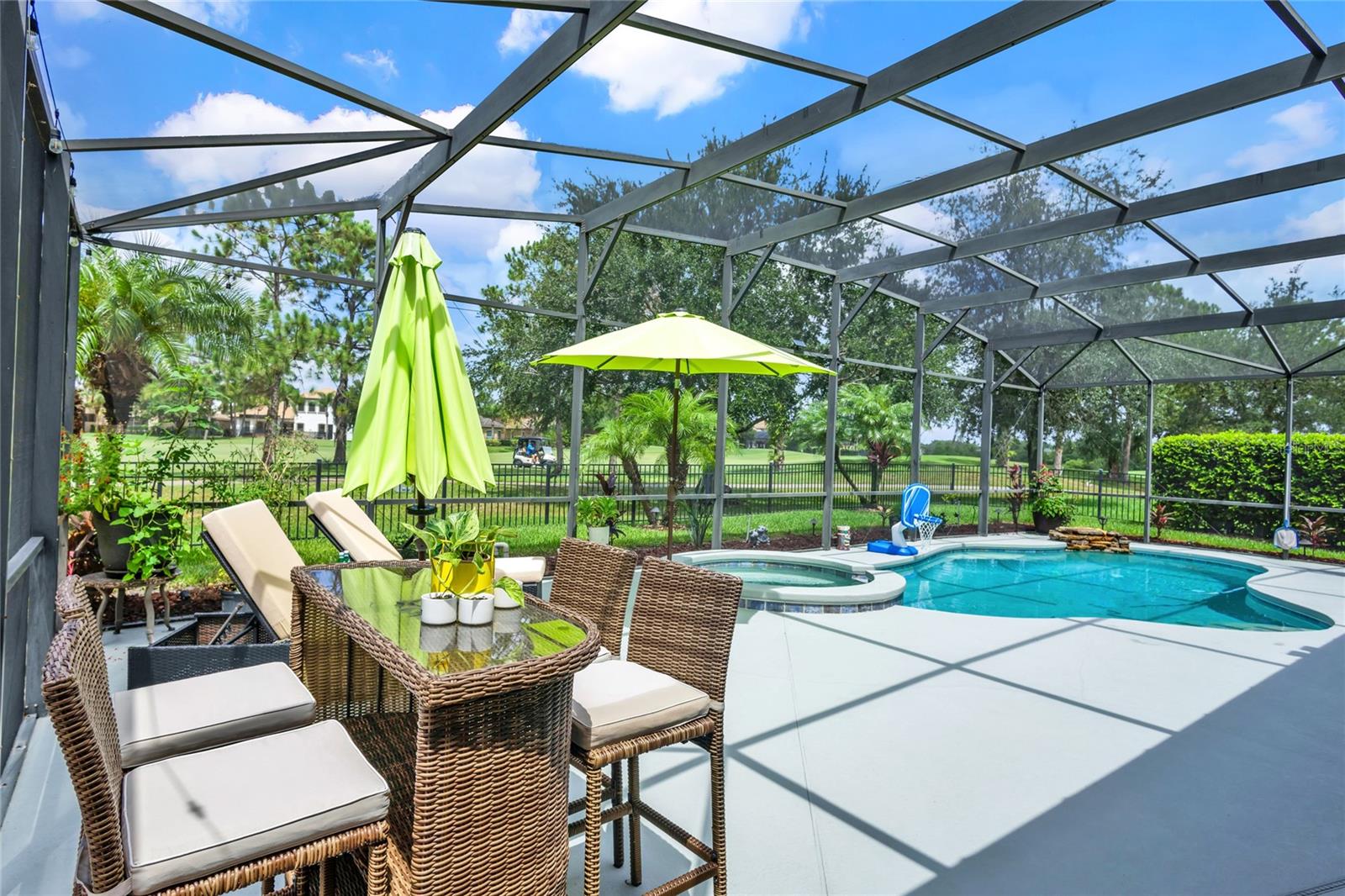 Bem-vindo a Eagle Creek, uma das comunidades de golfe mais imaculadas de Lake Nona. Campo de golfe de renome mundial Os arquitetos Ron Garl e Howard Swan projetaram o Eagle Creek Golf Club Orlando. Este campo de campeonato de inspiração escocesa oferece 18 buracos e recebe golfistas de todos os níveis. Situada nos exuberantes jardins paisagísticos dos portões guardados de Eagle Creek, esta casa lindamente decorada de três quartos e dois banheiros exala um apelo sofisticado, com seu gramado meticulosamente cuidado. Uma vez lá dentro, o ambiente acolhedor e convidativo do conceito de design aberto envolve você. A sala familiar onde o conforto e a união se unem apresenta uma bela lareira de pedra com vários tons de elementos naturais. Moldura de coroa e travertino cinzelado Trav deslizam elegantemente para criar uma morada coesa e harmoniosa. A cozinha bem projetada exibe armários modernos e elegantes com bancadas e backsplash de granito requintados, uma grande ilha de café da manhã, uma parede de forno integrada com fogão e eletrodomésticos de aço inoxidável, refletindo uma aparência funcional e estética. Retire-se para a espaçosa suíte principal com conforto e relaxamento. O banheiro privativo principal oferece um refúgio tranquilo onde as rotinas diárias se tornam elevadas com uma pia dupla, um box amplo espaçoso e um guarda-roupa personalizado. Adjacente à suíte principal está uma sala flexível que pode ser exclusivamente adequada como escritório, sala de mídia ou berçário. Além disso, os dois quartos secundários e o banheiro são de tamanho generoso e oferecem um santuário isolado para familiares ou hóspedes. Além das portas francesas, há um oásis ao ar livre que apresenta uma nova piscina de água salgada e spa Hayward WIFI aprimorados. Desfrute de noites deliciosas com vistas deslumbrantes do pôr do sol sobre o campo de golfe. Esta é a quintessência da vida na Flórida! Eagle Creek oferece uma mistura incomparável de elegância e comodidades que incluem quadras de tênis, quadra de basquete, duas piscinas, splash pad, parque para animais de estimação, clube, academia e trilhas para bicicletas. Com localização central e a poucos minutos de restaurantes requintados, entretenimento e boutiques. Venha experimentar tudo o que o estilo de vida de Lake Nona tem a oferecer. Agende sua exibição privada hoje mesmo!!