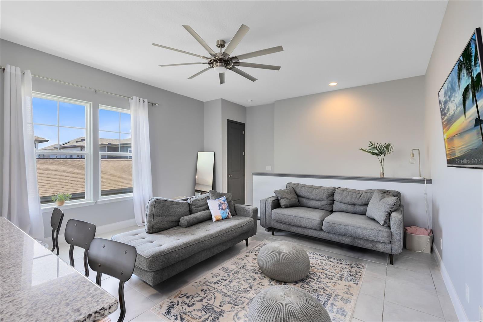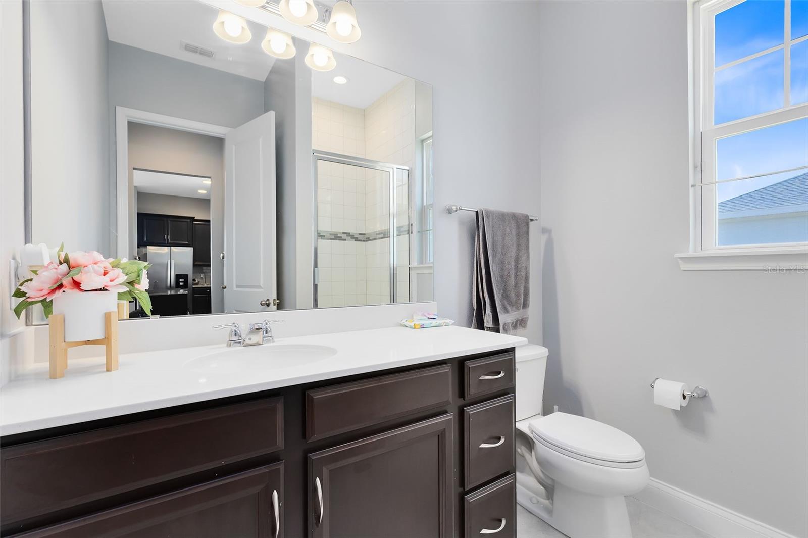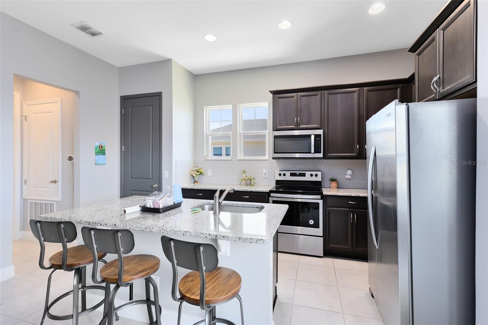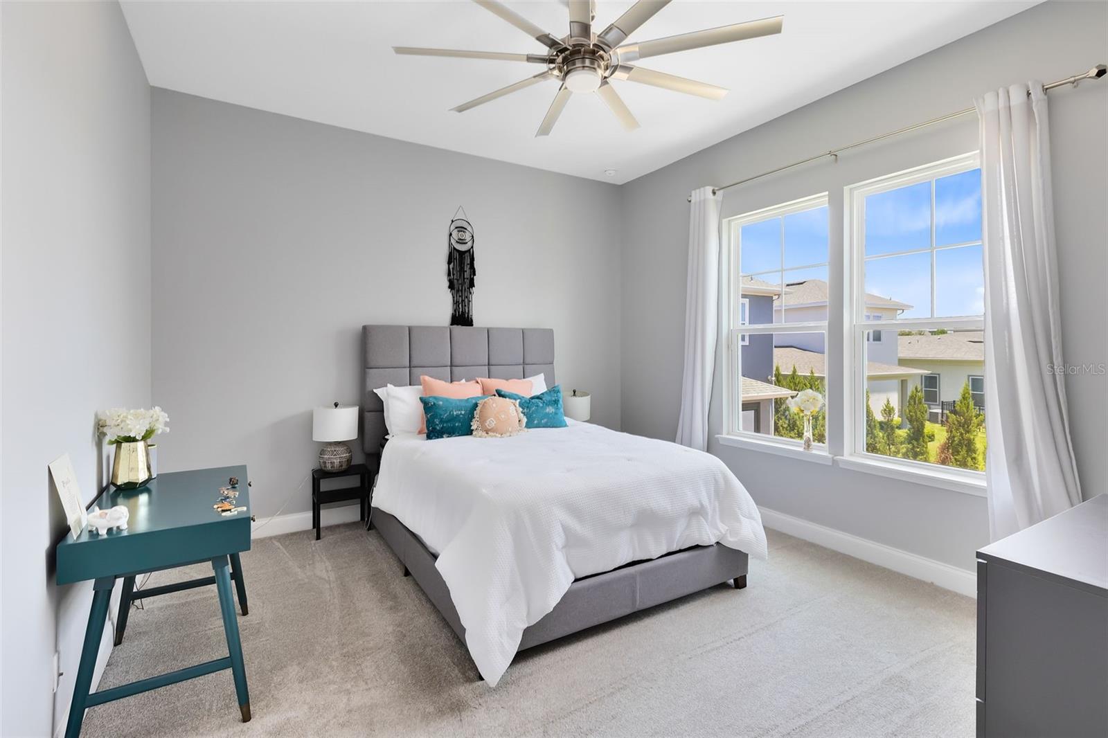 Bem-vindo a esta deslumbrante casa em estilo artesão no coração do muito procurado Laureate Park de Orlando. Construída pela Dream Finders Homes, esta elegante residência apresenta a planta baixa de Mableton, completa com um charmoso apartamento de garagem, tornando-a ideal para família extensa ou potencial renda de aluguel. Esta casa de 5 quartos e 4 banheiros oferece 3.069 pés quadrados de área útil. Entre em uma convidativa planta aberta, onde a luz natural entra através de grandes janelas, destacando o belo piso de cerâmica que abrange todo o primeiro andar. As áreas de estar e de jantar oferecem amplo espaço para entretenimento e fluem perfeitamente para a cozinha do chef. Equipada com eletrodomésticos de aço inoxidável, armários marrons escuros, backsplash de azulejos e uma grande ilha com assentos, esta cozinha é perfeita tanto para a vida cotidiana quanto para reuniões. O primeiro andar também inclui uma conveniente lavanderia e um escritório privativo, facilitando o equilíbrio entre trabalho e vida doméstica. No andar de cima, descubra três quartos espaçosos e dois banheiros completos, incluindo a luxuosa suíte principal. O quarto principal possui um closet com embutidos e um impressionante banheiro tipo spa com pias duplas, box amplo com chuveiro com efeito de chuva e um armário de toalete privativo. O apartamento garagem individual oferece um retiro privado com um quarto, um banheiro, uma cozinha completa e uma sala de estar - perfeito para hóspedes ou como potencial fonte de renda. Do lado de fora, aproveite o clima da Flórida na varanda e no pátio pavimentado, ideal para churrascos e encontros casuais. Além disso, esta casa está equipada com painéis solares, proporcionando eficiência energética e poupança de custos. Laureate Park é uma comunidade vibrante que oferece piscinas em estilo resort, academia, quadras de tênis, playgrounds, restaurantes e quilômetros de trilhas para caminhada e ciclismo. Convenientemente localizada perto das instalações médicas de Lake Nona, das melhores escolas e do Aeroporto Internacional de Orlando, esta casa oferece a combinação perfeita de conforto, luxo e conveniência. Não perca a oportunidade de personalizar esta casa requintada. Contate-nos hoje para agendar uma exibição privada.