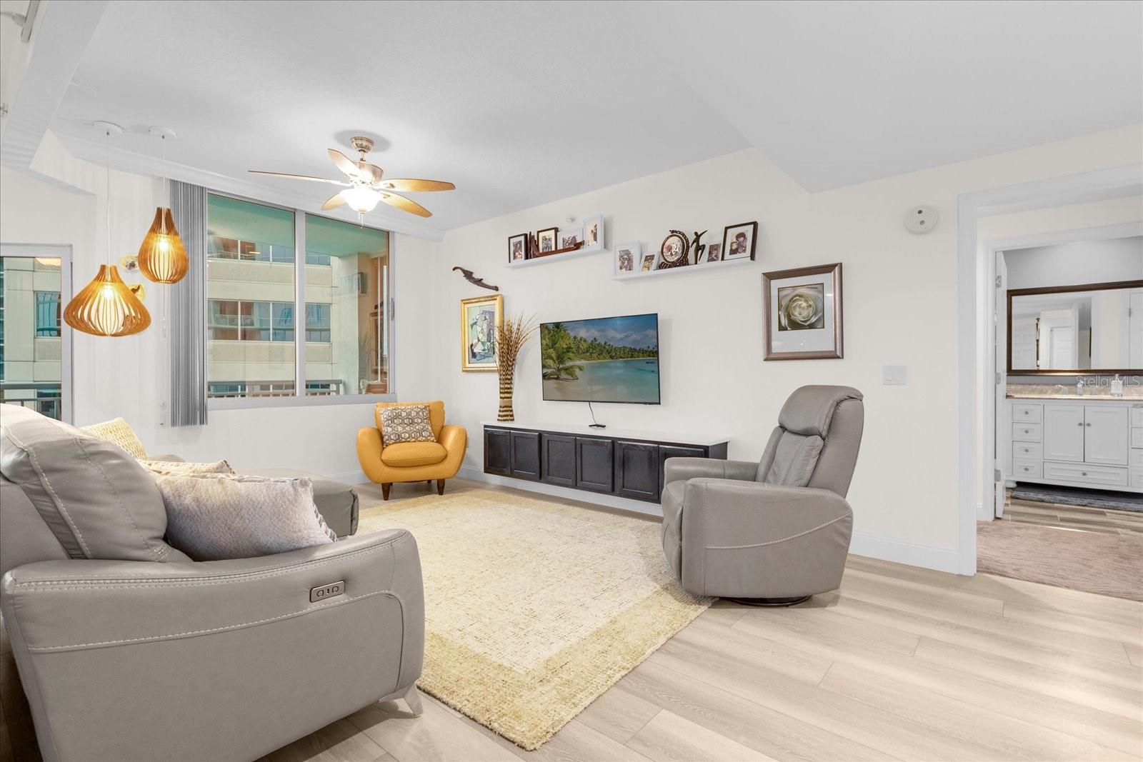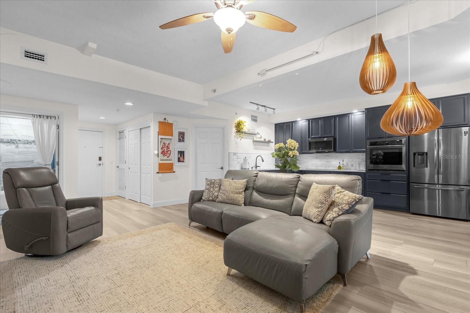 Unidade vem com 1 vaga de garagem no térreo. UMA SEGUNDA VAGA DE ESTACIONAMENTO, também convenientemente localizada no térreo, está à venda pelo Vendedor. Absolutamente IMPRESSIONANTE condomínio de 2 quartos e 2 banheiros com uma PLANTA ABERTA única no Waverly on Lake Eola, um condomínio de alto padrão muito procurado no coração do centro de Orlando, a poucos passos do belo lago Éola! O Waverly oferece uma residência contemporânea de 23 andares com arquitetura distinta e comodidades de última geração. Os residentes desfrutam de uma piscina comunitária em estilo resort com banheira de hidromassagem/spa e churrasqueiras, academia de ginástica e sala de musculação, espaço para reuniões privativo e sala de clube com cozinha de bufê. O prédio oferece serviços que incluem portaria 24 horas e segurança com equipe, acesso fechado, estacionamento exclusivo para residentes, sala de correspondência para recebimento de pacotes, estacionamento para bicicletas, depósito no local, business center e biblioteca para residentes. Esta unidade elegante e meticulosamente projetada foi recentemente reconfigurada a partir do layout original e transformada em um OPEN LAYOUT mais funcional e espaçoso, com uma vibração urbana contemporânea. A planta aberta conecta perfeitamente as áreas de cozinha, jantar e estar com o espaço ao ar livre. A GRANDE cozinha possui mais de 26 pés de armários, bancadas de quartzo, armários personalizados com todos os eletrodomésticos inteligentes de aço inoxidável correspondentes, muito espaço de armazenamento e balcão, e até mesmo uma estação de café. A sala de estar é acentuada com iluminação moderna e um console de mídia flutuante embutido que combina com a cozinha armários. A janela enorme na sala de estar, a porta de vidro para a varanda e as dramáticas janelas do chão ao teto na área de jantar e no quarto principal trazem luz natural abundante e vistas espetaculares da cidade, com vistas parciais do Lago Eola e Band Shell. O quarto principal apresenta um grande closet com prateleiras personalizadas e um banheiro lindamente projetado com porcelanato italiano. O segundo quarto, cuidadosamente concebido como um espaço interior, é o ambiente tranquilo perfeito para qualquer membro da família. O armário da lavanderia com lavadora e secadora embutida em aço inoxidável está convenientemente localizado, mas escondido. Aproveite o seu café da manhã, com uma vista fabulosa para a piscina, bem como um pouco do Lago Eola, na sua varanda privada. Com uma localização imbatível, em meio a um ambiente vibrante, eventos culturais e a poucos passos do Lago Eola, Publix e de inúmeras lojas, restaurantes e entretenimento. A poucos passos do Kia Center (sede do NBA Orlando Magic) e do Dr. Phillips Center for the Performing Arts, com shows e concertos. Este condomínio oferece comodidade com luxo e é o lugar perfeito para equilibrar seu estilo de vida seja profissional ou social! Um lugar onde você vai gostar de estar ou sair o dia todo!