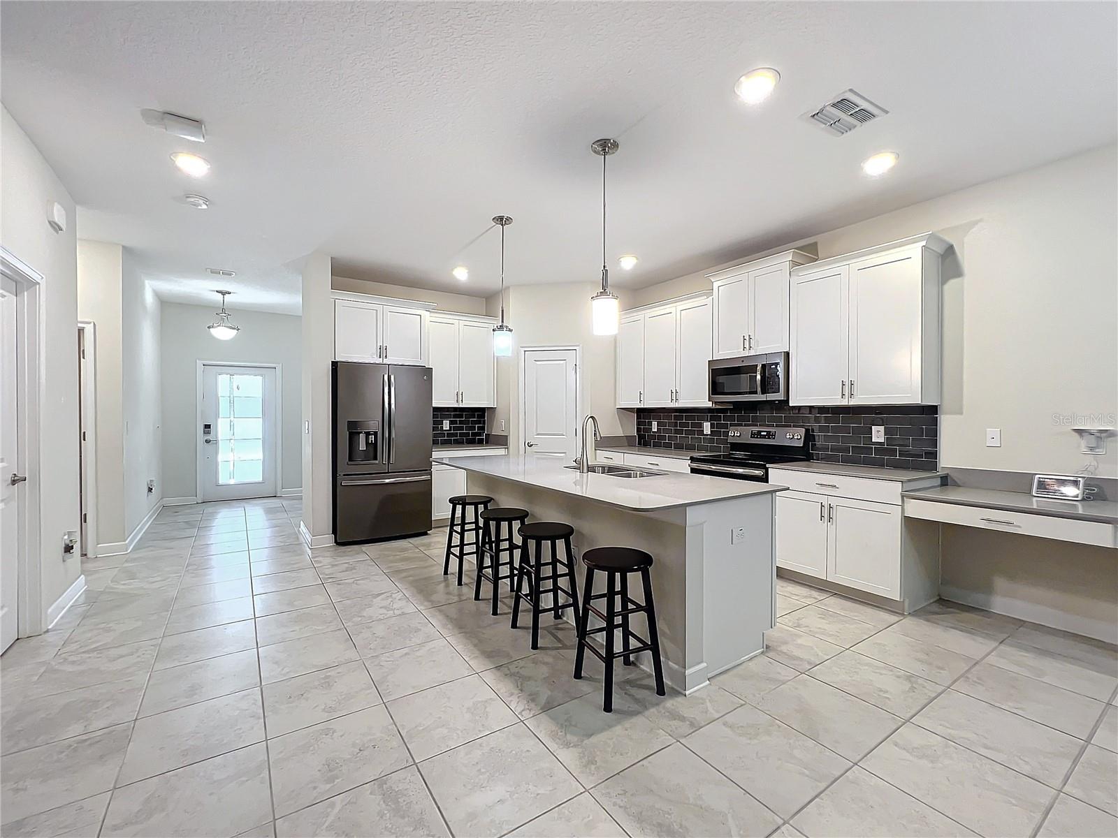 Bem-vindo a esta deslumbrante casa de dois andares com 5 quartos e 3 banheiros, situada na cobiçada comunidade de Storey Park, em Orlando, FL. Esta bela residência oferece uma combinação ideal de conforto, estilo e comodidades modernas. Ao entrar, você é recebido por uma planta convidativa e espaçosa que conecta perfeitamente a sala de jantar e a sala de estar formal. A cozinha é o sonho de um chef, com elegantes bancadas de granito, uma ilha ampla, um armário conveniente e todos os eletrodomésticos de aço inoxidável, perfeitos para entusiastas da culinária e também para entretenimento. A suíte principal, três quartos de hóspedes e um banheiro de hóspedes bem equipado estão localizados no andar de cima, junto com a lavanderia, proporcionando privacidade e conforto. No andar de baixo, um quarto quarto de hóspedes e outro banheiro de hóspedes oferecem flexibilidade e conveniência para visitantes ou para a vida de gerações. Para relaxamento e reuniões ao ar livre, a casa possui um pátio protegido nos fundos e uma charmosa varanda na frente, permitindo que você aproveite o lindo clima da Flórida o ano todo. Aproveite a economia com esta casa movida a energia solar! A garagem para 2 carros está posicionada na parte traseira da casa, garantindo funcionalidade e apelo ao meio-fio. Morar no Storey Park oferece mais do que apenas uma bela propriedade – é um estilo de vida. Os residentes têm acesso a um clube com academia, piscina e spa comunitários brilhantes, parque para cães, playgrounds e segurança aprimorada, proporcionando uma atmosfera comunitária vibrante com amplas oportunidades recreativas para todas as idades. Não perca a chance de possuir esta propriedade excepcional em uma das principais comunidades de Orlando.