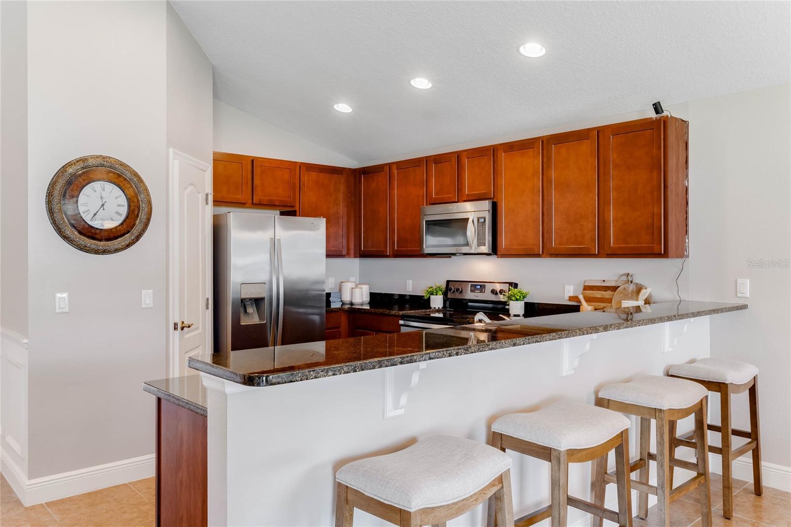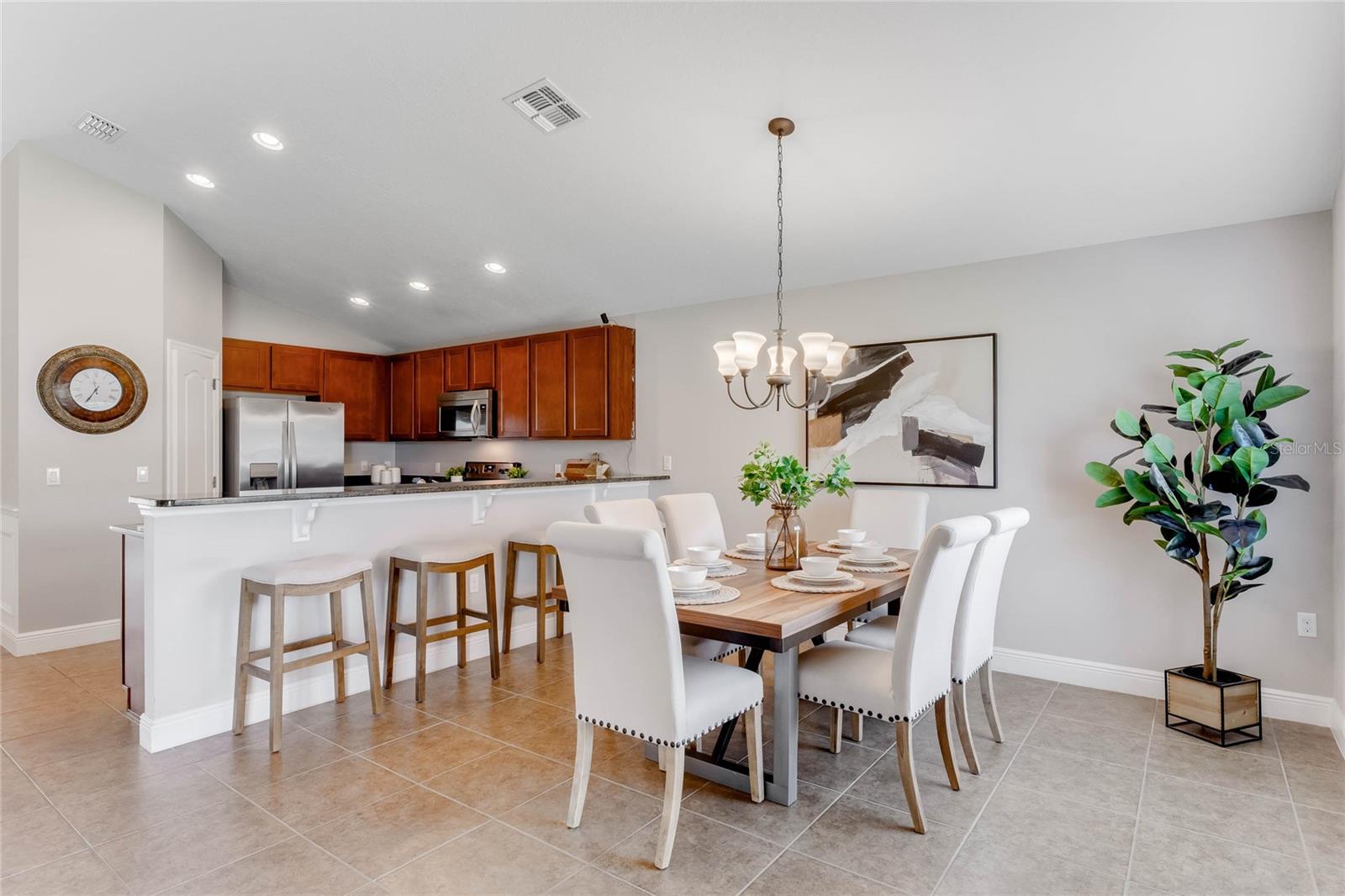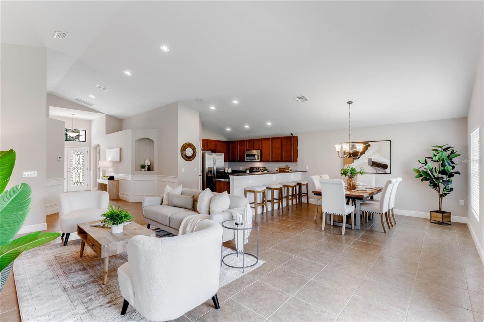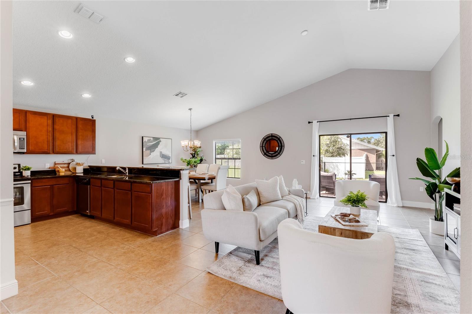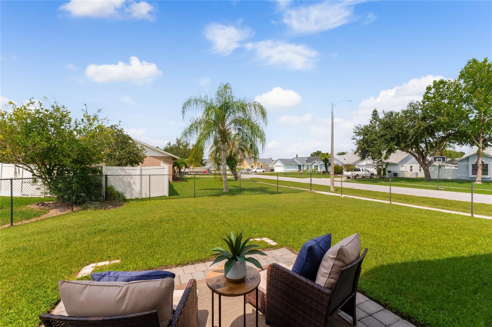 Casa pronta para morar com 4 quartos e 2 banheiros localizada em um terreno de esquina totalmente cercado com um aconchegante pátio nos fundos, perfeito para seu café da manhã. Você é recebido no interior a partir da entrada pavimentada e do pátio frontal, em um hall de entrada com tetos abobadados e uma planta baixa de conceito aberto leve e brilhante. A cozinha possui armários de madeira maciça de 42", bancadas de granito, eletrodomésticos de aço inoxidável e uma grande bancada para café da manhã que se abre para a sala de jantar e sala de estar, tornando esta casa perfeita para entretenimento. O espaçoso quarto principal tem banheiro privativo com pias duplas. , uma banheira de jardim com chuveiro separado e um closet grande. Há um quarto adjacente ao quarto principal que seria perfeito para um berçário ou um escritório doméstico. O 3º e 4º quartos secundários são de tamanho generoso e compartilham um banheiro completo. no lado oposto da casa. Saia pelas portas deslizantes de vidro da sala de estar e você vai adorar o quintal totalmente cercado com um pátio pavimentado, perfeito para seus churrascos de fim de semana. Esta casa tem pintura externa nova e foi meticulosamente mantida. Localizado a uma curta caminhada desta casa, você pode desfrutar do Wedgefield Golf Club de 18 buracos e do restaurante, comodidades recreativas, incluindo um parque com playground, quadras de basquete, vôlei e pickleball e um parque para cães, além de food trucks todas as terças-feiras à noite. Há também um HOA OPCIONAL e você está dividido em zonas para escolas de primeira linha. Localizado perto de lojas e restaurantes, com acesso conveniente à UCF, e até mesmo a Cocoa Beach e Cabo Canaveral também! Você não vai querer perder esta casa especial!