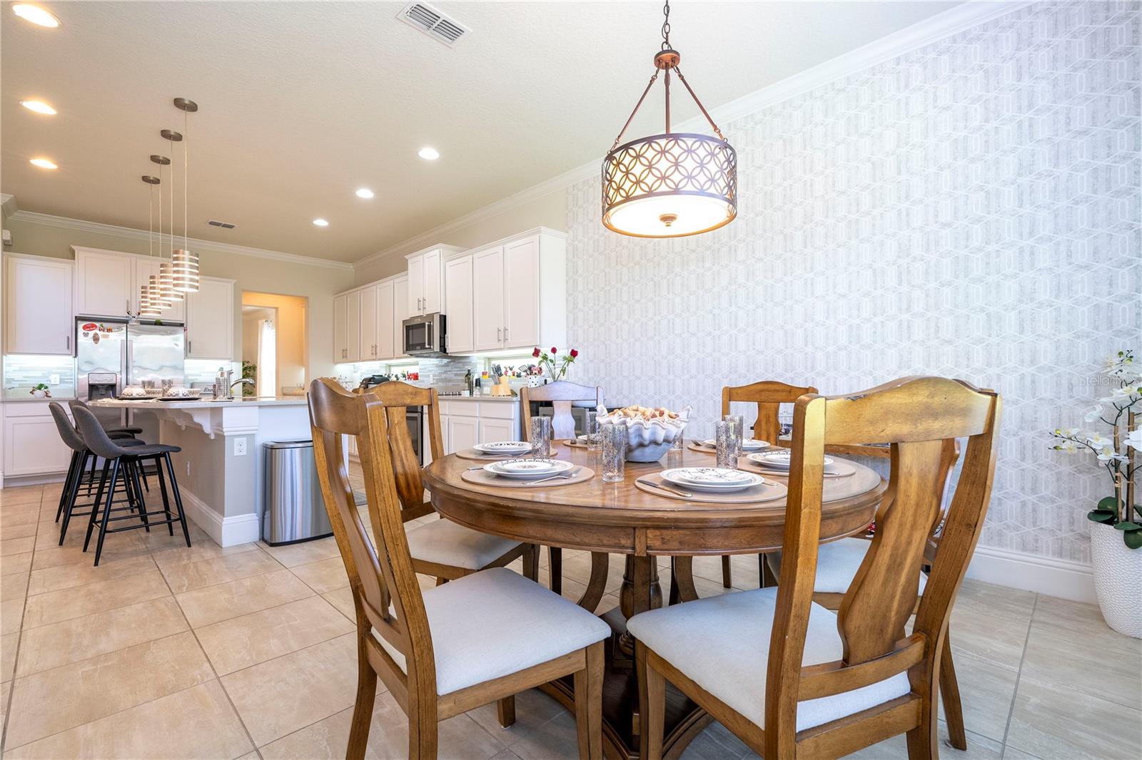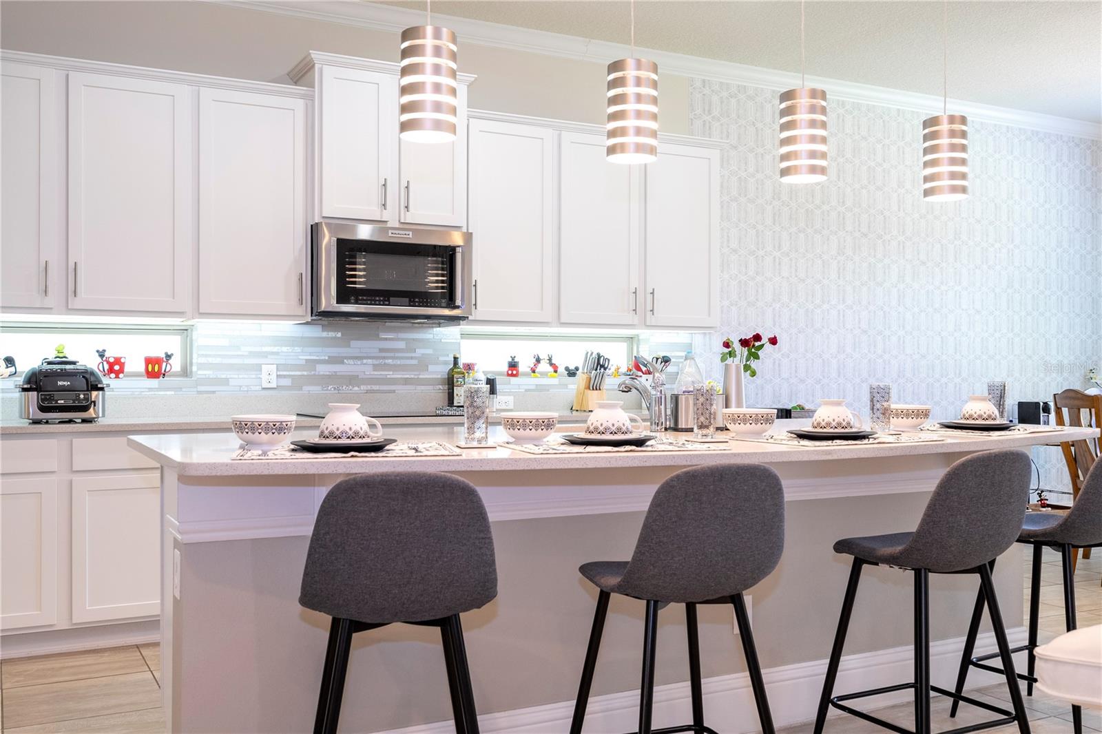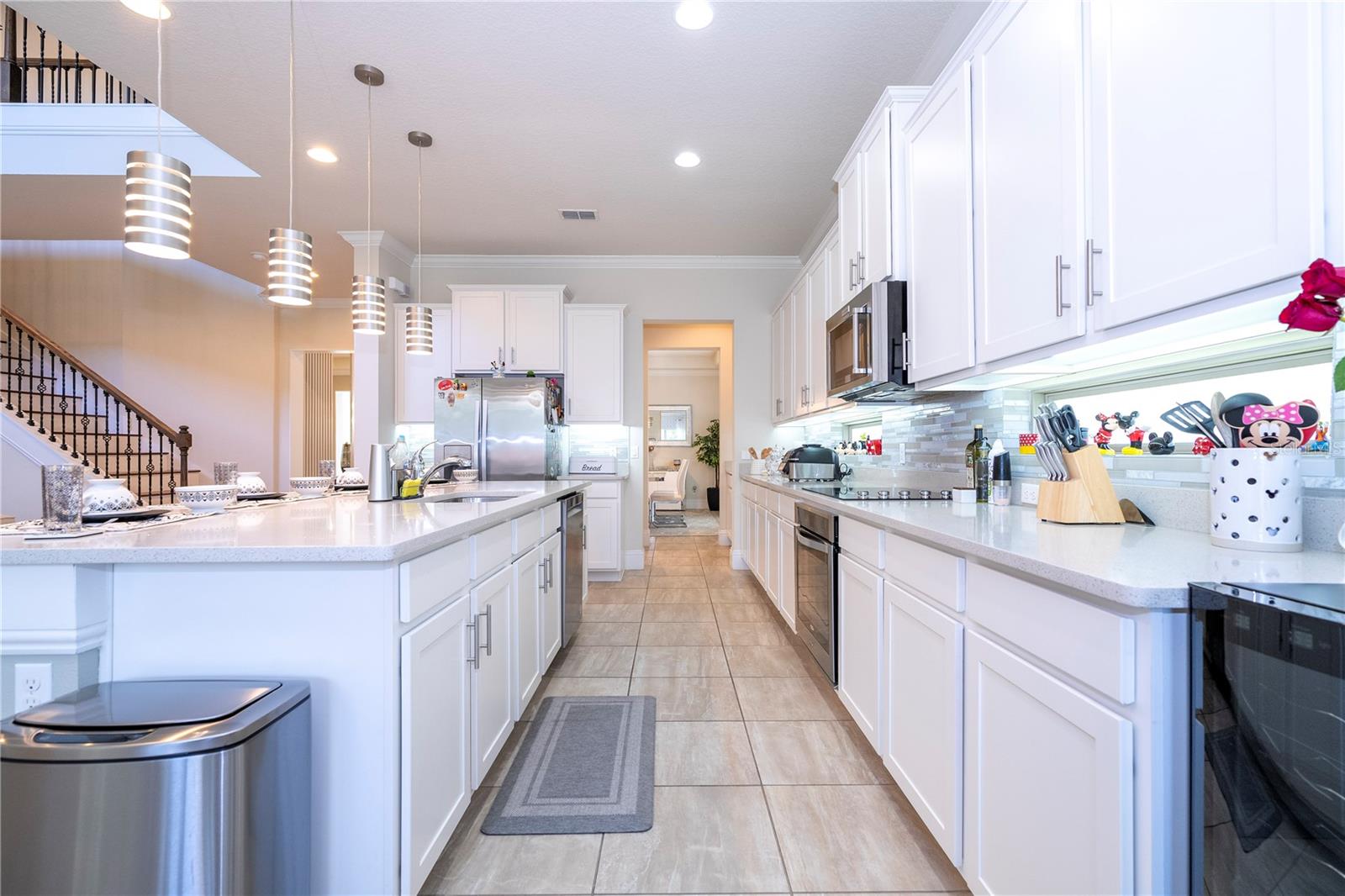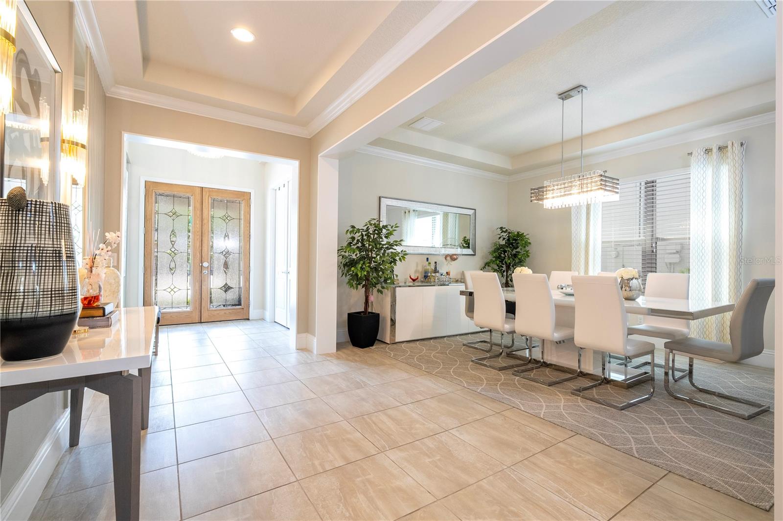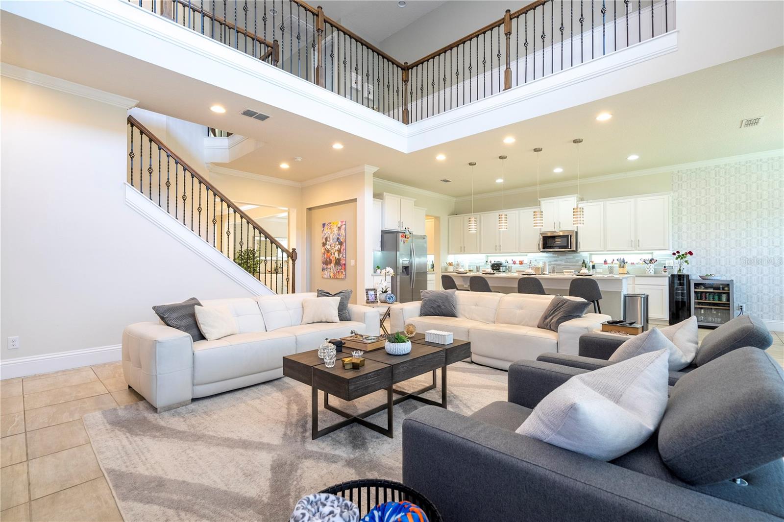 Bem-vindo ao 9520 Royal Estates Blvd, localizado na muito procurada área de Windermere/Winter Garden/Horizon West. Aninhada na desejável comunidade Royal Legacy Estates, composta por apenas 169 casas unifamiliares exclusivas, esta propriedade oferece uma localização única, tão perto da Disney que você pode ouvir o apito icônico da ferrovia Magic Kingdom e até mesmo desfrutar de vistas noturnas do espetacular Magic Kingdom. Fogos de artifício do Reino. Este modelo Kendelwood meticulosamente mantido e pronto para morar (o maior modelo da comunidade) - com 5 quartos, um escritório e 4 banheiros completos - fica em um terreno nobre perto da nova escola primária CastleView e da piscina comunitária. A grande sala de dois andares, inundada de luz natural, abre através de portas de correr para uma varanda estendida e atualizada e um quintal espaçoso. Projetada com uma planta aberta, o coração desta casa é a cozinha completa, eletrodomésticos de aço inoxidável atualizados, bancadas atualizadas (Tundra Ice) e uma grande despensa. Perfeito tanto para o chef quanto para o artista, este espaço flui para uma área de estar com tetos altos e uma impressionante lareira de pedra, completa com uma TV de 85". Os hóspedes são recebidos por uma suíte multigeracional no primeiro andar, convenientemente localizada perto da entrada principal, oferecendo privacidade e conforto. Aqueles que trabalham em casa apreciarão os espaços flexíveis, incluindo uma sala bônus, área para refeições e banheiro lanai completo. O layout oferece amplo espaço para equilibrar trabalho e relaxamento. Uma escadaria de madeira personalizada leva ao luxuoso retiro master, com uma área flexível privativa, um banheiro tipo spa e dois closets espaçosos. O segundo andar também oferece uma suíte Jack and Jill de dois quartos e outro quarto com banheiro privativo, cada quarto com seu próprio closet. Uma lavanderia convenientemente localizada garante que as tarefas domésticas sejam realizadas sem esforço. Os destaques adicionais incluem um generoso espaço de armazenamento, uma garagem para 3½ carros e duas unidades de AC instaladas recentemente (julho de 2020) que oferecem conforto e eficiência ideais. Uma conexão direta do gerador proporciona tranquilidade. Esta casa também apresenta inúmeras atualizações, incluindo armários personalizados, piso de madeira no segundo andar, iluminação aprimorada e elegantes detalhes em madeira. Com taxas HOA baixas, Royal Legacy Estates oferece vida em estilo resort, completa com piscina comunitária, calçadas arborizadas e trilhas panorâmicas perfeitas para exercícios, passeios com animais de estimação ou desfrutar da natureza. A nova Castleview Elementary School e o Taborfield Neighborhood Park ficam a poucos passos, com CastleView tão perto que você pode facilmente observar seu filho entrando e saindo da escola pela sua própria varanda. A localização também oferece acesso conveniente a restaurantes, lojas, escolas altamente conceituadas, I-4, SR 429, praias da costa leste e oeste e atrações de renome mundial da Flórida Central - tornando esta a oportunidade perfeita para viver o sonho da Flórida.