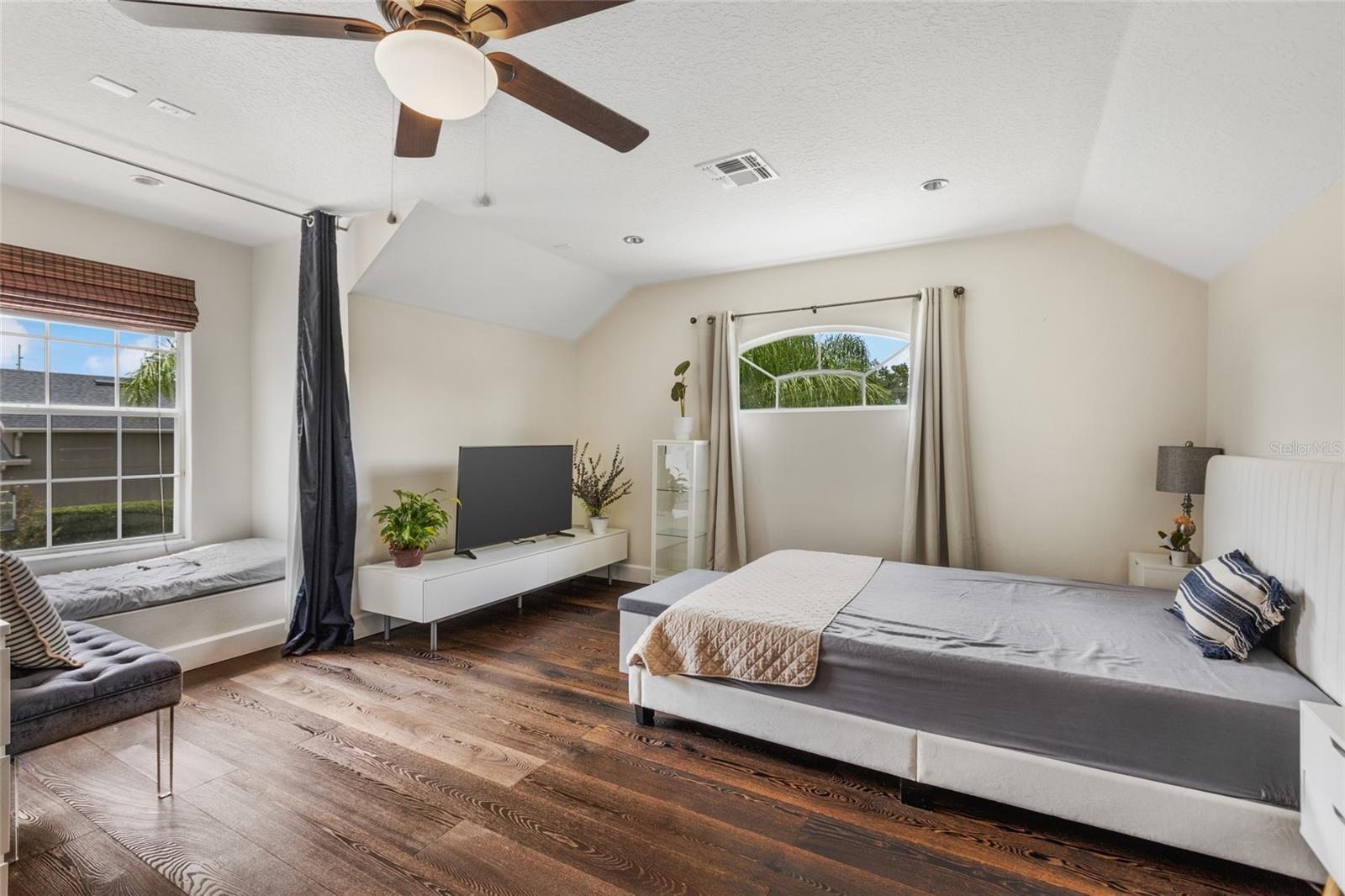 Bem-vindo a esta deslumbrante casa em um espaçoso meio acre no exclusivo Estates at Rivers Edge, no leste de Orlando. Esta bela residência de 4 quartos e 3 banheiros oferece 3.312 pés quadrados de área útil, incluindo um escritório e uma versátil sala bônus no segundo andar que pode servir como um quinto quarto. Entre através de grandes portas de vidro de 2,5 metros em uma casa com tetos altos de 3,6 metros e luz natural abundante. As salas de estar e de jantar formais preparam o cenário para reuniões elegantes, enquanto a sala familiar, a cozinha e a copa de conceito aberto oferecem um espaço descontraído para a vida cotidiana. A cozinha está equipada com eletrodomésticos de aço inoxidável Bosch, forno de convecção embutido e micro-ondas. A luxuosa suíte master é um retiro privado, com closet duplo, banheiro tipo spa com piso aquecido de cerâmica italiana e acesso direto à varanda. A ala de hóspedes inclui dois quartos adicionais e um banheiro, com fácil acesso à garagem para três carros e lavanderia. Esta casa meticulosamente mantida apresenta atualizações recentes, incluindo duas unidades de ar condicionado (2018), um novo telhado (2021) e pintura externa fresca (2018). O amplo quintal oferece muito espaço para uma piscina, e a propriedade está convenientemente localizada a poucos minutos da UCF, lojas, principais rodovias e muito mais. Não perca a chance de possuir esta propriedade excepcional – agende um tour privado hoje mesmo!