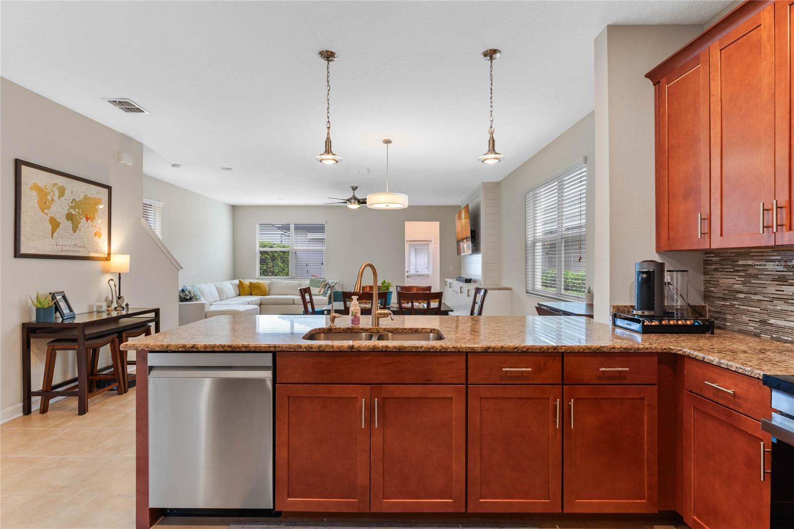Bem-vindo ao 11837 Ginsberg Place localizado no condomínio fechado de Storey Park em Lake Nona! Esta encantadora casa de 3 quartos e 2,5 banheiros oferece uma combinação perfeita de design moderno e conforto, tudo embrulhado em 2.229 pés quadrados de área útil. Entre e seja recebido por uma área de estar de conceito aberto, perfeita para entreter ou simplesmente relaxar. A espaçosa cozinha possui bancadas elegantes, eletrodomésticos de aço inoxidável e muito espaço nos armários, tornando-a o sonho de um chef. As áreas adjacentes de jantar e de estar fluem perfeitamente, criando um espaço versátil para qualquer ocasião. Precisa de um escritório em casa ou de um recanto de leitura aconchegante? O andar de baixo possui uma sala bônus pronta para atender às suas necessidades. Suba as escadas para encontrar a suíte principal, completa com um luxuoso banheiro privativo com pias duplas, banheira de imersão e chuveiro separado. Dois quartos adicionais compartilham um banheiro completo bem equipado, garantindo muito espaço para todos. A lavanderia está convenientemente localizada no segundo andar. Do lado de fora, aproveite seu quintal privado – ideal para churrascos, jardinagem ou simplesmente aproveitar o sol da Flórida. A garagem anexa para dois carros oferece estacionamento conveniente e espaço de armazenamento extra. O exterior da casa possui pintura fresca (24 de setembro) e um telhado totalmente novo (24 de setembro). Muitos recursos de eficiência energética, como aquecedor de água híbrido e painéis solares, estão incluídos. Piscina do resort comunitário, piscina olímpica, splash pads, academia, quadras de tênis, trilhas para caminhada, parque para cães e muito mais!! A uma curta distância de carro do Aeroporto Internacional de Orlando (OIA), Nemours Hospital, VA Hospital, Drive Shack, United States Tennis Association (USTA), Lake Nona Adventure Park (parque aquático), UCF College of Medicine, restaurantes, supermercados e do centro da cidade de Lake Nona com muito entretenimento para a família. Agende hoje mesmo seu tour pelo 11837 Ginsberg Place!