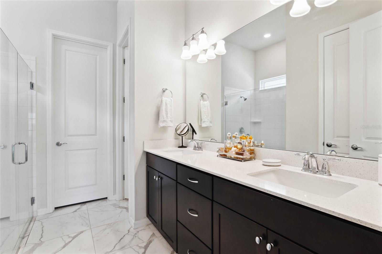Casa recém-construída em frente à lagoa no condomínio fechado das Ilhas do Lago Nona Descubra uma vida excepcional nesta casa imaculada de 4 quartos e 3,5 banheiros construída em 2021, localizada na desejável comunidade de Lake Nona. No interior, você é recebido por uma planta aberta acentuada por porcelanato branco com veios cinza, criando um fluxo elegante e coeso em todas as principais áreas de estar. A sala de estar está repleta de luz natural, graças à porta de correr de 4 painéis com arrumação, que liga perfeitamente o espaço interior ao pátio coberto. Aqui, você pode desfrutar da vista do lago enquanto relaxa no spa personalizado de água salgada infinita ou organiza reuniões ao ar livre em seu quintal cercado. A cozinha possui bancadas de quartzo branco, armários de café expresso de 42 polegadas com sancas, fogão a gás, forno embutido e geladeira inteligente Samsung. A espaçosa ilha com assentos é perfeita para jantares casuais ou receber convidados. Relaxe em sua suíte principal, que oferece acesso direto ao pátio, detalhes no teto, persianas personalizadas e um amplo closet. O banheiro privativo foi projetado com luz natural, chuveiro independente, pia estendida com tampo de quartzo e armário de linho, combinando luxo e praticidade. A casa também inclui três quartos adicionais, uma sala flexível com armário, uma área de armazenamento conveniente perto da lavanderia, muitos armários de armazenamento, pré-cabeamento para tecnologia de casa inteligente, garagem anexa para 2 carros e calçada de tijolos. Possui gás natural e está equipado com rede de fibra, proporcionando velocidades de internet de até gigabit para conectividade de alta velocidade. Localizado dentro do condomínio fechado de Isles of Lake Nona, oferece comodidades em estilo resort, incluindo uma grande piscina e cabana, clube, playground, quadras de basquete e tênis, splash pad, academia e fogueira. Aproveite a conveniência de viver a menos de 6,4 km de Medical City, Lake Nona Town Center e atrações populares como Nona Adventure Park, Drive Shack e Boxi Park, com fácil acesso às principais estradas e ao Aeroporto Internacional de Orlando. Não perca a oportunidade de possuir esta casa deslumbrante em um dos condomínios mais procurados de Orlando. Agende sua exibição privada hoje mesmo!