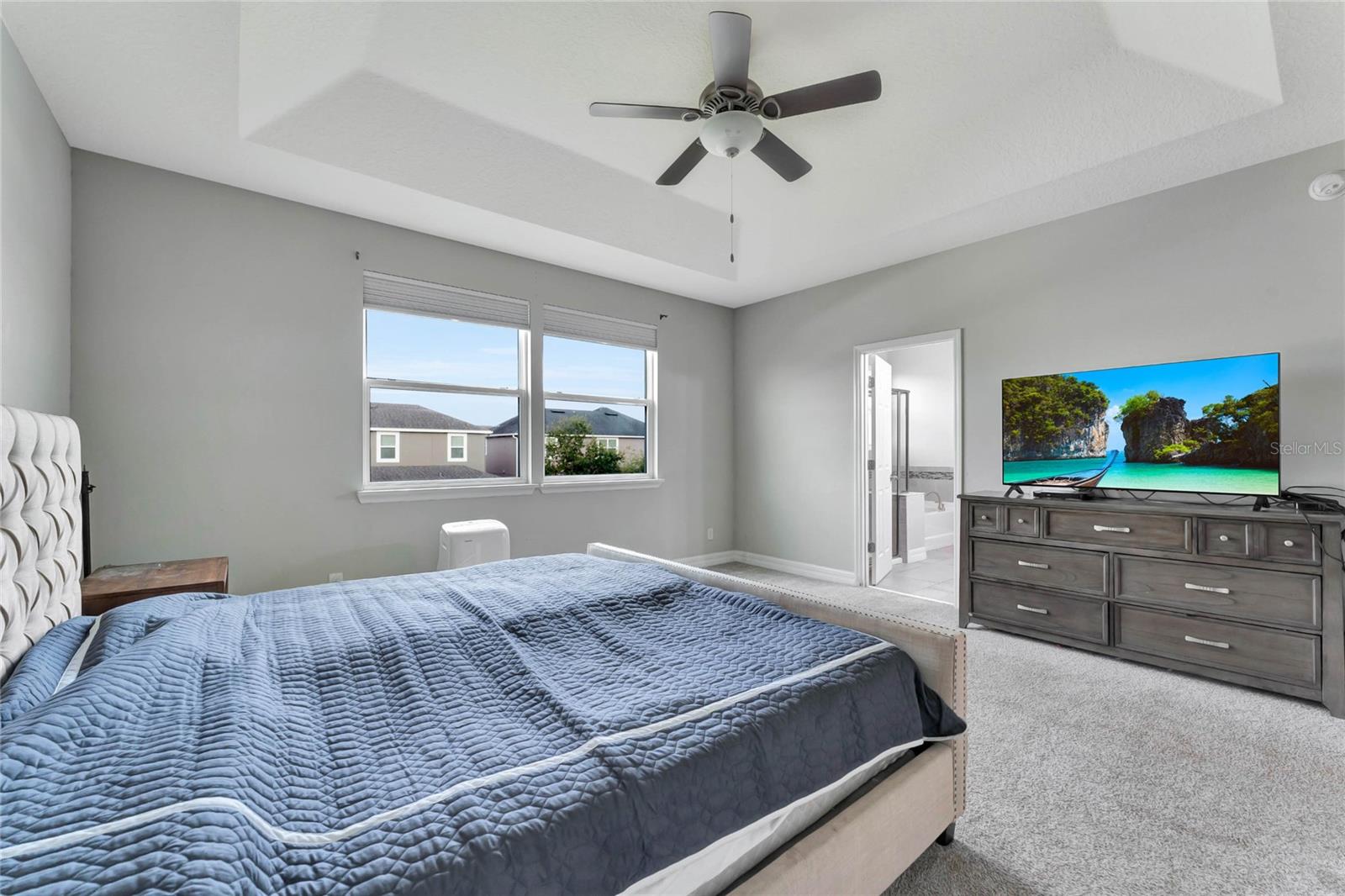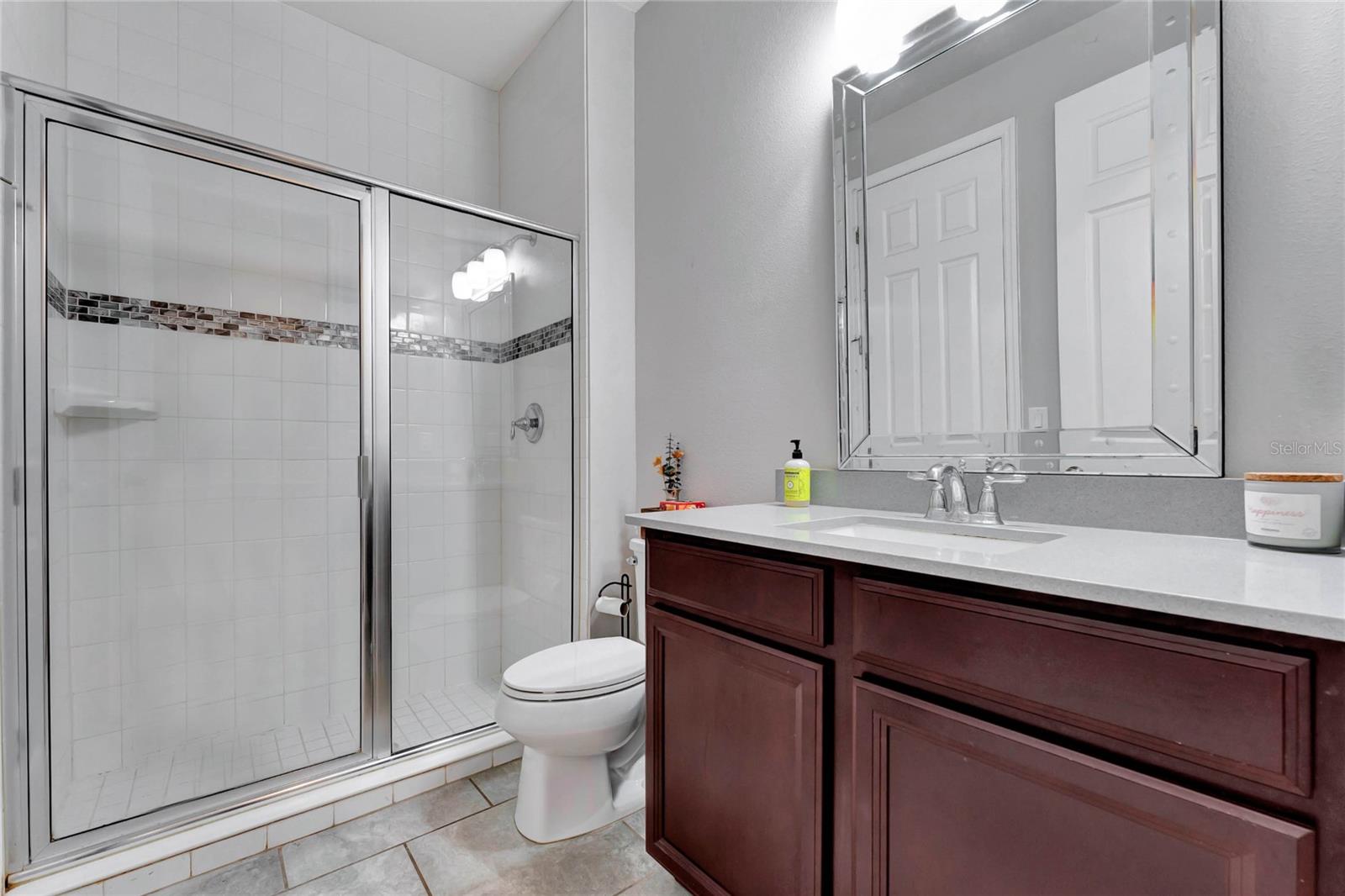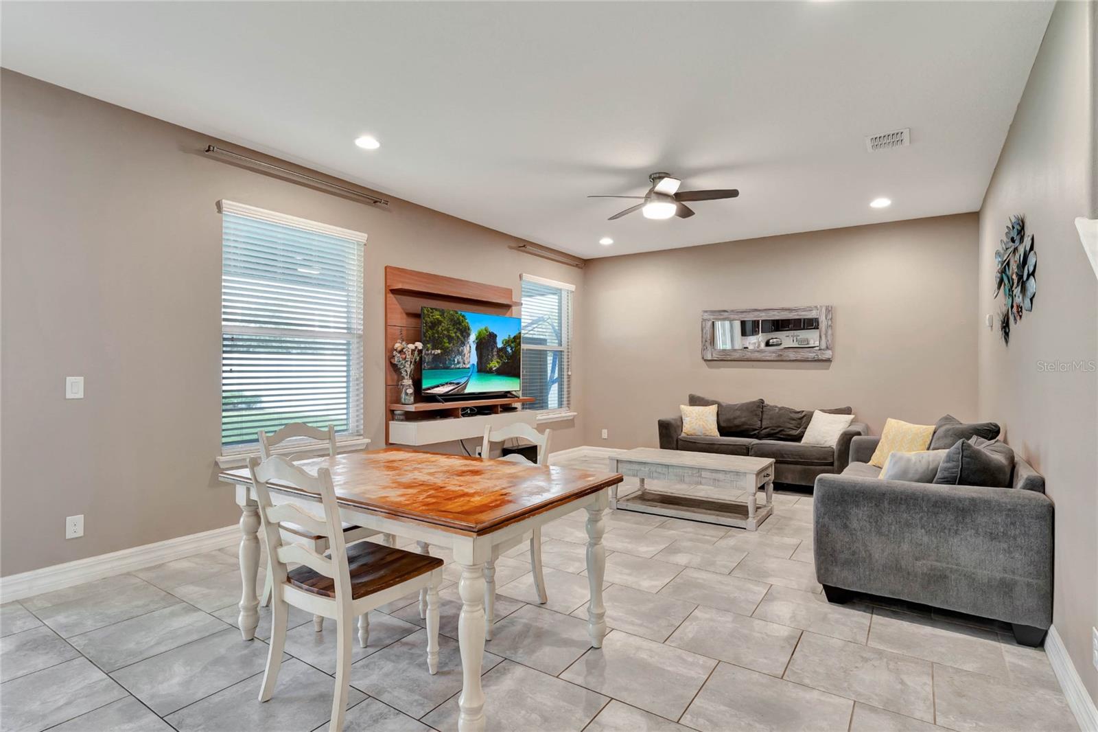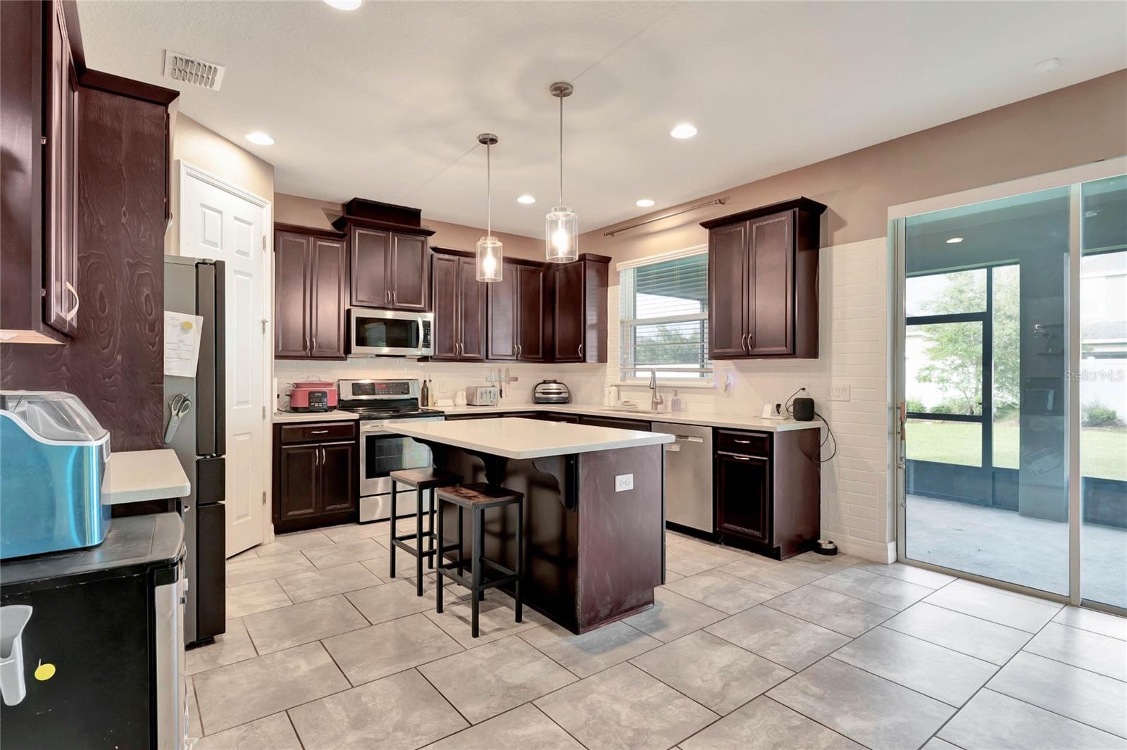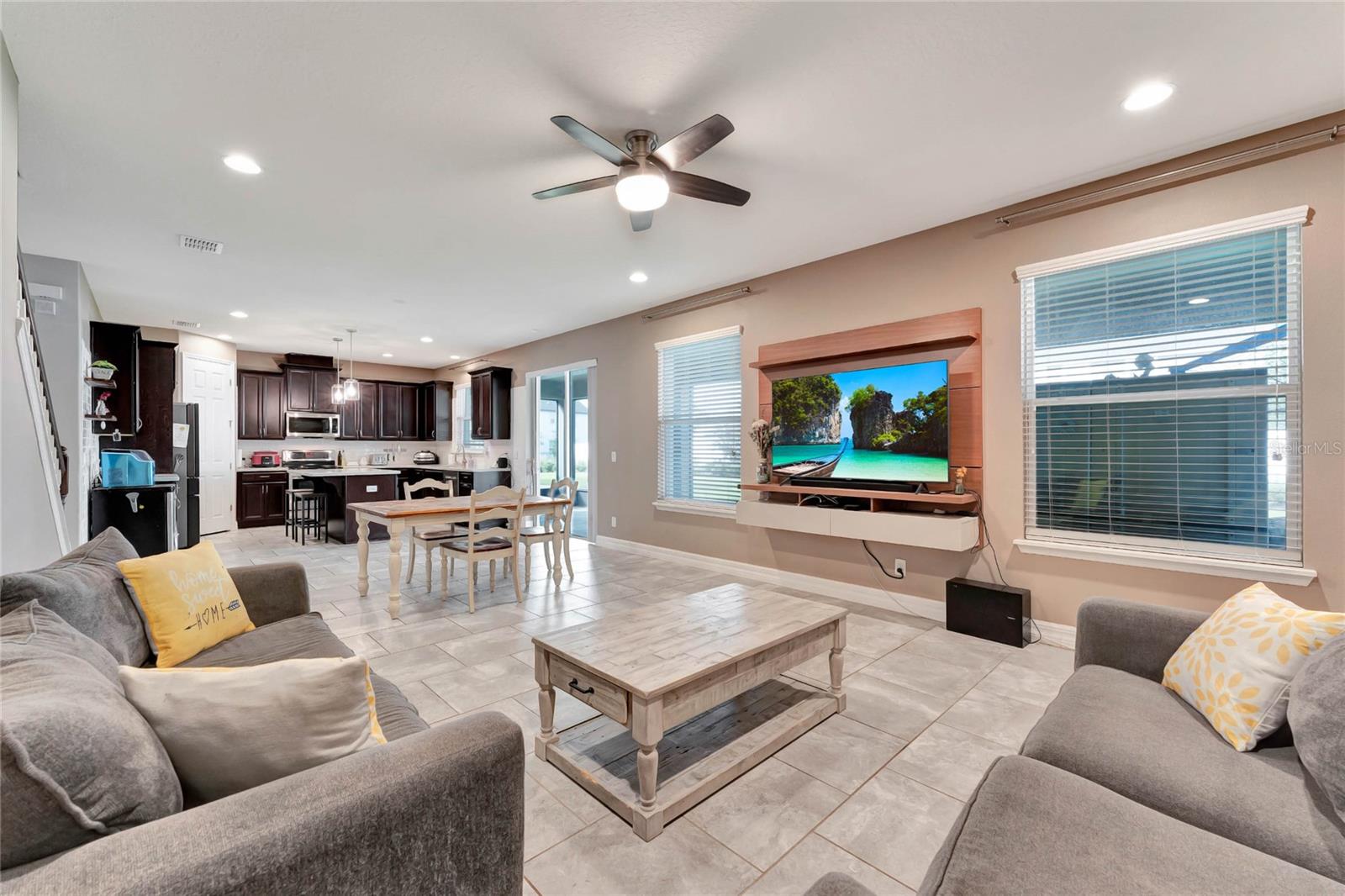 Situada em uma rua tranquila no muito procurado condomínio Randal Park, esta espaçosa casa de 5 quartos e 3 banheiros está repleta de atualizações e oferece uma sensação de “como nova”. A impressionante propriedade de 2 andares apresenta um apelo impressionante com paisagismo maduro. Entre em um hall de entrada acolhedor que leva a um layout de conceito aberto, com tetos de 3 metros, piso de cerâmica atualizado e portas grandes em todo o primeiro andar. A cozinha é um verdadeiro empecilho, com armários para café expresso, bancadas de quartzo com manchas espelhadas e eletrodomésticos quase novos. A sala de estar adjacente e a área de jantar criam uma sala fantástica, perfeita para reuniões, com belas vistas da ampla varanda coberta e protegida que se estende por toda a extensão da casa. O primeiro andar inclui ainda um versátil quarto com portas francesas, ideal como escritório, suite de hóspedes ou espaço para sogros com casa de banho completa anexa. No andar de cima, você encontrará um loft bônus, lavanderia personalizada e armazenamento adicional. O luxuoso retiro do proprietário possui uma entrada de porta dupla, tetos abobadados, um closet grande e um banheiro privativo tipo spa com pias, azulejos e bancadas de quartzo atualizados. Os quartos secundários são todos de dimensões generosas, cada um com closets. O 2º quarto compartilha uma banheira Jack-and-Jill, enquanto o 3º quarto possui tetos abobadados. A casa está pré-instalada para cozinha externa e piscina, com muito espaço para adicionar uma no amplo quintal. O interior e o exterior recém-pintados, além do novo carpete macio nas escadas e no segundo andar, garantem uma experiência pronta para morar. Randal Park oferece comodidades de alto nível, incluindo várias piscinas, academia, splash pad, playgrounds, áreas de pesca, trilhas para bicicletas e muito mais. Esta casa realmente tem tudo!