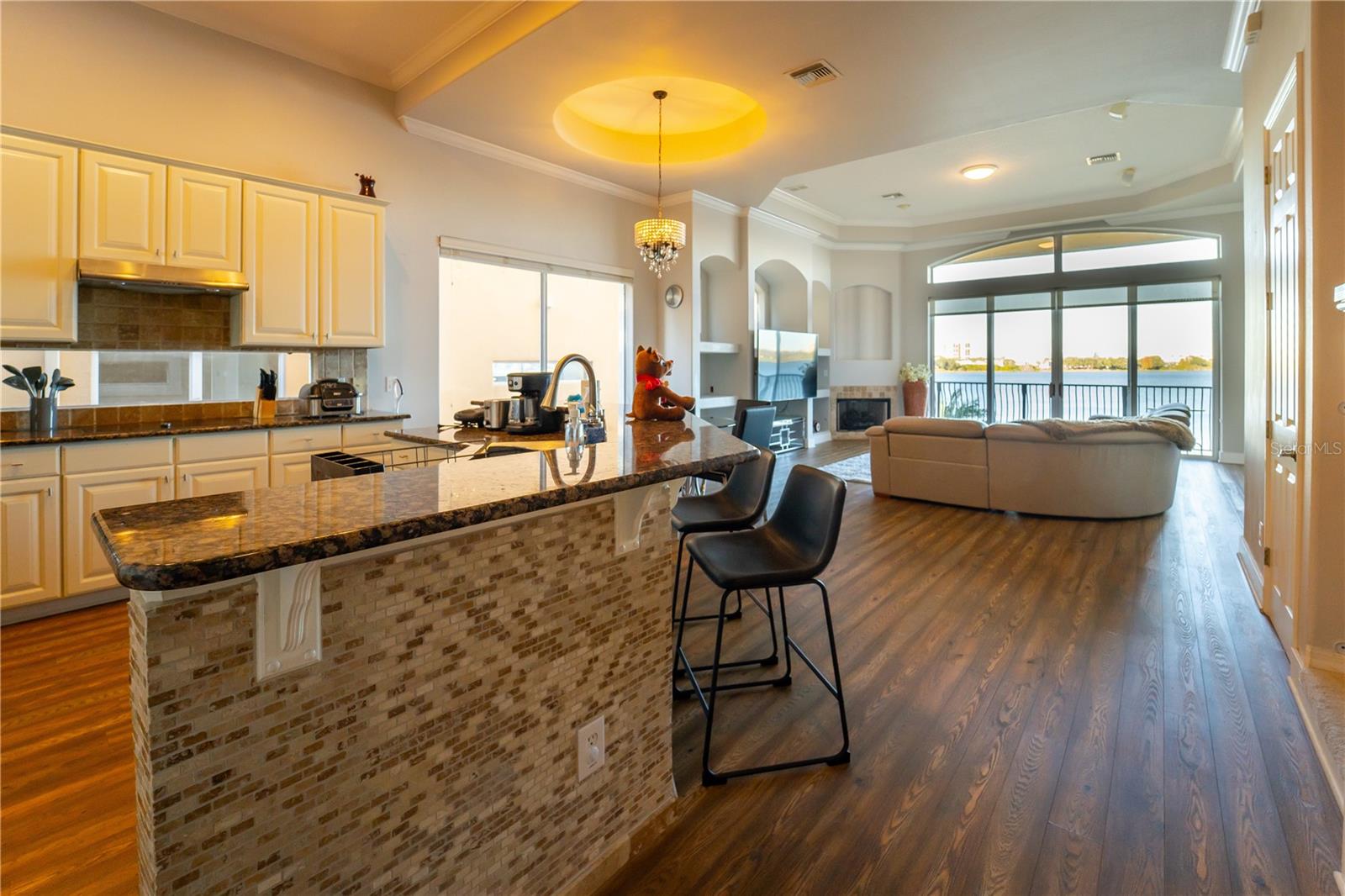 Casa mobiliada de três andares à beira do lago. Localizado no bairro muito procurado de Vizcaya, com portaria 24 horas no Dr. Phillips. Esta casa fica às margens do lago, de frente para as principais atrações de Orlando e para a bela luz noturna do The Wheel no Icon Park. A subdivisão está localizada ao lado da linha de restaurantes. Uma fileira dos melhores restaurantes da cidade. Possui fácil acesso às principais rodovias e 15 minutos das principais atrações como Disney, Universal e centro de Orlando. Você realmente não consegue encontrar um bairro melhor localizado. A casa de 3 andares e 5.160 pés quadrados tem vista panorâmica do lago a partir da sala familiar, cozinha, quarto principal e 1ª, 2ª e 3ª varandas. A luxuosa casa de 5 quartos, 5 banheiros, piscina/spa e área gourmet. O nível principal apresenta a combinação de sala grande e sala de jantar, quarto principal, sala de família, cozinha e escritório. O terceiro nível com três quartos, duas casas de banho completas e uma zona de sótão. O piso inferior tem uma suite que dá acesso à zona da piscina. Privacidade perfeita para sogros e convidados. Há uma enorme área de entretenimento, um segundo banheiro completo, uma sala de mídia pronta para a construção de seu próprio teatro personalizado, além de uma das maiores academias caseiras que você encontrará na região. em Vizcaya, com guarda 24 horas. Com melhor localização, o condomínio oferece ainda quadras de tênis, playground, clubhouse e academia.