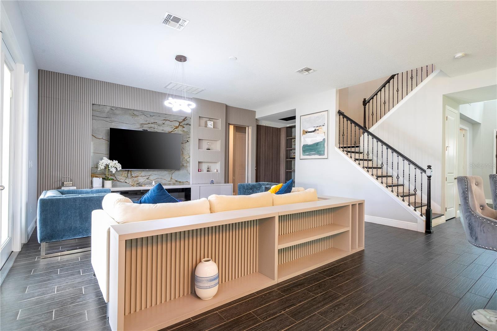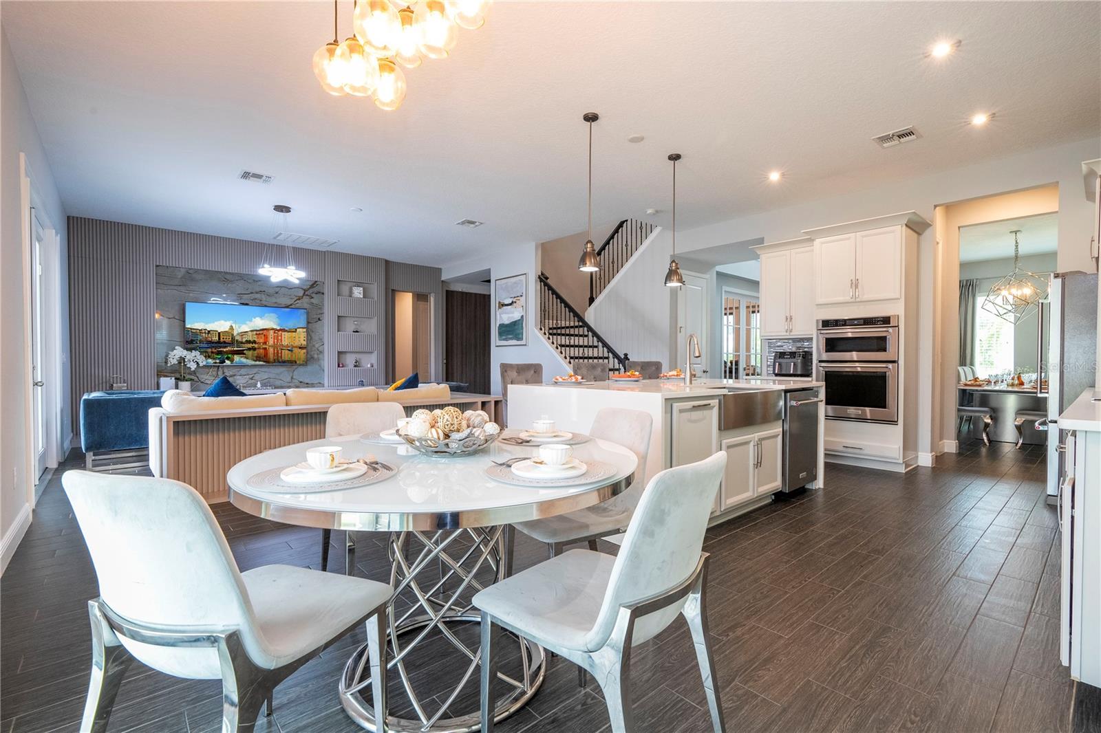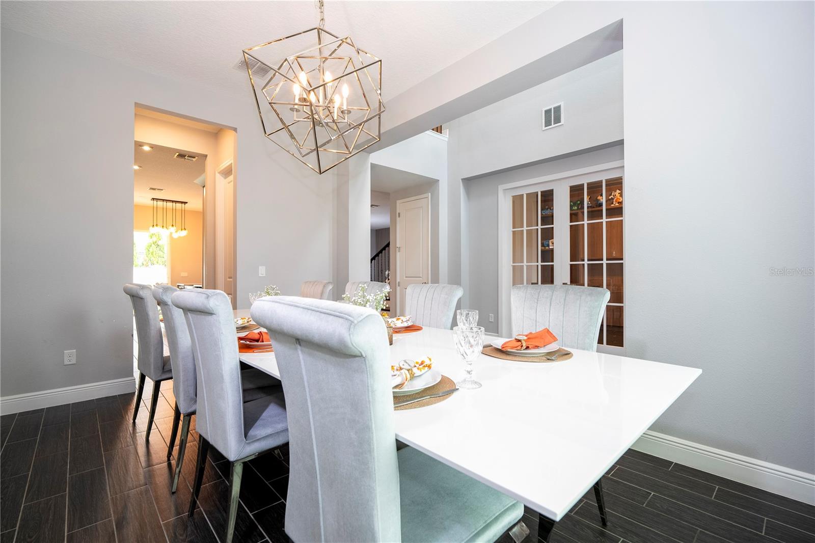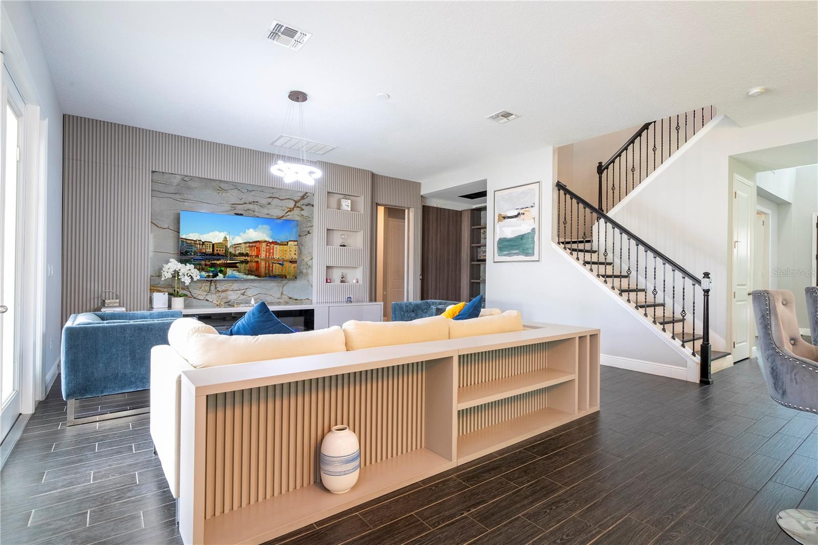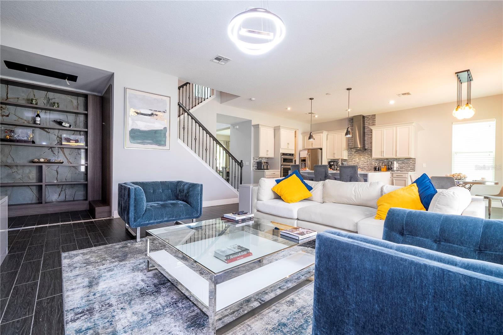 PRIMEIRO ANDAR: 1 sala de jantar Ao entrar na casa temos do lado esquerdo uma mesa de jantar de 8 lugares e 8 cadeiras que sobraram. 2 Escritório: Em frente à sala de jantar fica o escritório completo com os armários planejados que fazem parte da casa. A mesa, cadeira e TV deste escritório não fazem parte da venda e não estão inclusas. 3 Armário embaixo da escada: Este armário serve para guardar diversos produtos e também utensílios de cozinha ou outras finalidades. 4 Cozinha + Arrumos Cozinha completa com armários embutidos, incluindo micro-ondas e forno combinado, fogão com exaustor, frigorífico combinado integrado, máquina de lavar loiça, lava-loiça duplo. Na frente da geladeira há um armário para guardar alimentos. 5 Sala de TV: Sala com 1 sofá com móveis embutidos com painel embutido com lareira digital como decoração sem funcionalidade, inclusive as que permaneceram na casa. 6 Casa de Banho Completa no 1º Andar Casa de banho completa com poliban e poliban de serviço ao 1º Andar 7 espaço para terminar uma adega Nesta sala foi iniciada mas não concluída uma adega, necessitando de ser fechada e instalados os móveis embutidos e luminárias. 8 T1 no 1º Andar: Depois da casa de banho, existe um quarto com armário separado com móveis embutidos, incluindo o estrado da cama. Todos os colchões serão levados, mas a cama embutida faz parte do estoque. A TV não faz parte dos itens que restam. 9 Espaço Gourmet: No exterior da casa existe uma área coberta que é o espaço gourmet completo com acesso ao jardim, que é fechado nos fundos e aberto nas laterais, podendo ser aproveitado para construção de piscina, jacuzzi ou área pet. Temos um projecto desenhado para o efeito que podemos providenciar para a ampliação da casa. A geladeira deste espaço não faz parte dos itens que ficam na casa. 2º ANDAR: 10 2 Quarto em frente às escadas: Os armários personalizados permanecem no lugar, mas este quarto possui uma cama completa que não faz parte do estoque, além de TVs, mesa e cadeiras. 11 2 Banheiro ao lado da Sala de Cinema Banheiro completo com box de chuveiro 12 Sala de Cinema Sala de Cinema com projeto, sistema de som com isolamento acústico, tela embutida e espaço extra. Totalmente isolado e projetado acusticamente para melhor som e imagem para entretenimento. 13 TV e sala de estar Ampla sala de TV, onde o sofá e a TV não fazem parte do estoque que ficará na casa. 14 Mini-escritório Junto à sala de equipamentos informáticos existe um espaço utilizado como escritório para o 2º Piso, não incluindo a mesa e cadeiras, apenas o espaço aproveitável. 15 Lavanderia Lavanderia completa com 2 máquinas Samsung seminovas incluindo 2 pias para banho de pets separadamente com água quente e fria. Armários embutidos. Tudo faz parte do inventário da casa. 16 Closet no Corredor do 3º e 4º Quartos Em frente à sala de TV há um armário para diversos usos 17 3º Quarto do Lado Esquerdo Incluindo armário. O colchão não está incluído, nem as TVs. Todas as luminárias estão incluídas. 18 3º banheiro Casa de banho de serviço ao 3º e 4º Quartos completa com poliban 19 4º Quarto do Lado Direito Todos os móveis planejados não fazem parte do estoque, inclusive as TVs e a gaveta do armário, que também não foram incluídos. 20 5 Quartos – Suíte Master Quarto totalmente planejado com painéis e também lareira digital decorativa incluída.