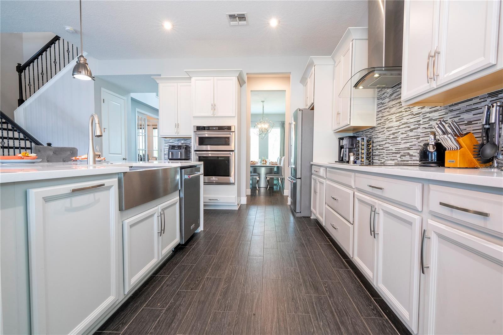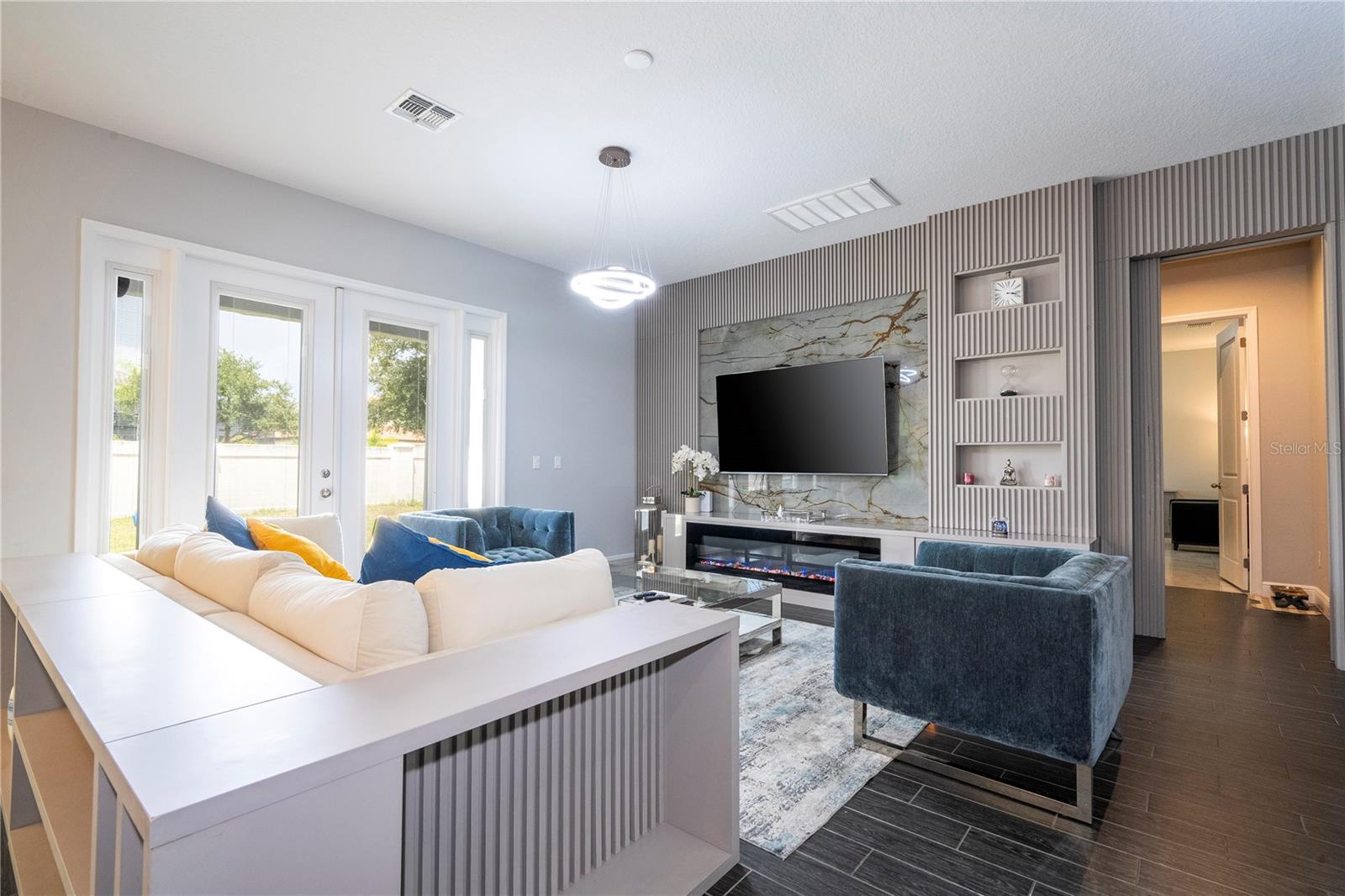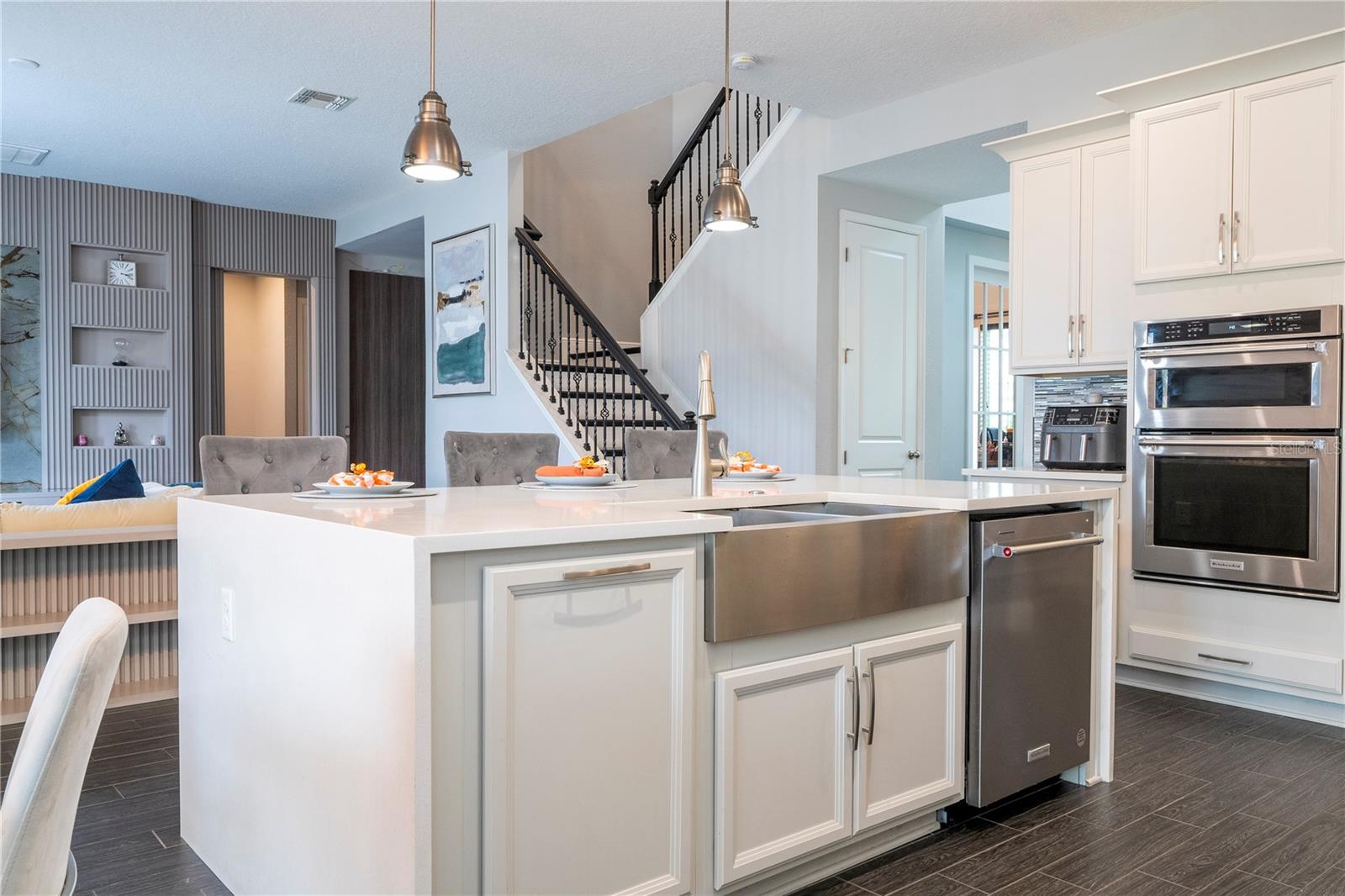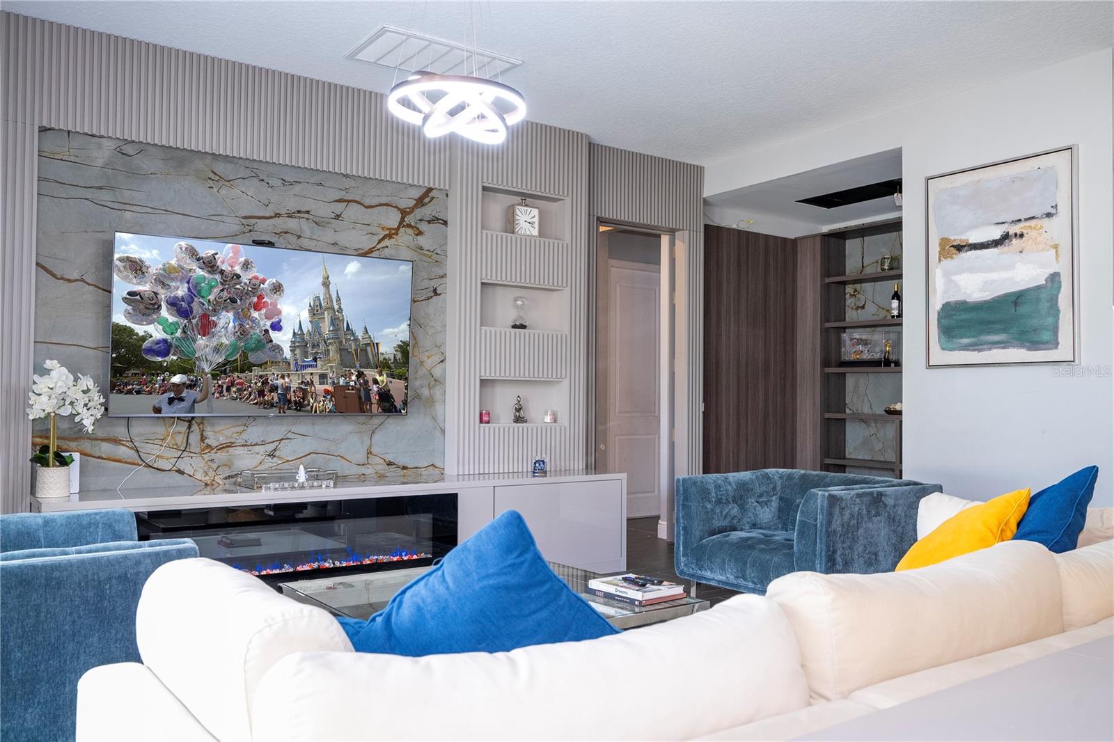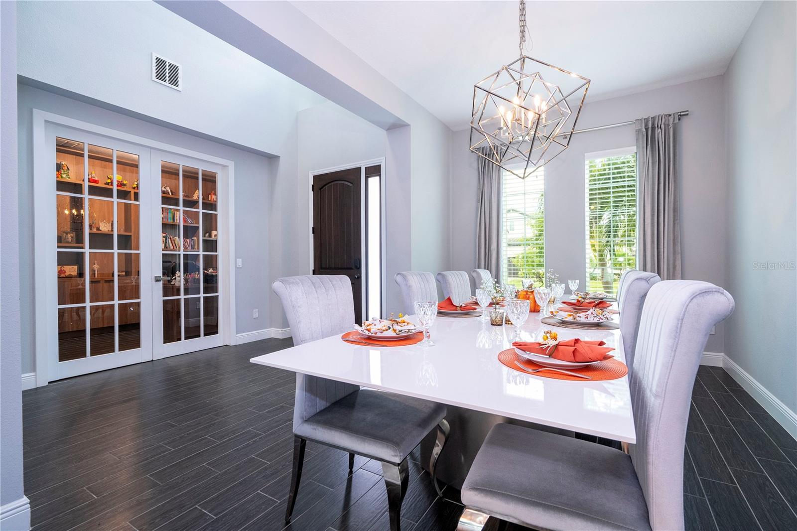 PRIMEIRO ANDAR: 1 sala de jantar Ao entrar na casa temos do lado esquerdo uma mesa de jantar de 8 lugares e 8 cadeiras que sobraram. 2 Escritório: Em frente à sala de jantar fica o escritório completo com os armários planejados que fazem parte da casa. A mesa, cadeira e TV deste escritório não fazem parte da venda e não estão inclusas. 3 Armário embaixo da escada: Este armário serve para guardar diversos produtos e também utensílios de cozinha ou outras finalidades. 4 Cozinha + Arrumos Cozinha completa com armários embutidos, incluindo micro-ondas e forno combinado, fogão com exaustor, frigorífico combinado integrado, máquina de lavar loiça, lava-loiça duplo. Na frente da geladeira há um armário para guardar alimentos. 5 Sala de TV: Sala com 1 sofá com móveis embutidos com painel embutido com lareira digital como decoração sem funcionalidade, inclusive as que permaneceram na casa. 6 Casa de Banho Completa no 1º Andar Casa de banho completa com poliban e poliban de serviço ao 1º Andar 7 espaço para terminar uma adega Nesta sala foi iniciada mas não concluída uma adega, necessitando de ser fechada e instalados os móveis embutidos e luminárias. 8 T1 no 1º Andar: Depois da casa de banho, existe um quarto com armário separado com móveis embutidos, incluindo o estrado da cama. Todos os colchões serão levados, mas a cama embutida faz parte do estoque. A TV não faz parte dos itens que restam. 9 Espaço Gourmet: No exterior da casa existe uma área coberta que é o espaço gourmet completo com acesso ao jardim, que é fechado nos fundos e aberto nas laterais, podendo ser aproveitado para construção de piscina, jacuzzi ou área pet. Temos um projecto desenhado para o efeito que podemos providenciar para a ampliação da casa. A geladeira deste espaço não faz parte dos itens que ficam na casa. 2º ANDAR: 10 2 Quarto em frente às escadas: Os armários personalizados permanecem no lugar, mas este quarto possui uma cama completa que não faz parte do estoque, além de TVs, mesa e cadeiras. 11 2 Banheiro ao lado da Sala de Cinema Banheiro completo com box de chuveiro 12 Sala de Cinema Sala de Cinema com projeto, sistema de som com isolamento acústico, tela embutida e espaço extra. Totalmente isolado e projetado acusticamente para melhor som e imagem para entretenimento. 13 TV e sala de estar Ampla sala de TV, onde o sofá e a TV não fazem parte do estoque que ficará na casa. 14 Mini-escritório Junto à sala de equipamentos informáticos existe um espaço utilizado como escritório para o 2º Piso, não incluindo a mesa e cadeiras, apenas o espaço aproveitável. 15 Lavanderia Lavanderia completa com 2 máquinas Samsung seminovas incluindo 2 pias para banho de pets separadamente com água quente e fria. Armários embutidos. Tudo faz parte do inventário da casa. 16 Closet no Corredor do 3º e 4º Quartos Em frente à sala de TV há um armário para diversos usos 17 3º Quarto do Lado Esquerdo Incluindo armário. O colchão não está incluído, nem as TVs. Todas as luminárias estão incluídas. 18 3º banheiro Casa de banho de serviço ao 3º e 4º Quartos completa com poliban 19 4º Quarto do Lado Direito Todos os móveis planejados não fazem parte do estoque, inclusive as TVs e a gaveta do armário, que também não foram incluídos. 20 5 Quartos – Suíte Master Quarto totalmente planejado com painéis e também lareira digital decorativa incluída.