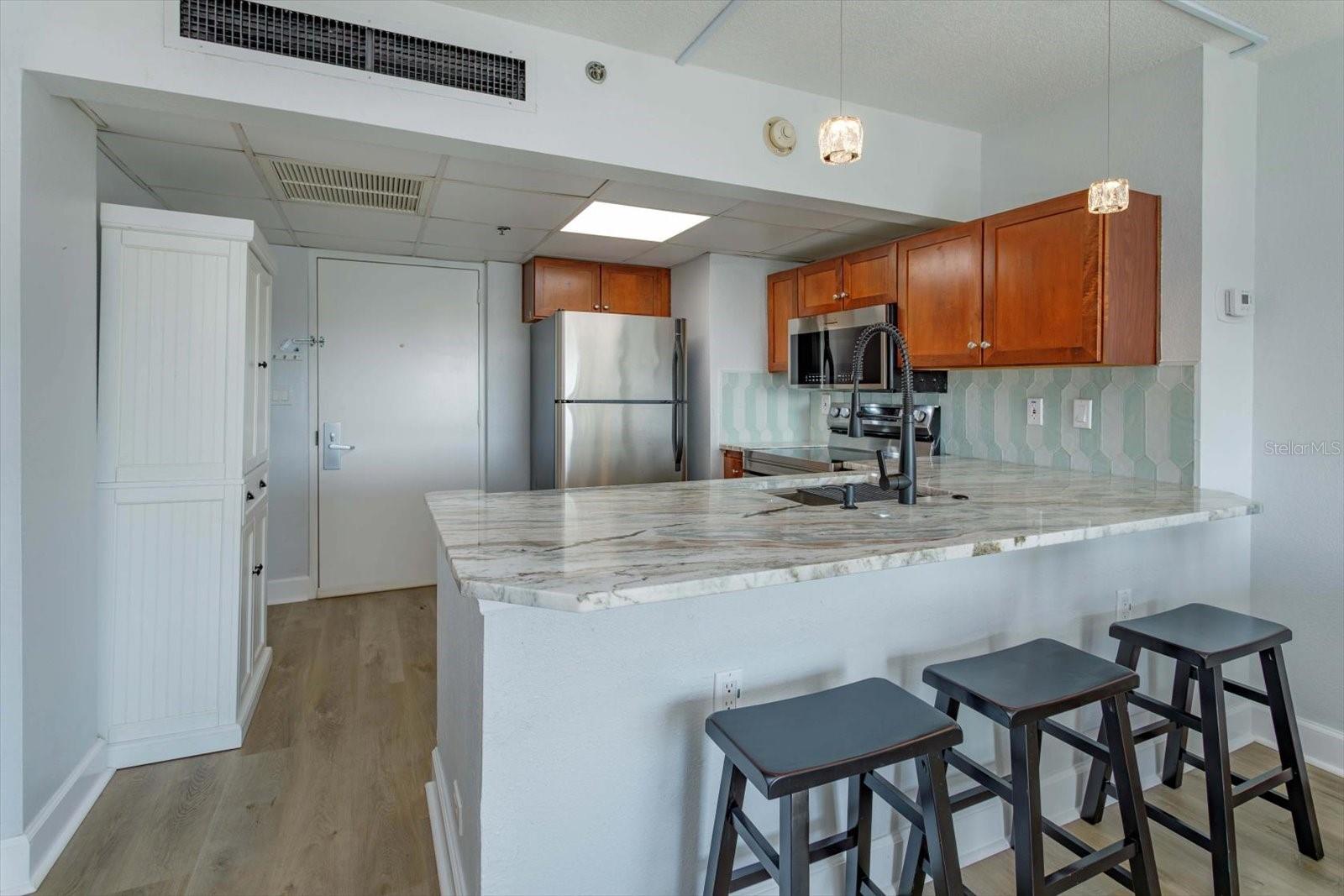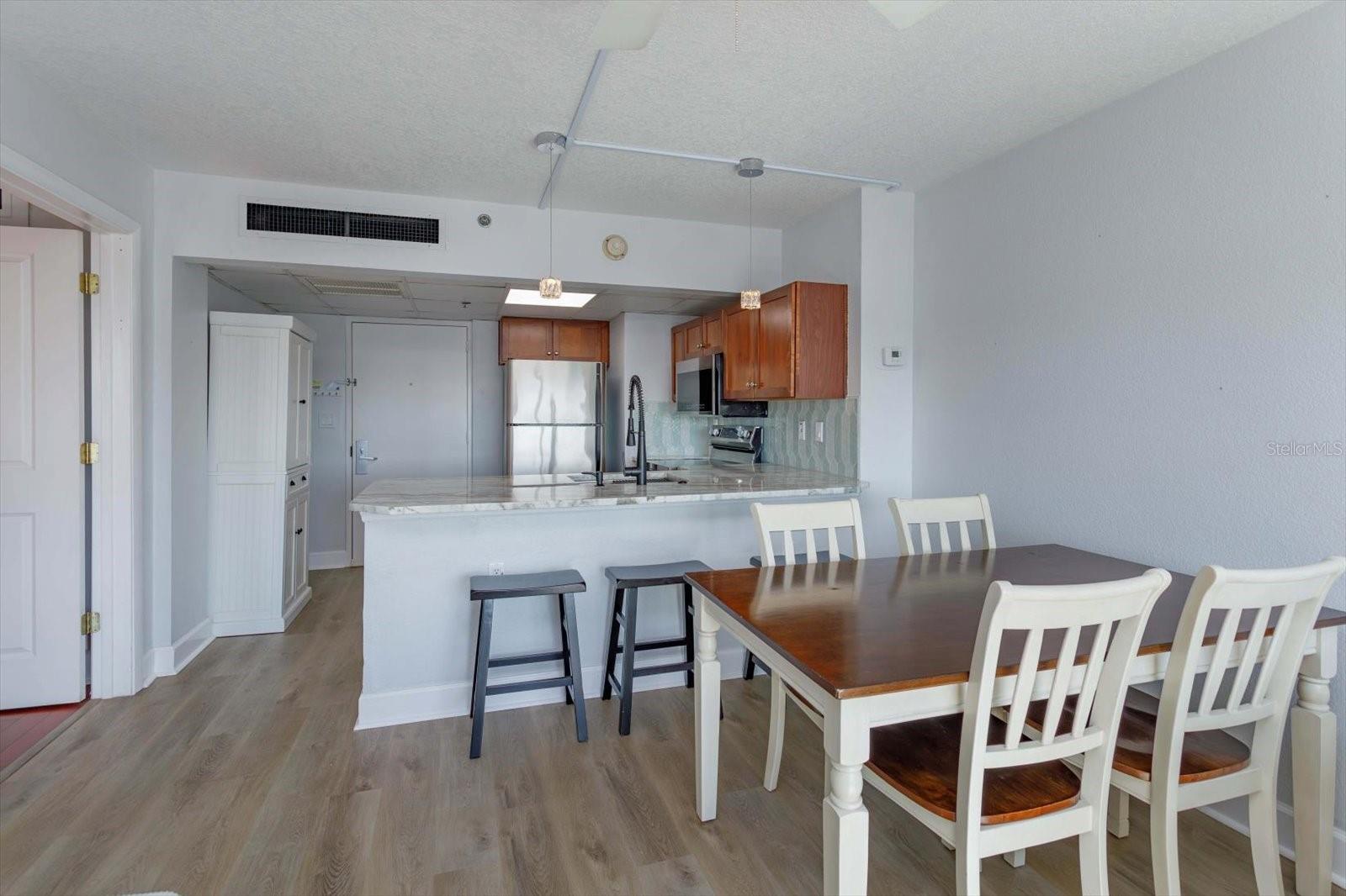 Experimente o coração vibrante do centro de Orlando neste impressionante condomínio no último andar, que oferece vistas incomparáveis do Lago Eola e dos fogos de artifício anuais de 4 de julho. Esta residência de 1 quarto e 1 banheiro está perfeitamente posicionada para que você possa desfrutar de tudo o que a cidade tem a oferecer, a apenas 8 minutos a pé do Publix, do Orlando Farmer's Market e de uma série de restaurantes e bares. Aproveite o layout aberto acentuado pela abundância de luz natural, tons neutros de pintura, piso laminado e de madeira. Novas janelas de vidro duplo na sala de estar e uma porta de vidro deslizante no quarto melhoram a eficiência energética e emolduram vistas pitorescas. Aproveite as conveniências modernas de uma cozinha atualizada com novas bancadas de granito, lindo backsplash, uma nova pia de aço inoxidável, torneira e triturador de lixo, além de uma conveniente barra de café da manhã. A espaçosa suíte principal possui um closet onde fica sua lavadora e secadora mais recente. Uma varanda oferece acesso à vista espetacular do Lago Eola, do Anfiteatro Walt Disney, da famosa fonte do Lago Eola de Orlando e do nascer do sol no leste. As conveniências adicionais incluem uma vaga de estacionamento escriturada (nº 159) em uma garagem segura, coberta e fechada. As comodidades em estilo resort estão ao seu alcance e incluem uma piscina comunitária com vista para o Lago Eola, uma academia, sala de clube para reuniões sociais e caixas de correio comunitárias com um “Hub” da Amazon. Este condomínio super acessível oferece a combinação perfeita de emoção urbana e um retiro tranquilo, tudo dentro de um dos bairros mais vibrantes do centro de Orlando. Quando você precisar pegar a estrada, a 408 e a I-4 ficam a menos de 5 minutos de distância. Esta é uma rara oportunidade de possuir um pedaço do centro de Orlando com comodidades incríveis e vistas imbatíveis. Quer pretenda desfrutar do estilo de vida urbano ou de um retiro sereno acima da cidade, este condomínio oferece o melhor dos dois mundos. Agende sua exibição privada hoje.