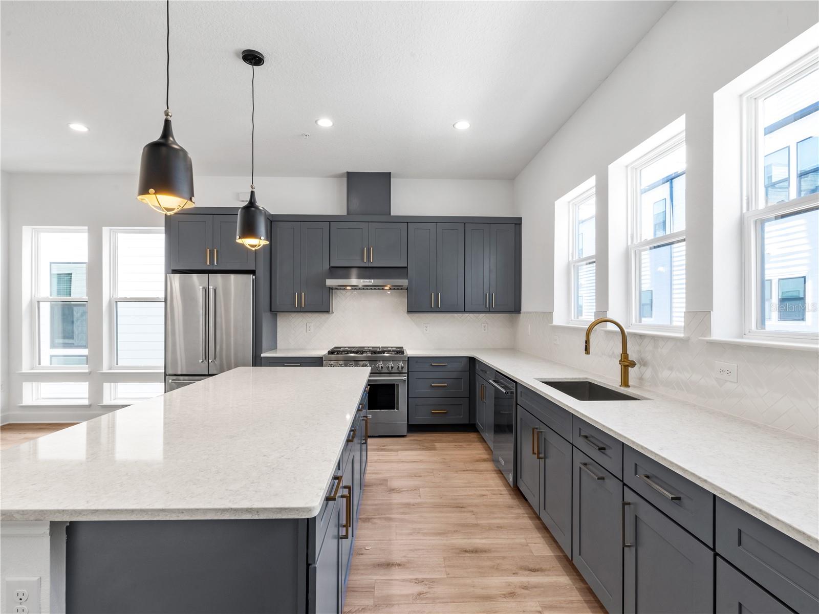 Pronto para morar – Pronto para impressionar! Bem-vindo à sua nova casa na comunidade Brix – uma residência urbana de 4 andares lindamente projetada com estilo, espaço e um retiro na cobertura construído para viver e se divertir. No primeiro andar, você encontrará um quarto privativo com banheiro privativo - perfeito para hóspedes, um escritório em casa ou um refúgio tranquilo - além de uma espaçosa garagem para dois carros para todas as suas necessidades de armazenamento e estacionamento. Suba as escadas até o segundo andar, onde a vida cotidiana recebe uma grande atualização. A cozinha gourmet apresenta impressionantes armários cinza-azulados, elegantes bancadas de quartzo, um backsplash branco e um conjunto completo de eletrodomésticos incluídos. O layout aberto conecta a cozinha a uma aconchegante área de jantar e a uma grande sala iluminada pelo sol – o espaço perfeito para relaxar, se divertir ou fazer um pouco dos dois. O terceiro andar oferece privacidade e conforto com uma espaçosa suíte principal, um quarto secundário e uma lavanderia que mantém tudo ao alcance, mas fora da vista. Mas o que realmente diferencia esta casa? O terraço privativo no quarto andar – já conectado e preparado para uma futura cozinha de verão, lareira e banheira de hidromassagem. Seja um brunch com amigos ou noites tranquilas sob as estrelas, este rooftop é o seu refúgio pessoal. Acabamentos interiores cuidadosamente selecionados unem estilo e função: escadas de madeira projetada, piso de pranchas de vinil de luxo em todas as áreas de estar principais, armários de design e superfícies de quartzo que fazem com que cada espaço pareça personalizado. E não se esqueça: há uma casa modelo no local com layout e design semelhantes. Faça uma visita e veja como realmente é a vida no topo. Viver no The Packing District significa muito mais do que apenas ter uma bela casa – trata-se de adotar um estilo de vida dinâmico e conectado. Comece o dia com uma caminhada tranquila ou um passeio de bicicleta ao longo da trilha pitoresca de 2,4 quilômetros e, em seguida, coma uma fatia no refeitório ou sue no novíssimo YMCA. Encontre amigos para uma partida competitiva de pickleball ou tênis no Orlando Tennis Center — tudo a poucos passos da sua porta. E as comodidades não param por aí. O Packing District está se tornando uma das novas comunidades mais emocionantes de Orlando, apresentando um novo Publix, instalações para escalada, Hotworx Studio e o inovador 4Roots Farm Campus. Com futuros espaços de escritórios e lojas também em obras, tudo o que você precisa — do bem-estar à conveniência e recreação — está ao seu alcance.