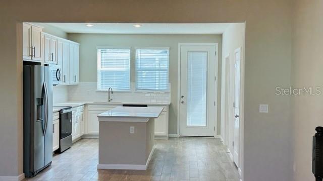 Sua bela nova residência urbana de dois andares com interior Foxtail possui 3 quartos, 2 banheiros completos, lavabo, cozinha de conceito aberto, cafeteria e sala de reuniões, pátio privativo e garagem para 2 carros voltada para os fundos. O amplo primeiro andar é ideal para entretenimento, contando com ampla sala de reuniões, cafeteria e cozinha moderna, com grande ilha central, despensa, armários cinza, bancadas de quartzo Lyra e utensílios de cozinha em aço inoxidável. Um lavabo e lavanderia no primeiro andar aumentam a conveniência atenciosa. Desfrute de ar fresco ou jante ao ar livre em seu pátio traseiro privativo e cercado. Depois de um longo dia, suba as escadas para o seu oásis privado. A Suíte Owner possui um espaçoso closet e banheiro privativo com pia dupla Blanco Matrix com tampo de quartzo, vaso sanitário privativo e chuveiro grande. Dois quartos adicionais, o banheiro secundário e o armazenamento extra oferecido por um armário de linho ficam no lado oposto do segundo andar, oferecendo privacidade e espaço para todos. Esta popular residência urbana interior Foxtail inclui nosso pacote Connected Home, persianas, pré-fiação de iluminação pendente, uma escada de eixo de ferro, armários Brelin atualizados com bancadas de quartzo, piso LVP com aparência de madeira Cut Pine nas principais áreas de estar, piso de cerâmica Boston Perla nos banheiros, carpete Bare Mineral macio e resistente a manchas nos quartos e áreas de estar do segundo andar e muito mais! Isles of Lake Nona é um condomínio fechado em estilo resort que oferece um estilo de vida à beira-mar no coração do Lago Nona, a poucos minutos do Lake Nona Town Center, da Medical City e do USTA. Aproveite o fácil acesso à 417, oferecendo um trajeto rápido até o centro da cidade, a Disney ou a praia. Aproveite seu tempo livre em nosso centro de comodidades que oferece piscina com splash pad e clubhouse, academia de ginástica com serviço completo, dois playgrounds e quadras esportivas com basquete, tênis e pickleball. HOA inclui paisagismo para todas as casas individuais, internet, portão de entrada e acesso a piscina, clubhouse, academia, playground e quadras esportivas. A casa dos seus sonhos o espera - visite hoje para saber mais sobre esse projeto de casa muito procurado e descubra por que as Ilhas do Lago Nona são o melhor lugar para se viver!