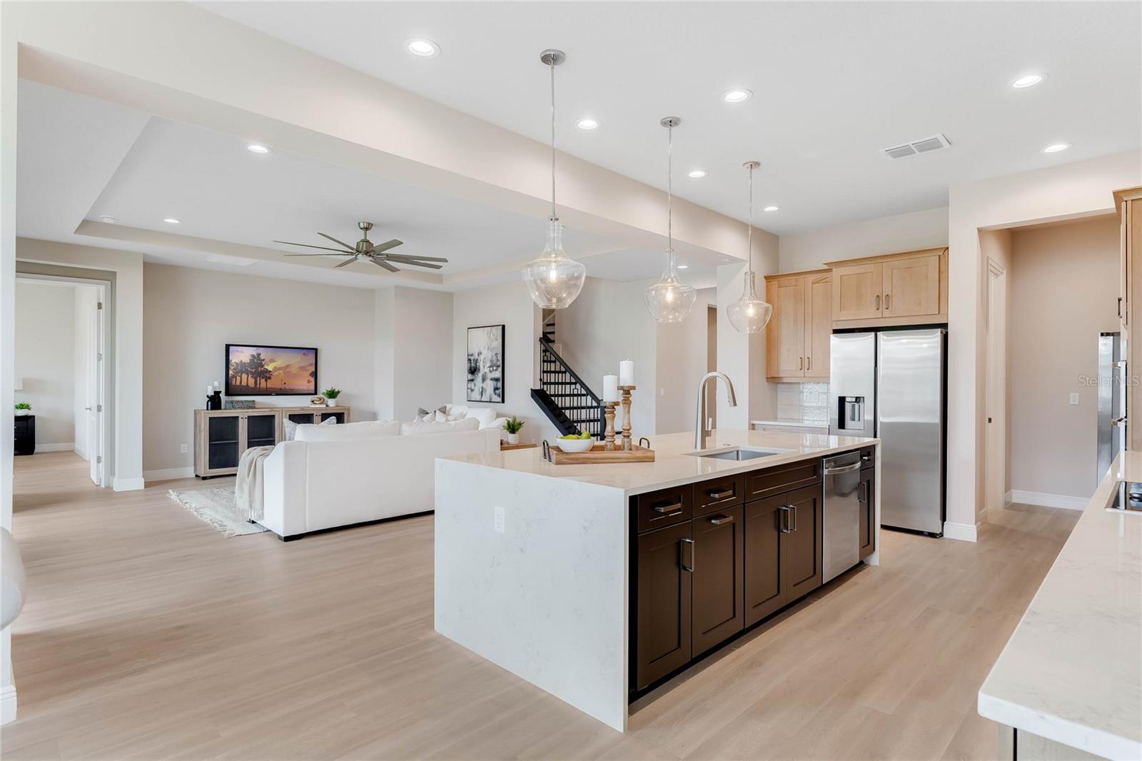 Uma ou mais fotos foram virtualmente encenadas. Localizado no condomínio fechado e condomínio de golfe de Eagle Creek e concluído em outubro de 2023! Nunca foi habitado e é um modelo IBIS da Jones Homes lindamente atualizado com 6 quartos e 5 banheiros. Esta casa possui duas suítes master com duas lavanderias. É o único construído na comunidade. Existem muitas atualizações personalizadas para listar aqui! Uma lista de todas as melhorias está no anexo. O andar de baixo oferece um amplo quarto com banheiro, espaço flexível para escritório / área de jantar, área de alimentação na cozinha, uma enorme ilha com bordas em cascata, sala de estar, zona de descanso, cozinha de chef de design com acabamento em quartzo, balcão para grandes reuniões de férias e entretenimento. Aparelhos de aço inoxidável de última geração incluem DUAS geladeiras lado a lado, lava-louças, fogão de indução, exaustor (com ventilação para o exterior), forno de parede e micro-ondas. A cozinha se abre para a sala de jantar e de família e tem vista para uma varanda bônus coberta de tijolos. Suba a detalhada escadaria de madeira com grades de ferro e madeira até o impressionante loft no segundo andar. A lavanderia, a penteadeira e a pia do andar de cima estão convenientemente localizadas na 2ª suíte principal e apresentam um banheiro luxuoso com pia dupla estendida e um chuveiro grande com um gabinete de vidro transparente sem moldura. O quarto 5 também possui uma sala privada na frente da casa. Esta casa oferece uma variedade de espaços por dentro e por fora! Há também um sistema central de ar condicionado e aquecimento de alta eficiência com termostato programável, tecnologia Digital Living Smart Home, Segurança e Automação Residencial. Um telhado de concreto em estilo mediterrâneo, uma calçada de tijolos e uma enorme garagem para 3 carros são apenas algumas das características personalizadas. Este acabamento exterior do 2º andar é feito com placa de cimento. O HOA inclui guarda/portão 24 horas, campo de golfe bem conservado, clube de golfe, loja profissional, restaurante, centro de recreação familiar/centro de fitness, piscina estilo resort, quadras de basquete e tênis, campo esportivo multiuso, gazebos, playground /parque e parque para cães para seu(s) bebê(s) de peles. O Aeroporto Internacional de Orlando fica a menos de 20 minutos. Fica perto da Cidade Médica e de seus próximos projetos de construção, restaurantes próximos ao Parque Boxi, principais rodovias, incluindo 417 e 528, lojas, entretenimento, parques temáticos e muito mais. Descubra escolas próximas com classificação A. Esta é uma excelente oportunidade para desfrutar do coração e da alma de Eagle Creek, no Lago Nona.