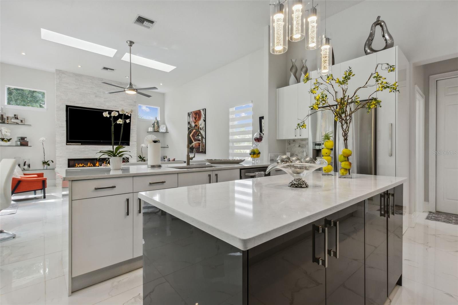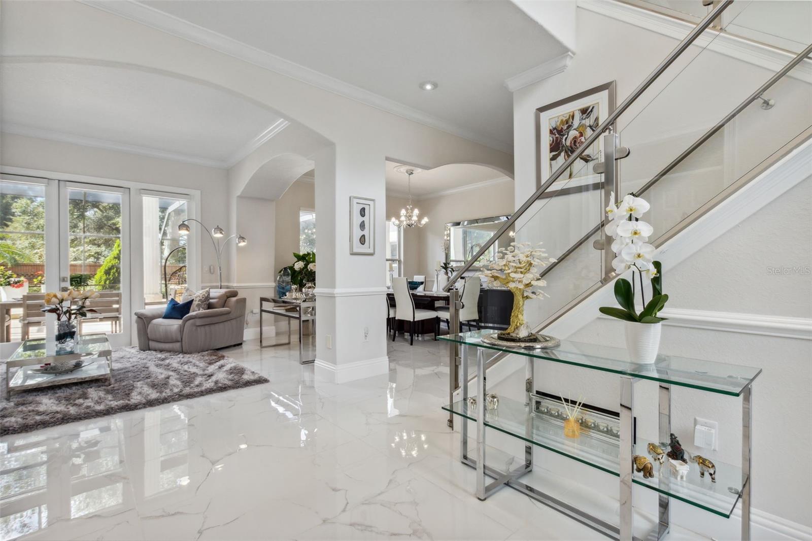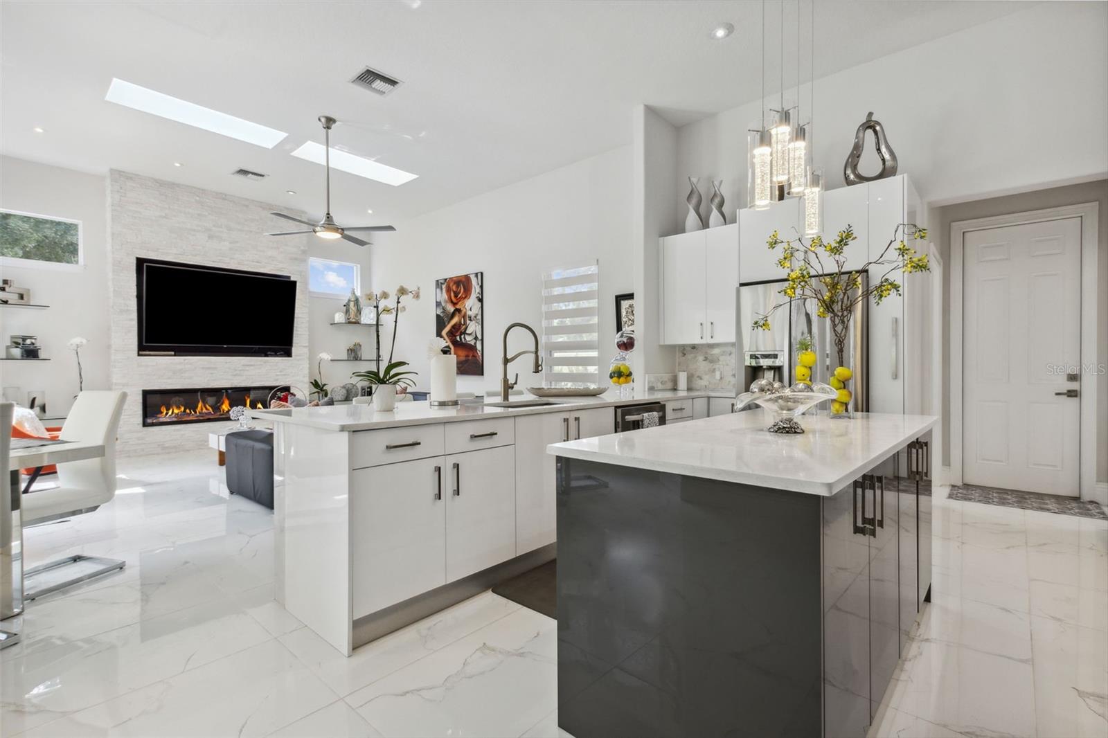 Vida luxuosa em uma elegante obra-prima espanhola moderna. Entre nesta requintada residência de 6 quartos e 5 banheiros com 4.273 pés quadrados. Localizada no exclusivo condomínio fechado de Palm Lake com apenas 39 casas personalizadas na desejável área de Dr. Esta propriedade deslumbrante oferece uma variedade de atualizações de alta qualidade e recursos elegantes que certamente irão cativar. A partir do momento em que você entra, você é recebido por lindos pisos cerâmicos 48 x 24 que fluem perfeitamente pela planta aberta, conectando a sala de família e a sala de jantar em um layout perfeito tanto para uma vida casual quanto para entretenimento. Para reuniões mais formais, a casa dispõe de uma sala de jantar e área de estar dedicadas, garantindo que cada ocasião seja atendida no ambiente perfeito. A cozinha gourmet é o sonho de qualquer chef, ostentando luxuosas bancadas de quartzo, armários personalizados com acabamento brilhante de 45” com corrediças de gaveta com fechamento suave, um impressionante backsplash de mármore e eletrodomésticos de aço inoxidável. A ilha enorme, aprimorada com novos equipamentos, serve como um ponto de encontro perfeito. Ao lado da cozinha encontra-se uma espaçosa despensa embutida, que oferece ampla arrumação e armários extra para maior comodidade. O deck adjacente da piscina coberto de travertino e a cozinha de verão convidam você a desfrutar da vida ao ar livre no seu melhor. A suíte master do primeiro andar é um verdadeiro santuário, com tetos altos e portas francesas que se abrem para uma vista serena da piscina. O banheiro principal em estilo spa oferece espaço generoso, pias duplas e luz natural abundante, enquanto o armário principal é o sonho de qualquer proprietário - projetado sob medida para maximizar espaço e estilo. Todos os banheiros da casa foram meticulosamente remodelados com novos chuveiros, pisos de cerâmica requintados e paredes apresentando uma combinação artística de cores e detalhes. Em toda a casa, você encontrará toques elegantes, como cortinas automáticas, novas luminárias luxuosas e ventiladores. Um display coberto de vidro sob a escada exibe elegantemente sua coleção premiada, adicionando um toque único de sofisticação. No andar de cima, você descobrirá dois quartos adicionais e uma espaçosa suíte, oferecendo privacidade e conforto para hóspedes ou familiares. A sala de mídia está localizada no segundo andar, posicionada em uma ala separada acima da garagem para maior privacidade e tranquilidade. Esta sala de mídia está totalmente equipada com som surround, assentos luxuosos para 8 pessoas e todos os equipamentos permanecerão na casa, oferecendo um espaço de entretenimento pronto para desfrutar. A garagem com entrada lateral realça o apelo da casa, mostrando toda a beleza da arquitetura espanhola moderna. A garagem está equipada com piso em epóxi e equipamentos de serviço EV estrategicamente localizados para carros elétricos. A ampla entrada de automóveis oferece amplo espaço para veículos adicionais. A entrada principal apresenta uma porta frontal de 8 pés de núcleo sólido feita sob medida, acentuada por novas luminárias luxuosas, grades de vidro e metal e rodapés grandes que continuam por toda a casa. Esta casa também vem com um sistema de segurança completo com sensores de portas e janelas, proporcionando tranquilidade. As janelas frontais são resistentes a furacões e a propriedade está equipada com sistemas HVAC mais recentes e duas lareiras elétricas, garantindo conforto e segurança. Convenientemente localizada perto de um dos campos de golfe mais famosos da Flórida, das melhores escolas, shopping centers, restaurantes, parques temáticos, do centro de Orlando e do aeroporto, esta casa deve ser experimentada pessoalmente para ser totalmente apreciada. Agende hoje mesmo um tour privado e descubra a combinação perfeita de luxo.