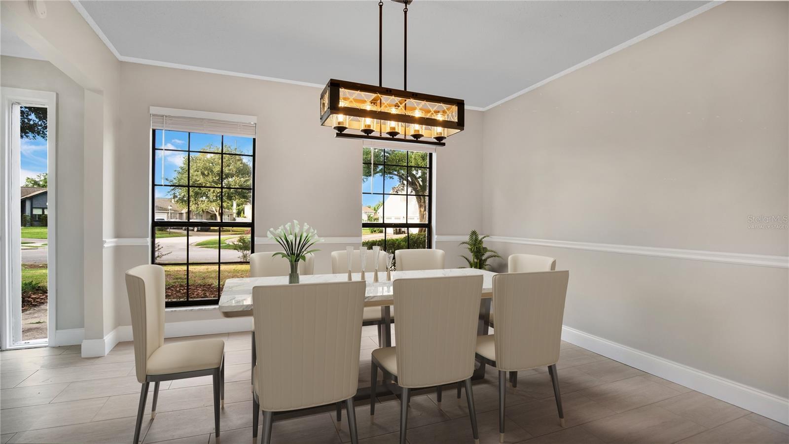 Bem-vindo à casa dos seus sonhos, situada na conceituada comunidade de Windermere/Dr. Phillips. Esta elegante residência de 4 quartos e 2,5 banheiros foi meticulosamente remodelada para incorporar luxo e sofisticação em cada canto. O coração da casa, a cozinha gourmet, possui armários de madeira maciça de 36" adornados com sancas, elegantes bancadas de quartzo e eletrodomésticos inteligentes de aço inoxidável de última geração, incluindo uma geladeira inteligente embutida, portas de armário de vidro decorativas , uma despensa dedicada e uma elegante torneira de bronze polido com óleo completam o espaço, projetado para beleza e funcionalidade. Entre em amplas áreas de estar, cada uma cuidadosamente decorada com toques exclusivos, como ventiladores de teto em estilo fazenda e detalhes em bronze polido com óleo. As salas de estar formais e familiares oferecem amplo espaço para reuniões e entretenimento, banhadas pela luz natural das grandes janelas salientes que oferecem vistas serenas do ambiente paisagístico. Retire-se para a suíte master de grandes dimensões, onde o luxo encontra o conforto. Armários para ele e para ela, além de um closet separado, garantem que você nunca fique sem espaço de armazenamento. O banheiro principal em estilo spa possui chuveiro duplo com azulejos personalizados e banheira de imersão independente - um oásis para relaxamento. Uma pia dupla oferece espaço generoso na bancada e amplo armazenamento, perfeitamente iluminado para sua rotina matinal. Com atenção impecável aos detalhes e acabamentos premium, esta casa oferece a combinação perfeita de elegância e conforto moderno. Não perca a oportunidade de possuir esta propriedade única - agende hoje mesmo sua exibição privada!