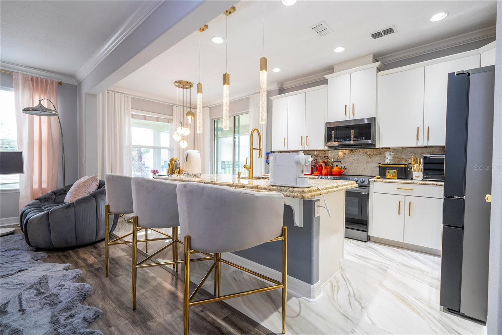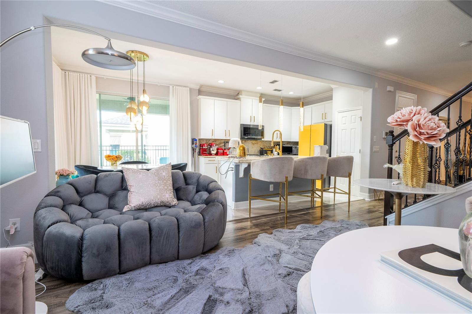 Descubra a sua casa ideal nesta bela residência de 3 quartos e 2,5 banheiros, com um escritório dedicado e um escritório no andar de cima. Desfrute de vistas serenas do lago a partir do seu espaçoso pátio, completo com uma cozinha ao ar livre, perfeita para entretenimento no maravilhoso clima da Flórida. Esta elegante casa possui lustres deslumbrantes, uma cozinha de conceito aberto com bancadas de granito e elegantes acessórios de latão. Situada num fantástico condomínio fechado com comodidades adequadas para famílias, esta propriedade está centralmente localizada perto das principais rodovias para fácil acesso. Não perca a oportunidade de tornar esta linda casa sua!
