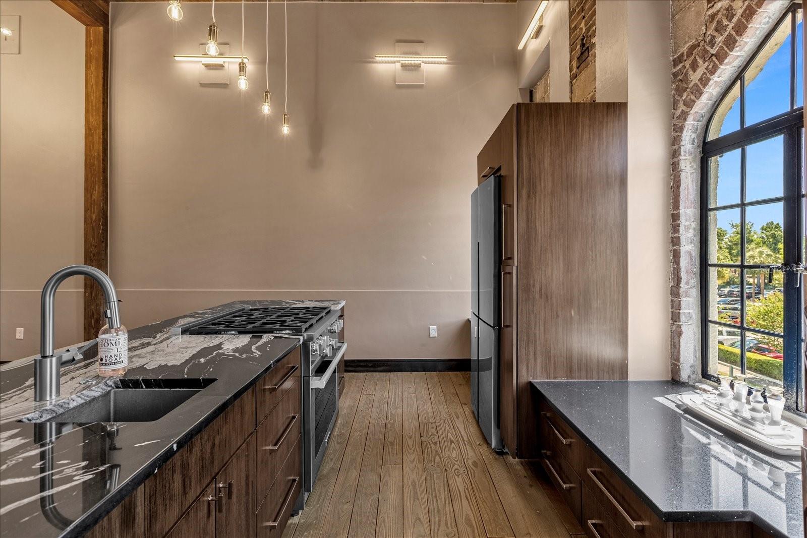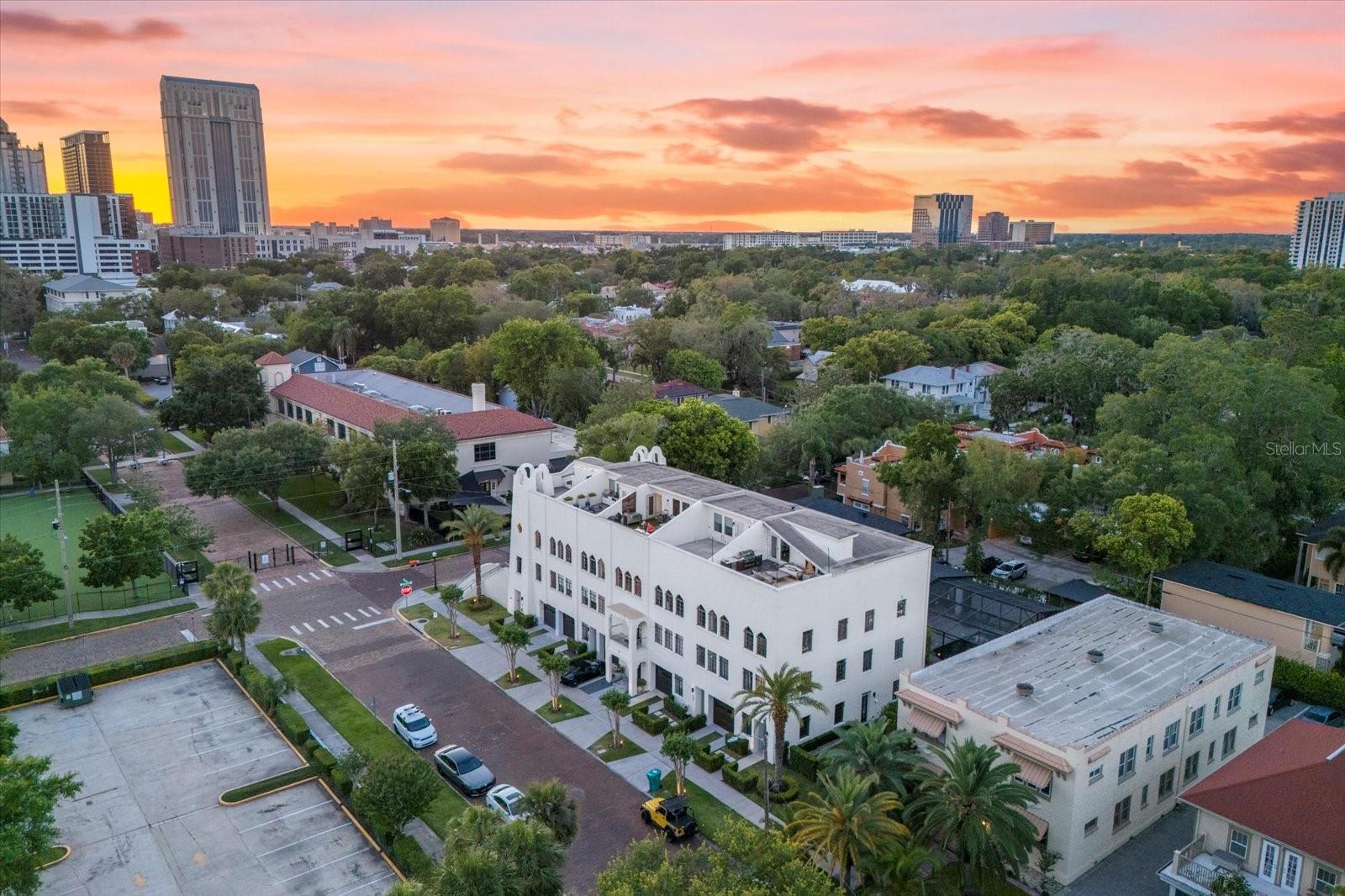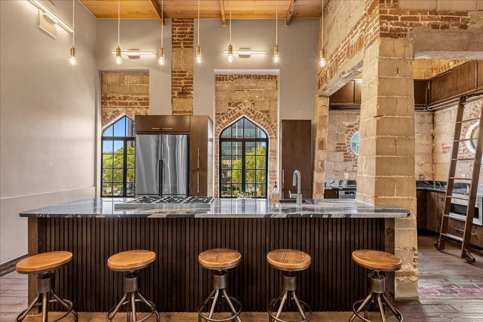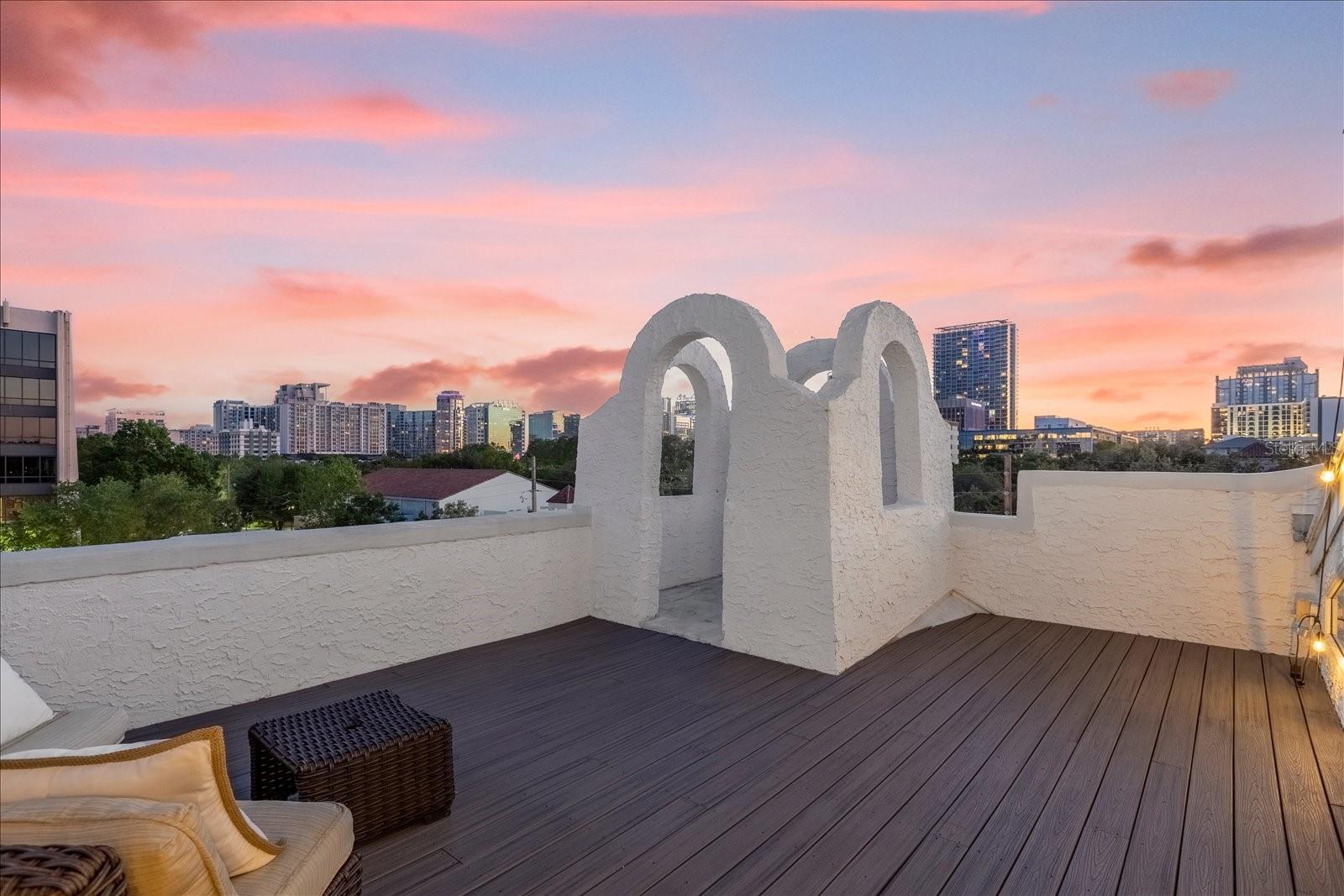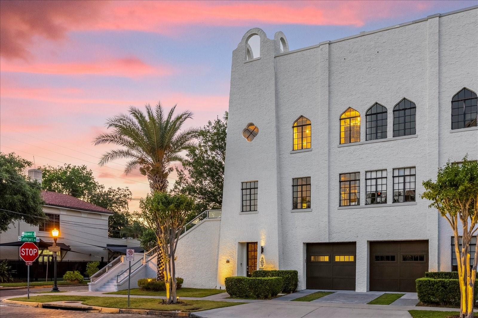 O que era originalmente uma igreja em estilo missionário em 1928, este edifício foi reinventado em 5 unidades residenciais como nenhuma outra. Esta unidade final o condomínio tem três andares e possui uma planta única com características distintas. São os detalhes intrincados que tornam esta casa especial. Acabamentos de design preenchem a residência, com janelas originais, luminárias artísticas, um toque de vida moderna e vistas deslumbrantes do centro de Orlando. Do encanto histórico aos toques industriais, esta propriedade é perfeita para quem procura uma casa distinta com elegância e carácter inegáveis. Esta espaçosa moradia possui 3 quartos e 3,5 casas de banho. Ao chegar ao primeiro andar, você encontrará um charmoso mudroom com azulejos originais e porta de entrada separada à esquerda. Além disso, o primeiro andar dispõe de um quarto versátil que pode servir como escritório ou quarto de hóspedes, completo com casa de banho privativa e porta de entrada privativa. Subindo para o segundo andar, você descobrirá mais dois quartos, cada um com seu banheiro privativo. O quarto principal neste andar impressiona com um banheiro de tamanho generoso, amplo balcão e um closet equipado com estantes embutidas para armazenamento e organização convenientes. O terceiro andar é dedicado ao coração da casa, apresentando uma cozinha bem equipada com uma ilha substancial, perfeita para receber reuniões, e toques modernos e elegantes por toda parte. A planta funcional conecta perfeitamente a cozinha, a sala de jantar e a sala de estar, com um lavabo conveniente para entretenimento. Suba as escadas até o loft, oferecendo uma vista da sala de estar e levando a um bar antes de sair para o deck da cobertura, que oferece vistas deslumbrantes do horizonte do centro de Orlando. Deste ponto de vista, você pode desfrutar de vistas espetaculares dos fogos de artifício do Lago Eola no dia 4 de julho e de outros eventos festivos realizados durante todo o ano. Esta ampla moradia também oferece a comodidade adicional de um elevador que atende cada andar, garantindo fácil acesso a toda a propriedade. Do exterior, uma pitoresca escadaria que sobe até às portas originais da igreja no segundo piso, acrescentando ao encanto único da casa. A propriedade oferece ainda espaço de arrumação adicional para maior comodidade, garagem empilhável para dois carros e inclui um espaço de escritura específico da unidade, podendo ser transformado em zona exterior vedada. Esta casa fica a poucos minutos de todos os restaurantes, cafés e entretenimento que o centro de Orlando, o Mills District e o Thornton Park têm a oferecer. Não perca a oportunidade de possuir uma das propriedades mais exclusivas de Orlando!