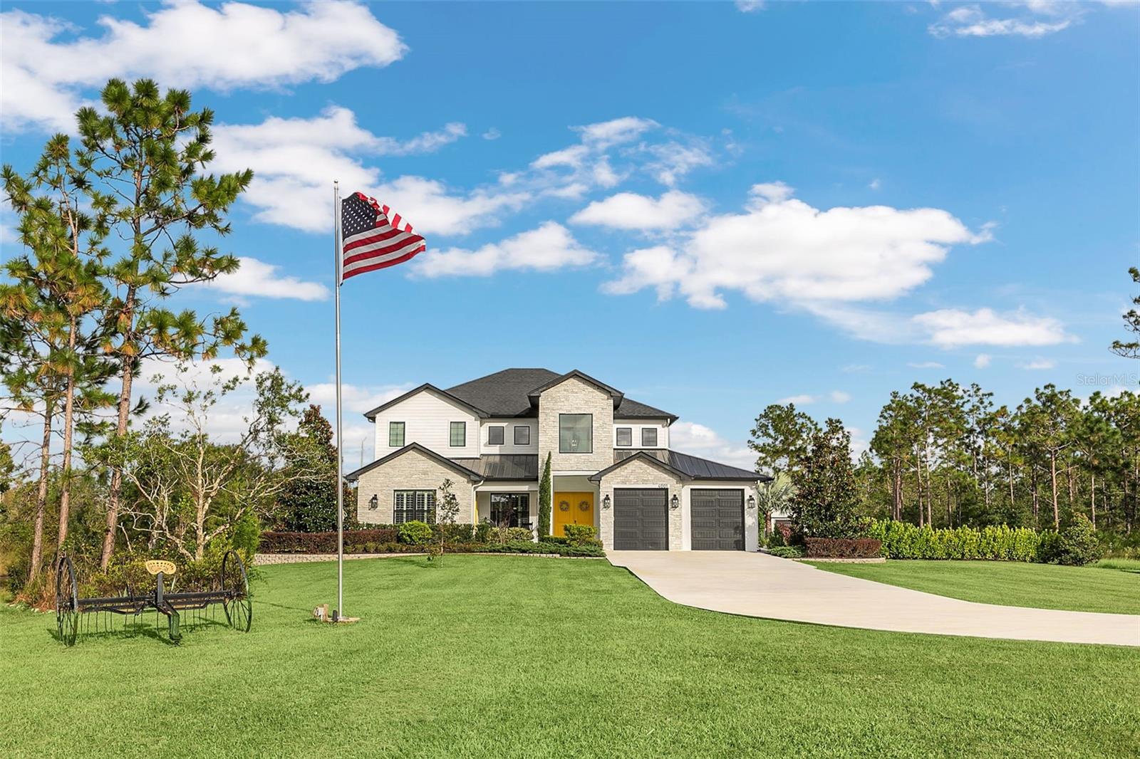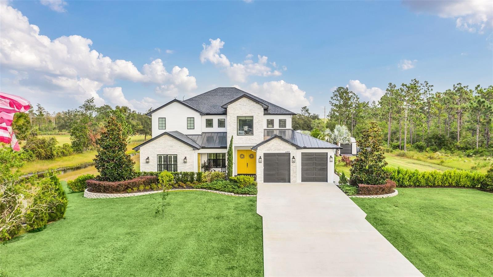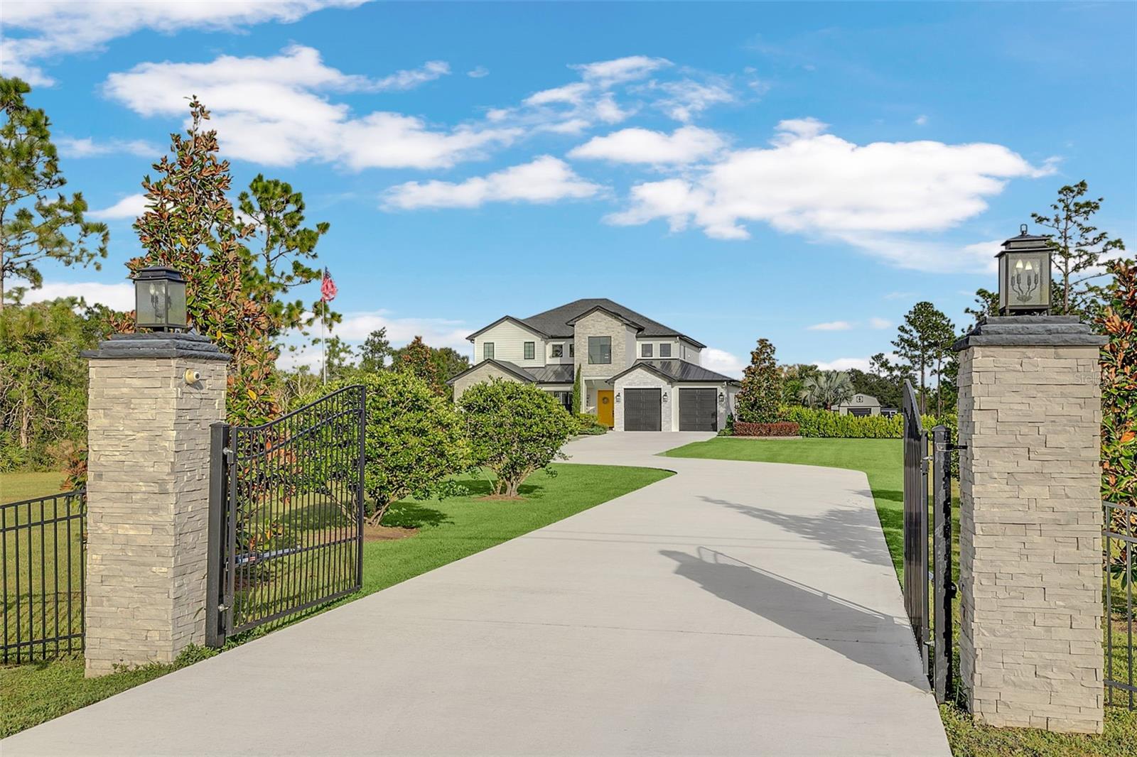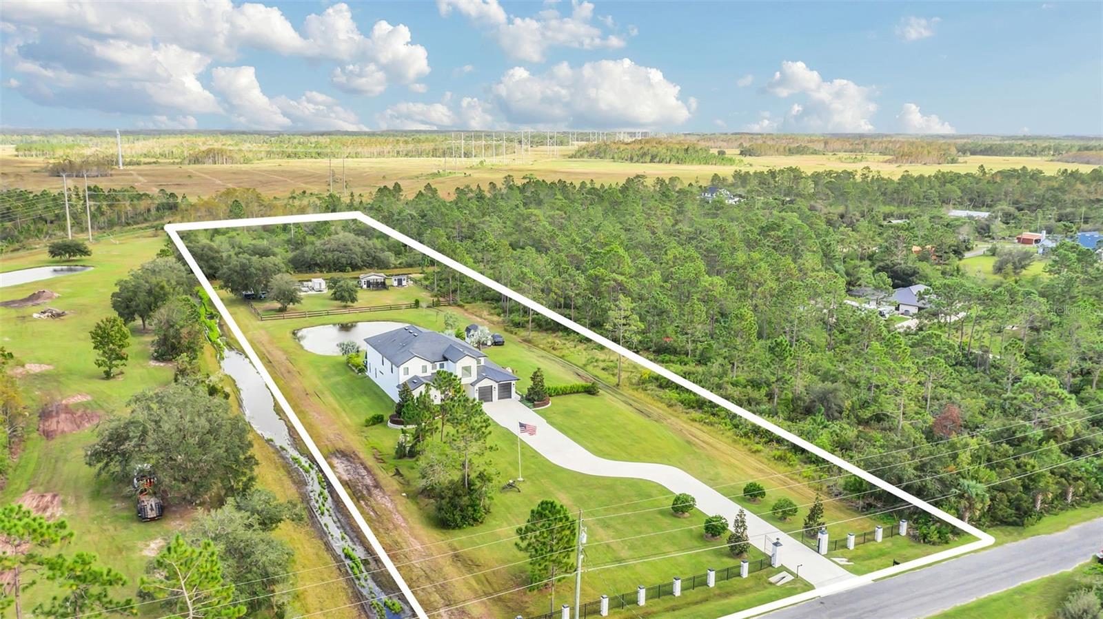 ***Crédito de credor de até $ 38.000 para cobrir os custos de fechamento do comprador se usar nosso credor preferencial!*** Esta requintada casa de fazenda moderna de 6 quartos e 4,5 banheiros fica em quase 2,5 acres de terra alta e seca com seu próprio lago! A propriedade é fechada com uma entrada estendida e possui amplas varandas frontais e traseiras, perfeitas para ver o nascer e o pôr do sol. Telas automáticas em ambas as varandas garantem conforto o ano todo. Ao entrar, você é recebido por belas portas duplas que levam a um espaço luxuoso e aberto, bem equipado para entretenimento. O andar de baixo possui uma área de estar frontal, sala de estar formal, suíte MIL ou home office com banheiro privativo, sala de jantar formal, sala de estar generosa, cozinha dos sonhos do chef com despensa, área de serviço, mudroom, lavabo e uma suíte primária digna de retiro. A suíte principal possui tetos retangulares, persianas automáticas personalizadas, paredes à prova de som e entrada privativa para a varanda. O banheiro tipo spa com vários chuveiros (incluindo chuveiro de efeito chuva) e armários customizados, equipados com central de segurança e vaporizador de roupas, agregam luxo ao espaço. A cozinha do chef possui muito espaço no balcão, armários, uma grande pia de fazenda, enchedora de panelas, adega refrigerada, despensa de mordomo com pia de vegetais e uma geladeira grande adicional. Lembrando-nos que a cozinha é o coração da casa, os assentos em estilo café criam uma atmosfera convidativa para refeições casuais ou jogos de tabuleiro. A área de serviço foi cuidadosamente projetada com pia, armários e lavabo para manter sapatos e mochilas fora da vista. Enormes portas de vidro deslizantes de 4 painéis ficam completamente atrás da parede da sala de estar, trazendo o ar livre para dentro e duplicando o espaço de entretenimento. Uma sala segura maximiza sua segurança e está disponível para visualização durante sua exibição privada. No andar de cima, uma área de estar privativa no loft, centro de jogos ou área de bilhar, home theater, home office ou academia, quatro quartos de tamanho generoso com closets (armários embutidos duplos no quarto 5), duas áreas de estudo com mesas embutidas e dois banheiros completos, e uma lavanderia adicional oferecem amplo espaço para viver e se divertir. Cinema impressionante com assentos escalonados, alto-falantes embutidos e iluminação que elevam as noites de cinema a um nível totalmente novo. A varanda tem vista para a piscina de água salgada, spa e lago privativo e possui telas automáticas na porta deslizante e na parte de trás da varanda. As comodidades adicionais incluem uma cozinha externa com churrasqueira, geladeira, máquina de fazer gelo e pia. Um curral equipado com eletricidade e água fica atrás de uma cerca separada. Pode ser facilmente convertido em um celeiro para cavalos com afluência e pasto. Estruturas adicionais incluem um galpão de armazenamento com eletricidade e um galpão menor para equipamentos de gramado. Com muito espaço para mais arrumação, estacionamento e até uma casa de hóspedes separada, esta propriedade oferece uma combinação perfeita de luxo e funcionalidade. Perfeitamente situada entre o Aeroporto Internacional de Orlando e Porto Canaveral, esta comunidade de golfe e hipismo oferece parques, trilhas, um campo de golfe de 18 buracos, calçadas e uma escola com classificação A! Não perca a oportunidade de fazer desta joia o seu novo lar doce lar!