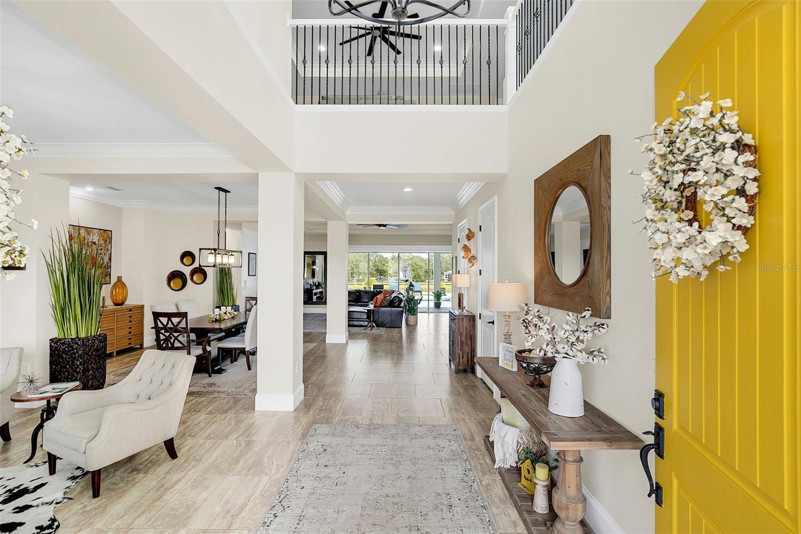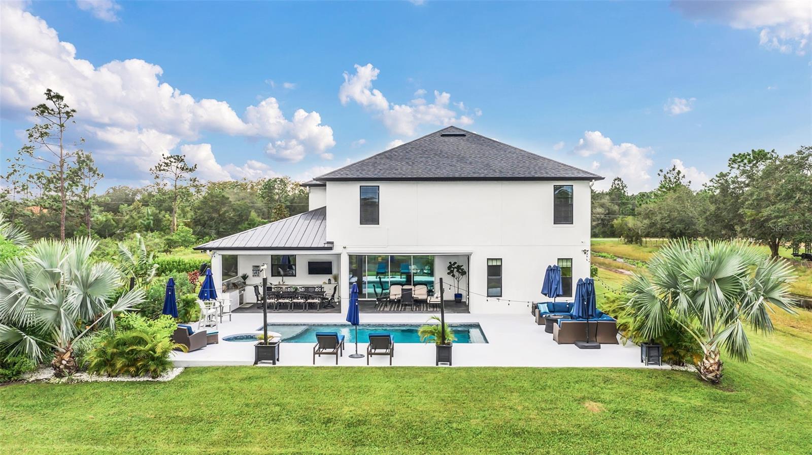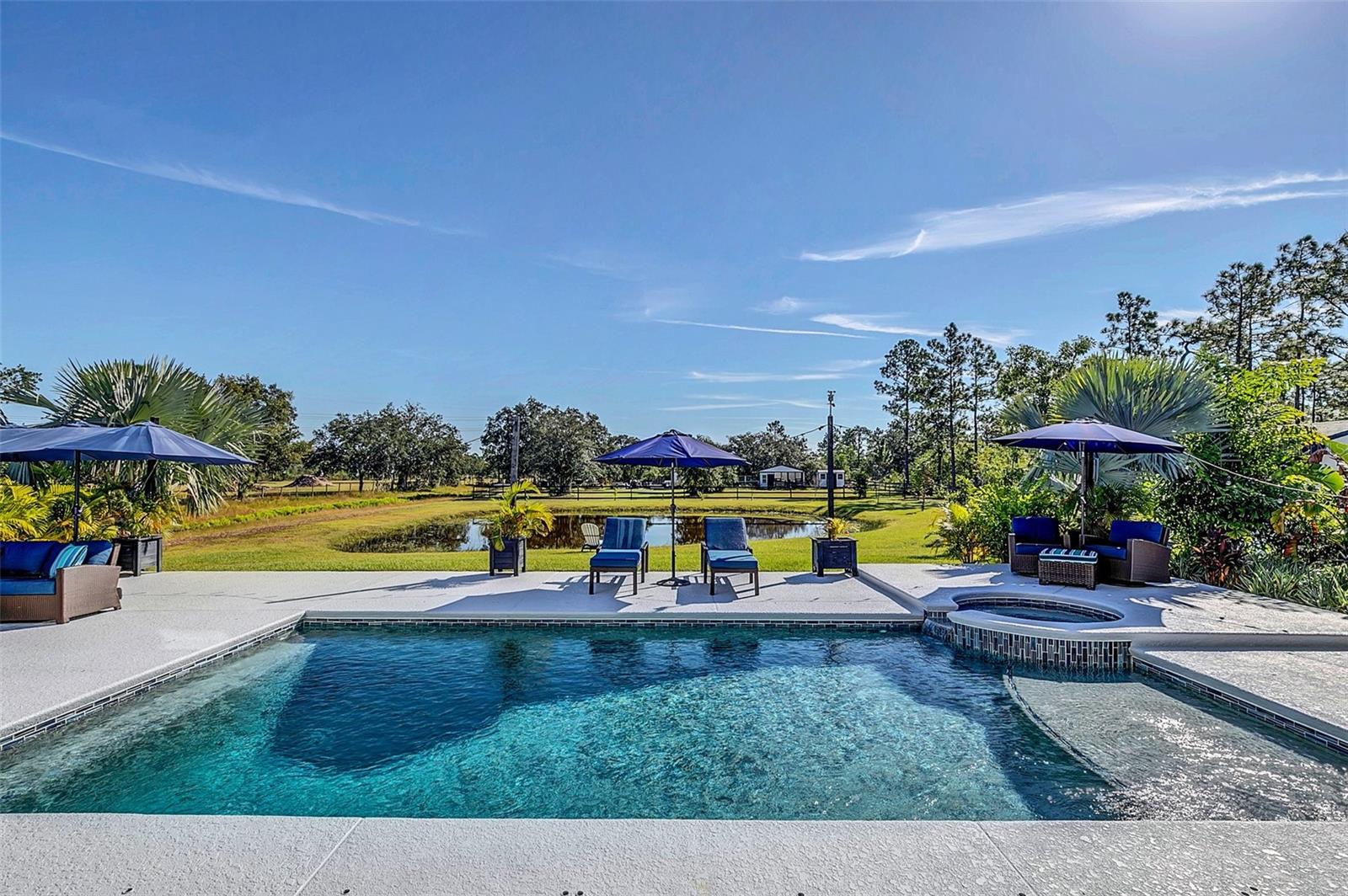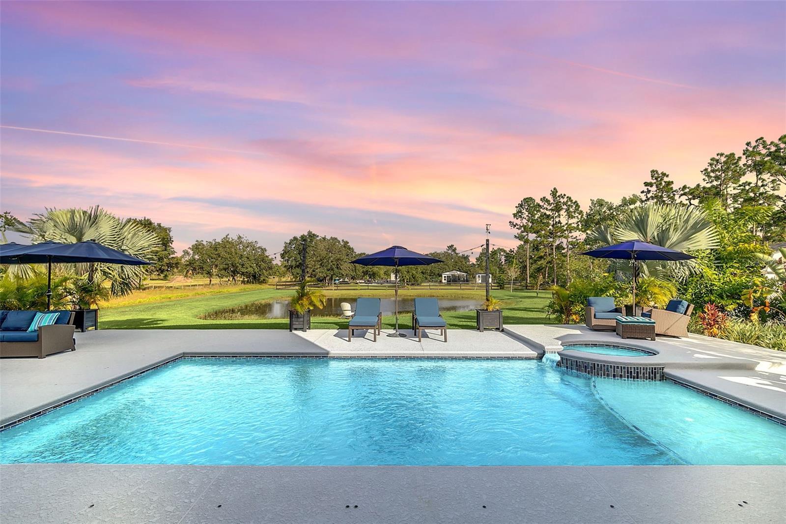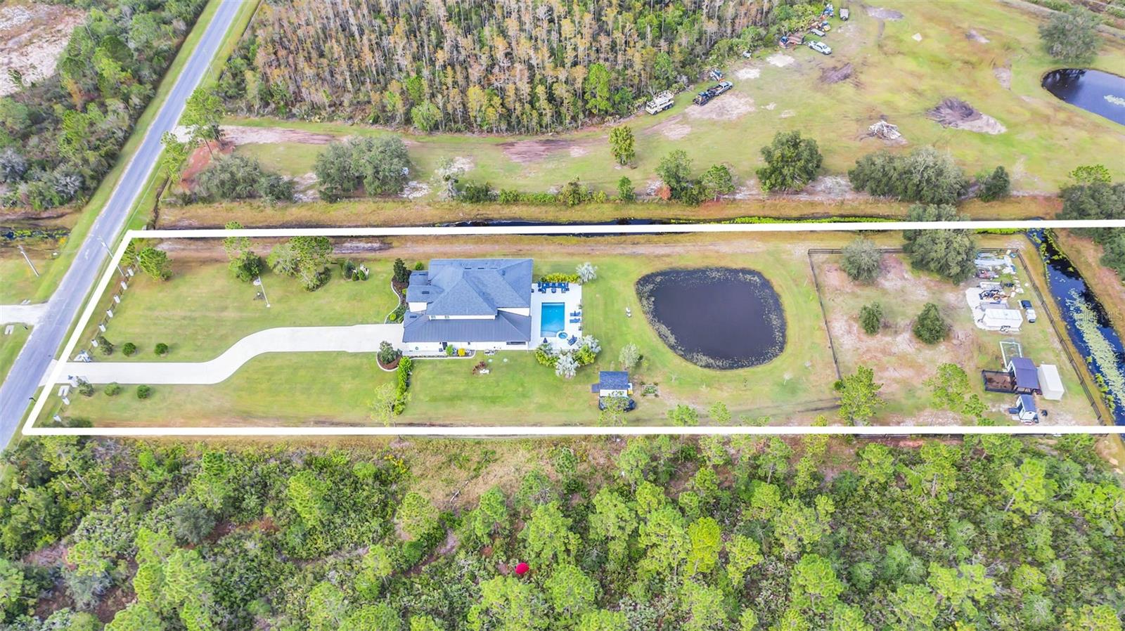 ***Crédito de credor de até $ 38.000 para cobrir os custos de fechamento do comprador se usar nosso credor preferencial!*** Esta requintada casa de fazenda moderna de 6 quartos e 4,5 banheiros fica em quase 2,5 acres de terra alta e seca com seu próprio lago! A propriedade é fechada com uma entrada estendida e possui amplas varandas frontais e traseiras, perfeitas para ver o nascer e o pôr do sol. Telas automáticas em ambas as varandas garantem conforto o ano todo. Ao entrar, você é recebido por belas portas duplas que levam a um espaço luxuoso e aberto, bem equipado para entretenimento. O andar de baixo possui uma área de estar frontal, sala de estar formal, suíte MIL ou home office com banheiro privativo, sala de jantar formal, sala de estar generosa, cozinha dos sonhos do chef com despensa, área de serviço, mudroom, lavabo e uma suíte primária digna de retiro. A suíte principal possui tetos retangulares, persianas automáticas personalizadas, paredes à prova de som e entrada privativa para a varanda. O banheiro tipo spa com vários chuveiros (incluindo chuveiro de efeito chuva) e armários customizados, equipados com central de segurança e vaporizador de roupas, agregam luxo ao espaço. A cozinha do chef possui muito espaço no balcão, armários, uma grande pia de fazenda, enchedora de panelas, adega refrigerada, despensa de mordomo com pia de vegetais e uma geladeira grande adicional. Lembrando-nos que a cozinha é o coração da casa, os assentos em estilo café criam uma atmosfera convidativa para refeições casuais ou jogos de tabuleiro. A área de serviço foi cuidadosamente projetada com pia, armários e lavabo para manter sapatos e mochilas fora da vista. Enormes portas de vidro deslizantes de 4 painéis ficam completamente atrás da parede da sala de estar, trazendo o ar livre para dentro e duplicando o espaço de entretenimento. Uma sala segura maximiza sua segurança e está disponível para visualização durante sua exibição privada. No andar de cima, uma área de estar privativa no loft, centro de jogos ou área de bilhar, home theater, home office ou academia, quatro quartos de tamanho generoso com closets (armários embutidos duplos no quarto 5), duas áreas de estudo com mesas embutidas e dois banheiros completos, e uma lavanderia adicional oferecem amplo espaço para viver e se divertir. Cinema impressionante com assentos escalonados, alto-falantes embutidos e iluminação que elevam as noites de cinema a um nível totalmente novo. A varanda tem vista para a piscina de água salgada, spa e lago privativo e possui telas automáticas na porta deslizante e na parte de trás da varanda. As comodidades adicionais incluem uma cozinha externa com churrasqueira, geladeira, máquina de fazer gelo e pia. Um curral equipado com eletricidade e água fica atrás de uma cerca separada. Pode ser facilmente convertido em um celeiro para cavalos com afluência e pasto. Estruturas adicionais incluem um galpão de armazenamento com eletricidade e um galpão menor para equipamentos de gramado. Com muito espaço para mais arrumação, estacionamento e até uma casa de hóspedes separada, esta propriedade oferece uma combinação perfeita de luxo e funcionalidade. Perfeitamente situada entre o Aeroporto Internacional de Orlando e Porto Canaveral, esta comunidade de golfe e hipismo oferece parques, trilhas, um campo de golfe de 18 buracos, calçadas e uma escola com classificação A! Não perca a oportunidade de fazer desta joia o seu novo lar doce lar!